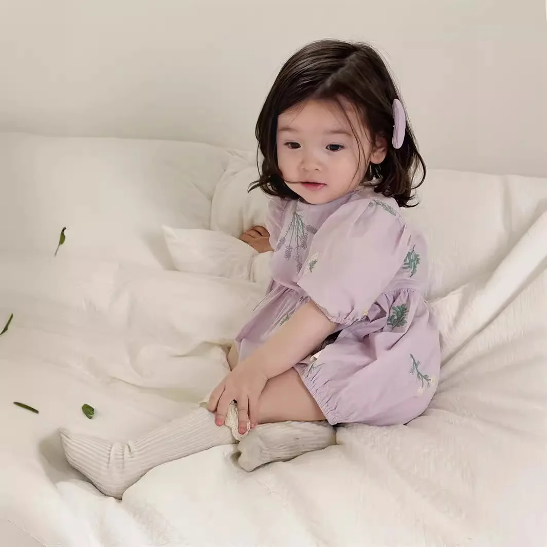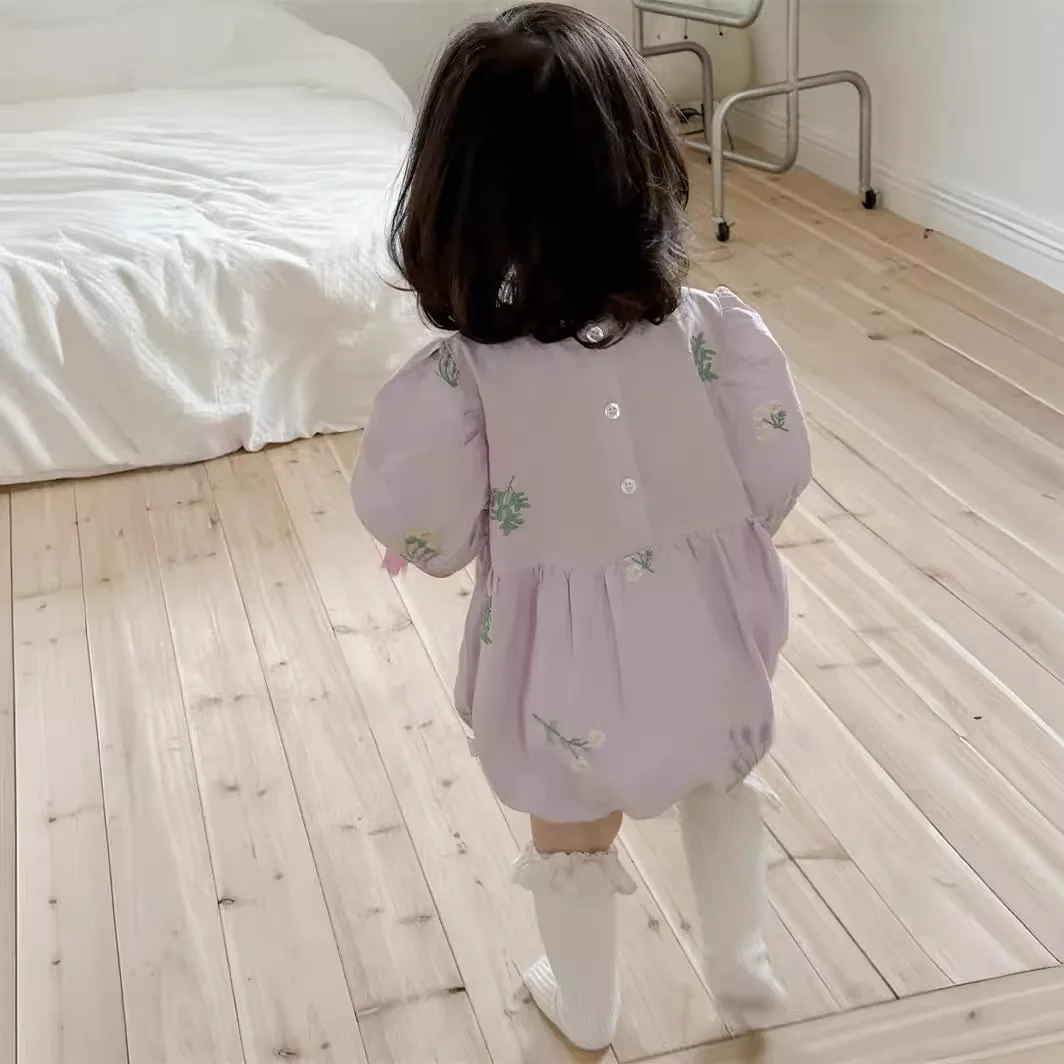 ベビーロンパースはおしゃれでかわいいデザイン。韓国スタイルのジャンプスーツで、赤ちゃんの一枚着に最適。フラワー刺繍の花柄がアクセントになり、ボディスーツとして日常着としても使えます。赤ちゃんの成長期にも活躍する優れた商品です。
