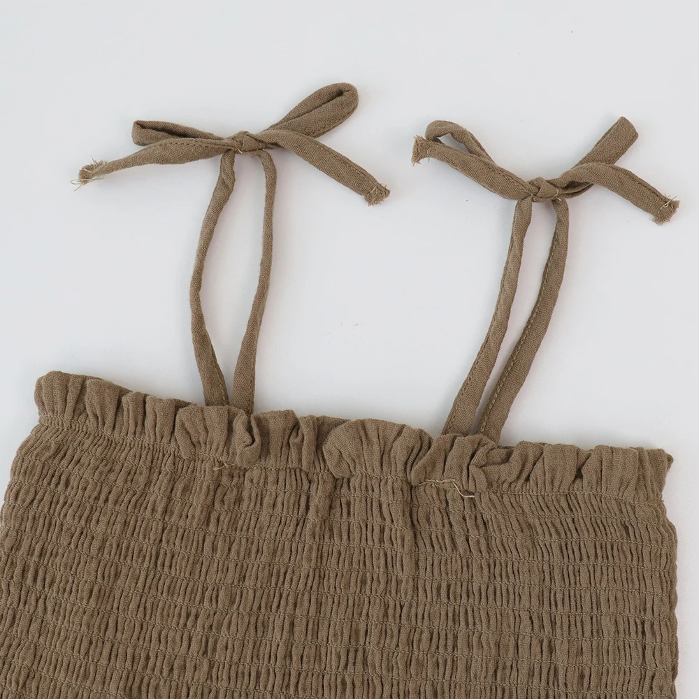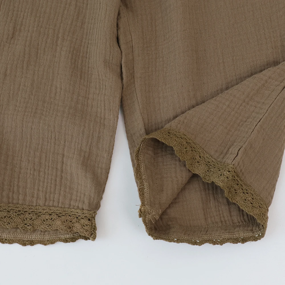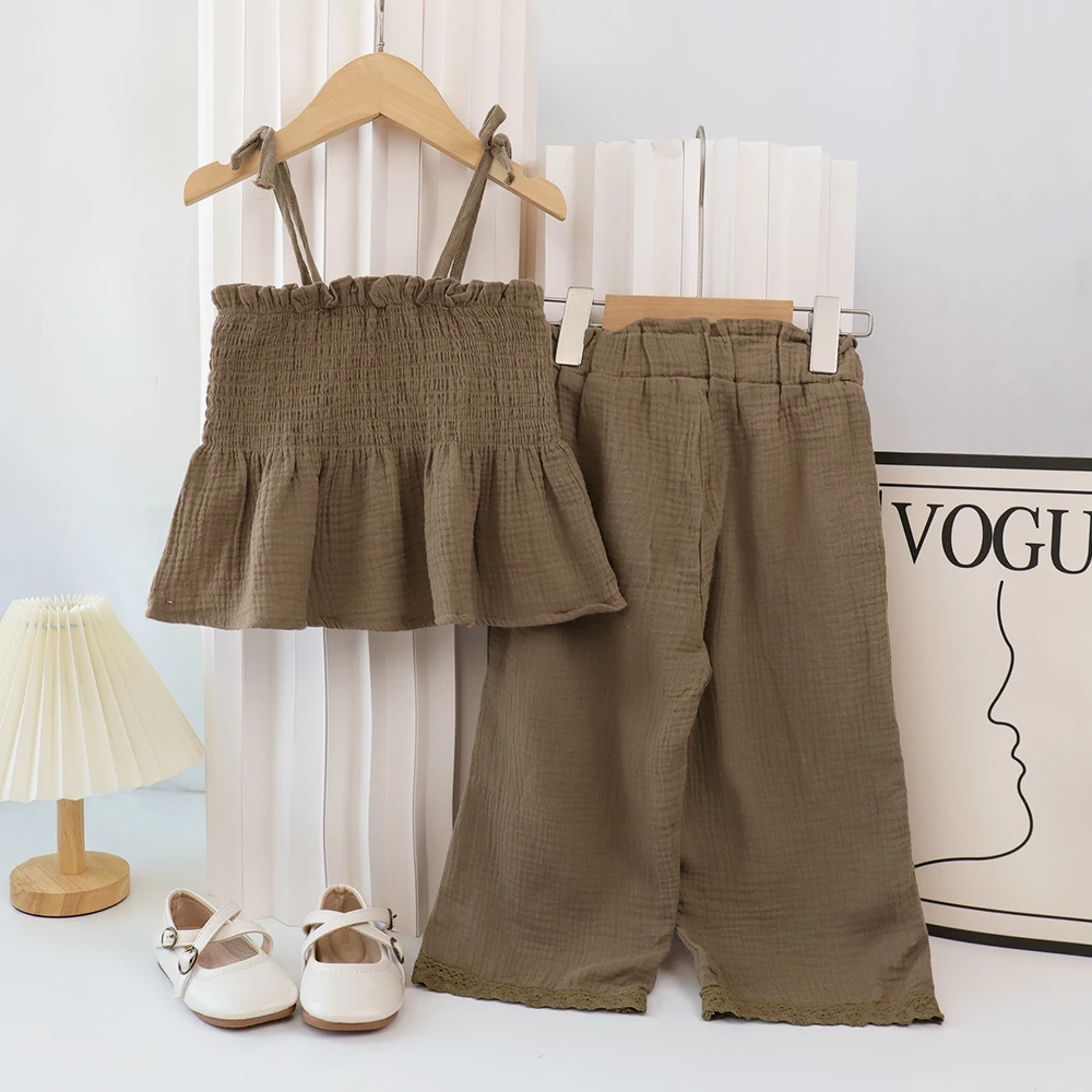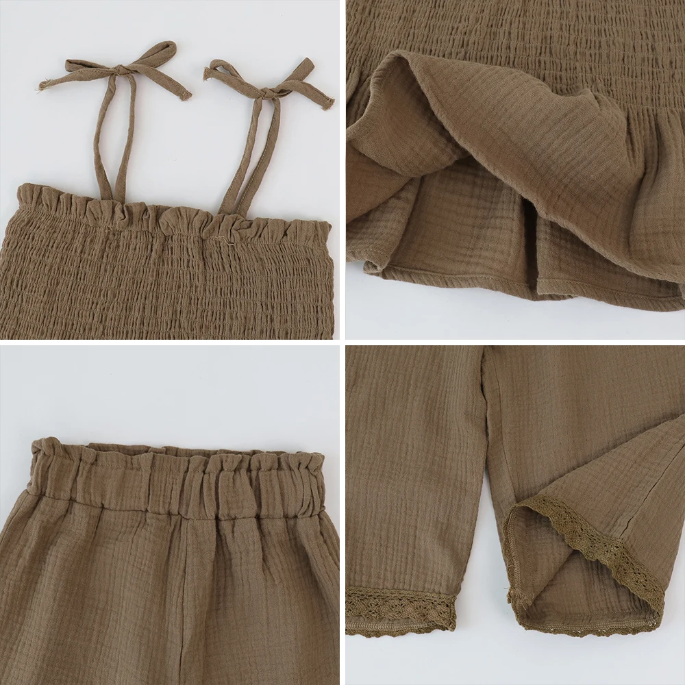 お子様にぴったりなオーガニックコットン製キャミソールトップスとレースのワイドルーズパンツのセットです。夏にぴったりの着心地で、お子様の自由な動きをサポートします。可愛くて快適なアウトフィットセットで、お子様の毎日を楽しく過ごせます。