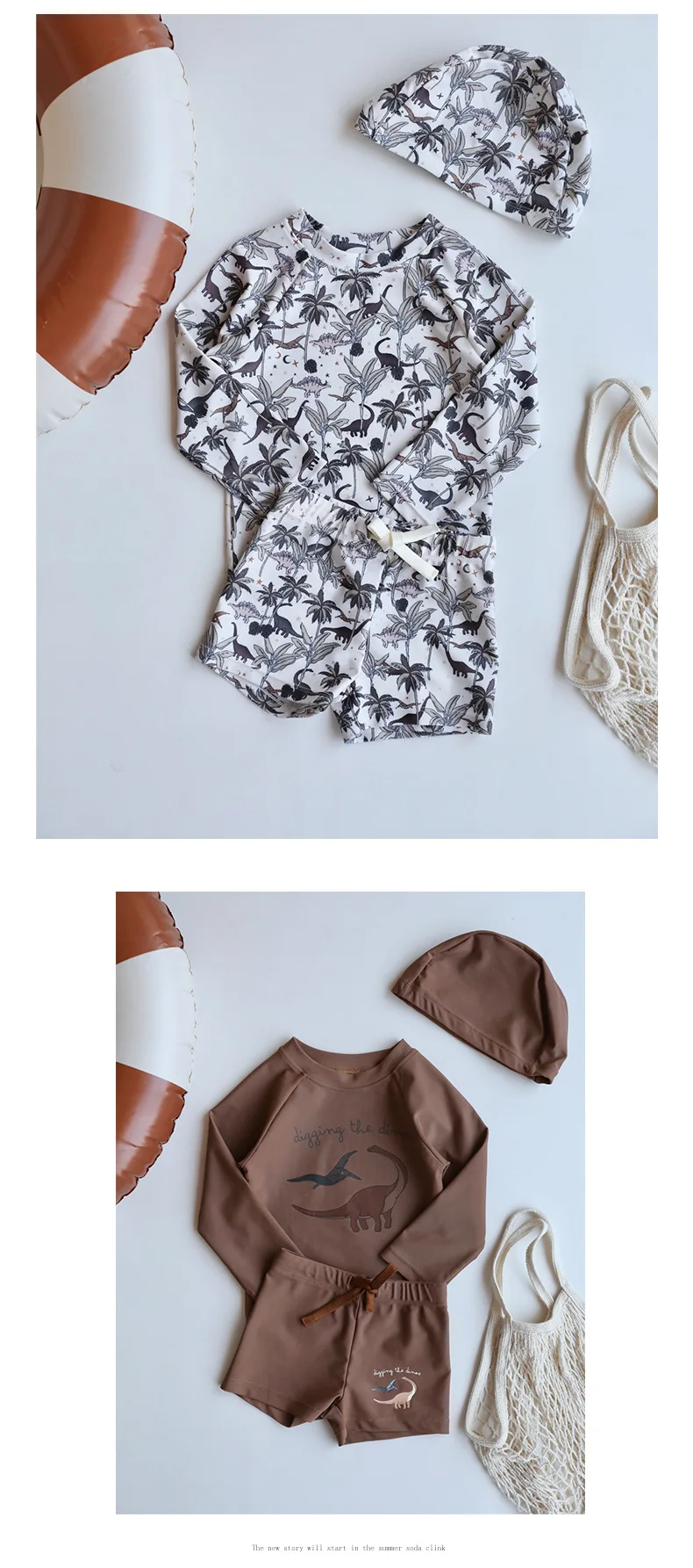 キッズ水着 スイムウェア ボーイズ 長袖トップス+ショートパンツ ラッシュガード【mh0005927】