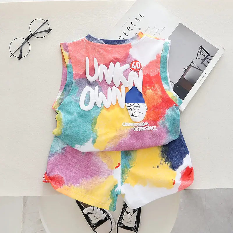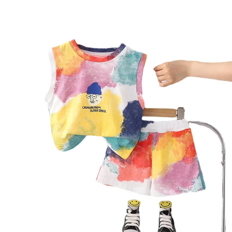 キッズセットアップ 2点セット タンクトップ+ショートパンツ カラフルタイダイ【mh0005948】