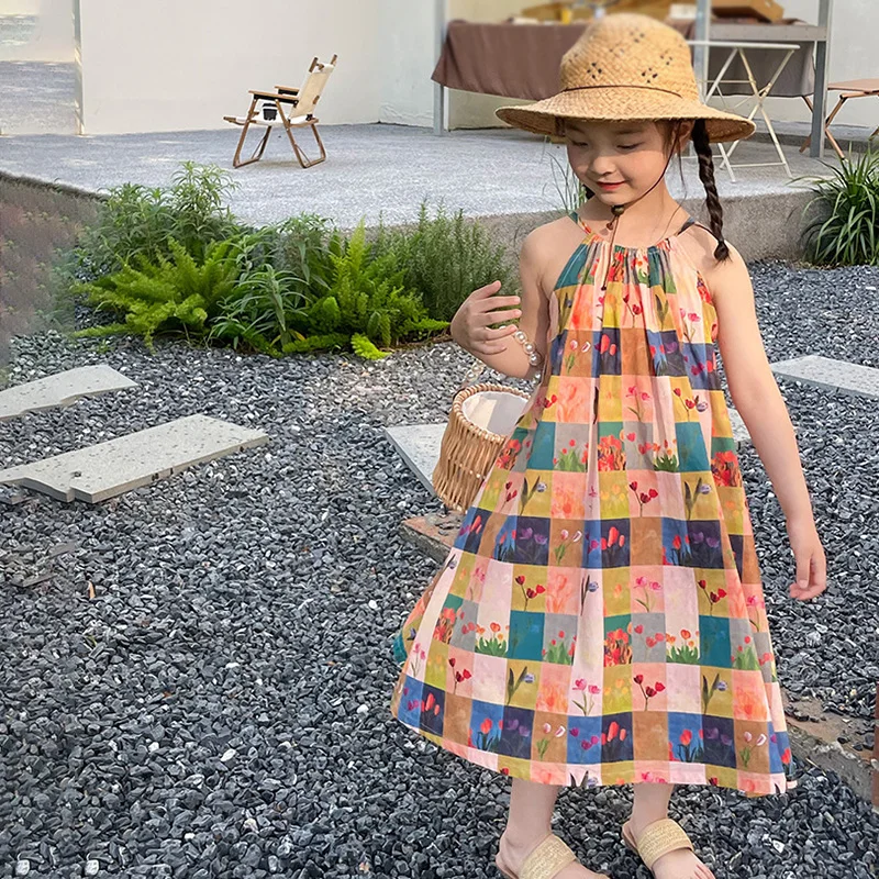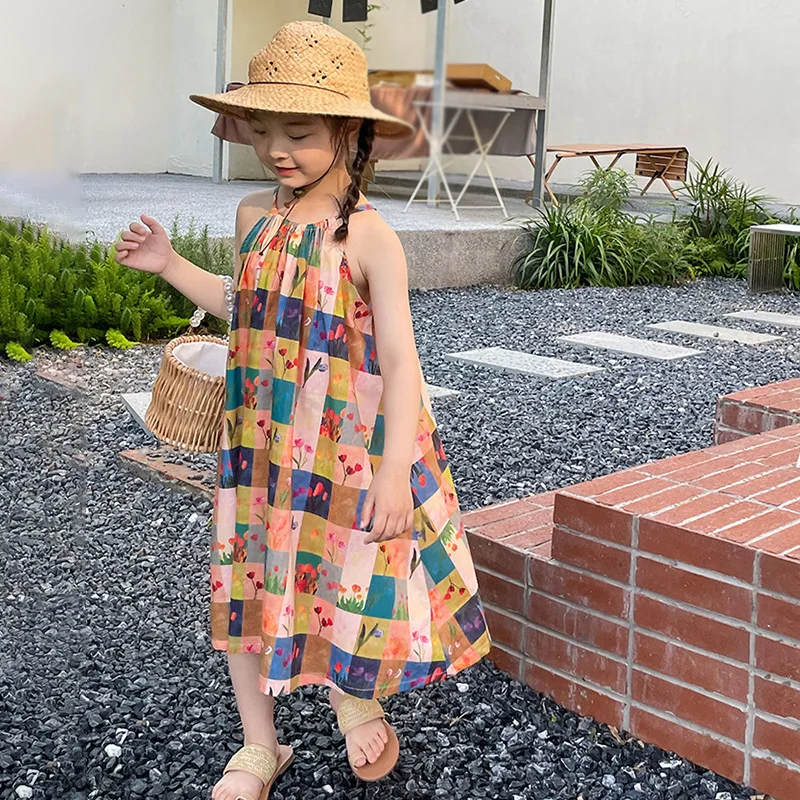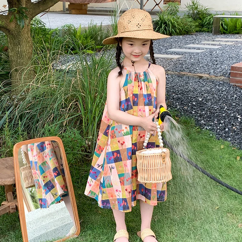 キッズワンピース カラフルチェック キャミソール ルーズワンピース【mh0005963】