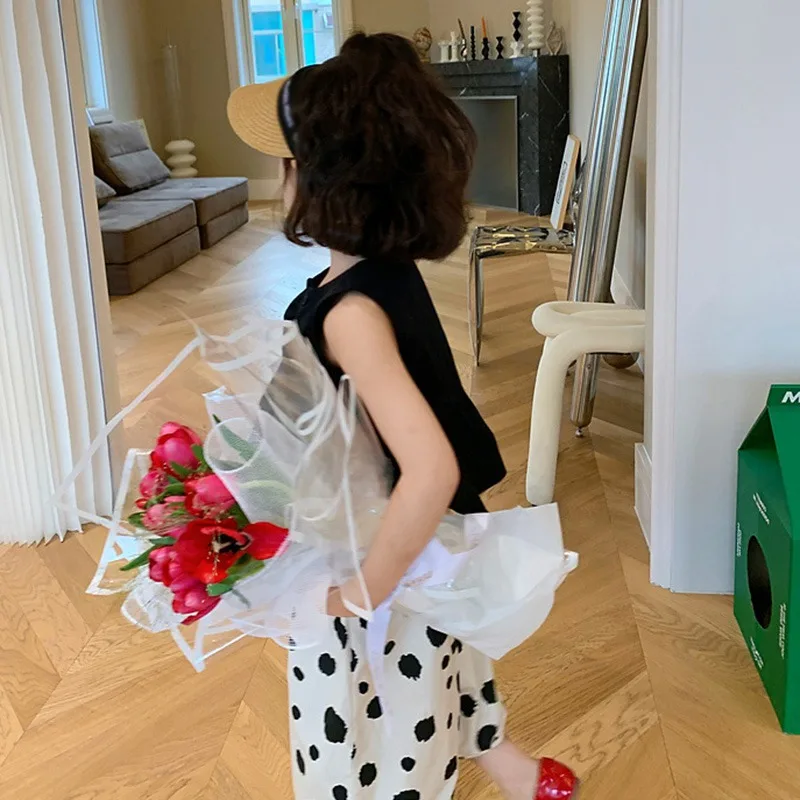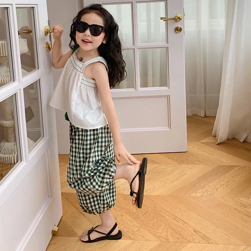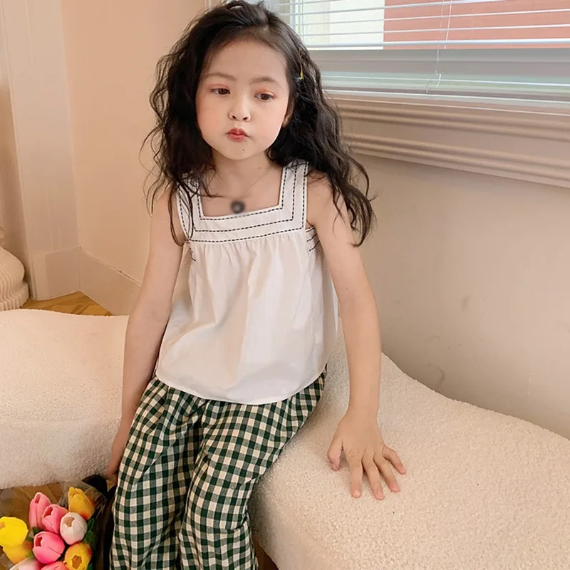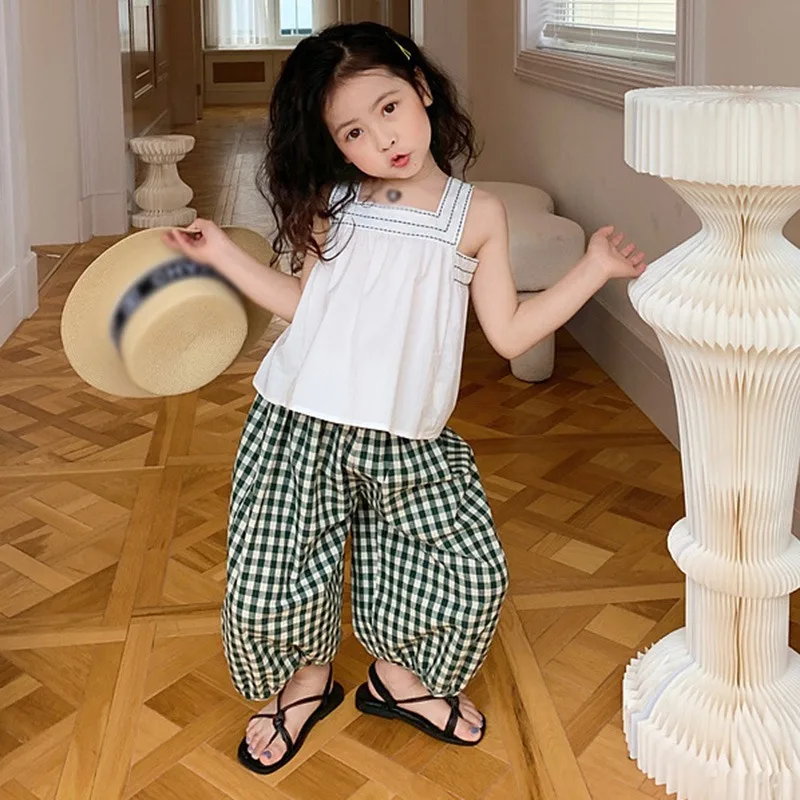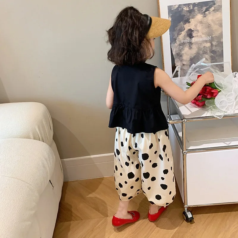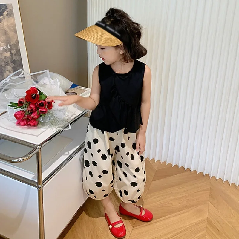 キッズセットアップ 2点セット ノースリーブブラウス+クロップドパンツ チェック/水玉ドット【mh0006134】