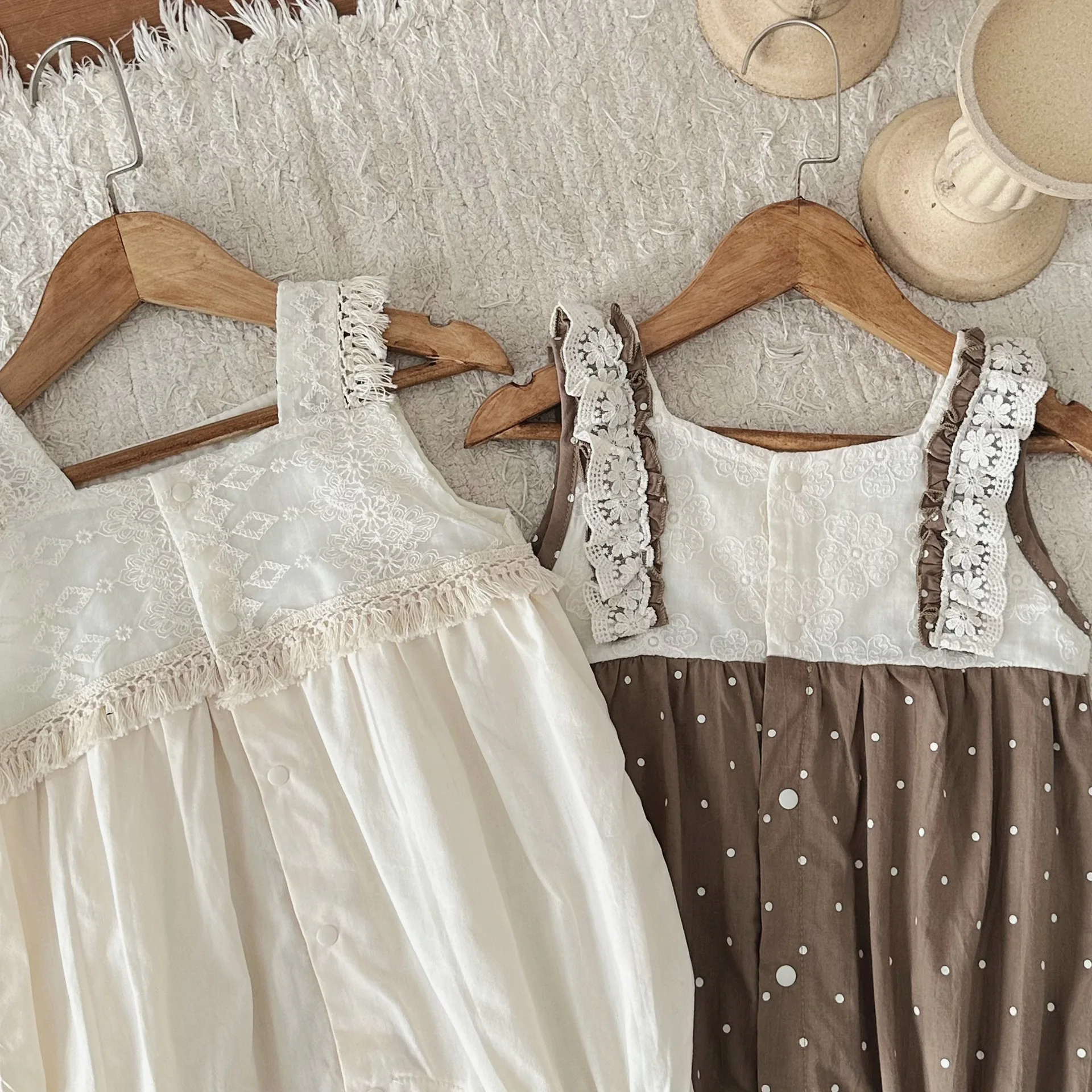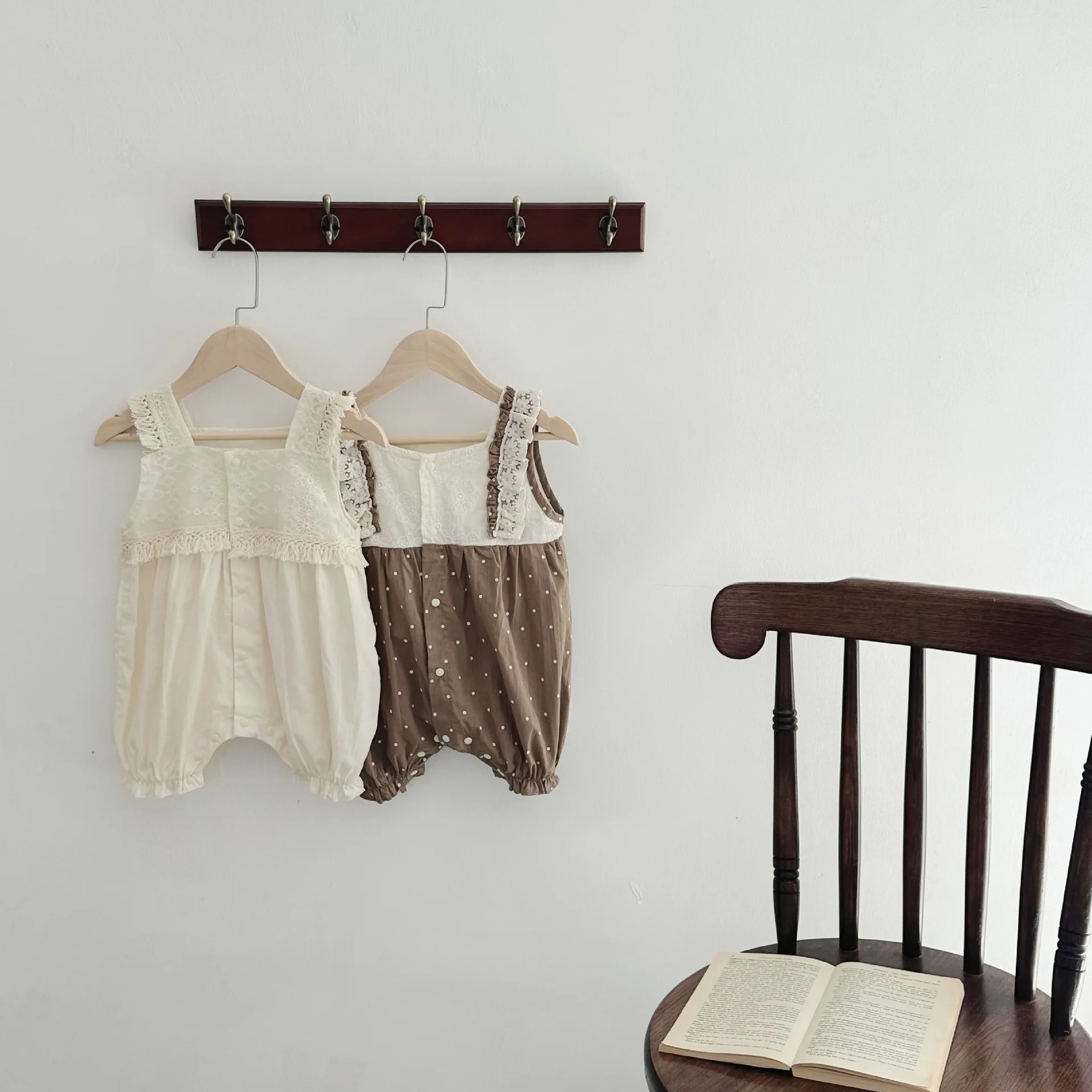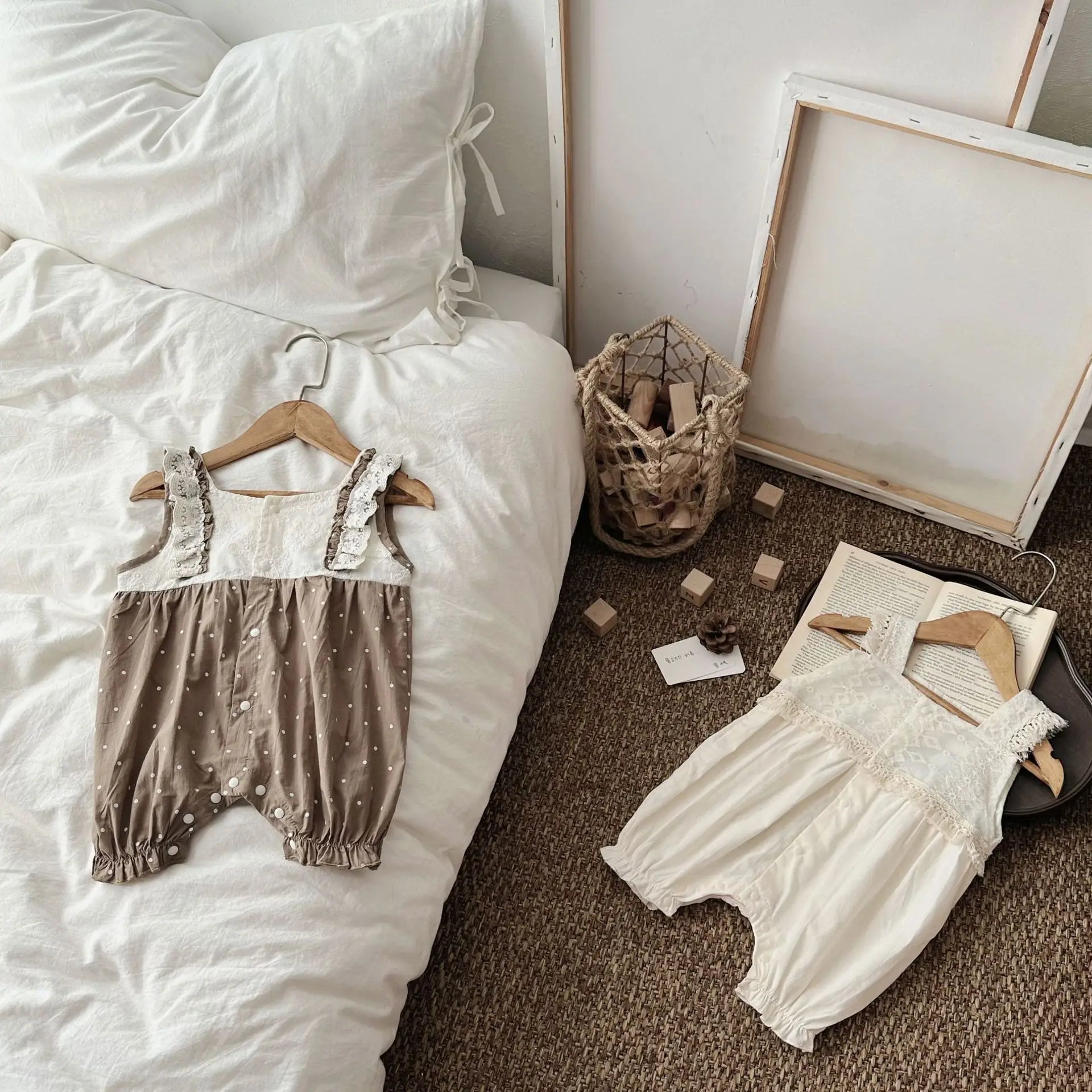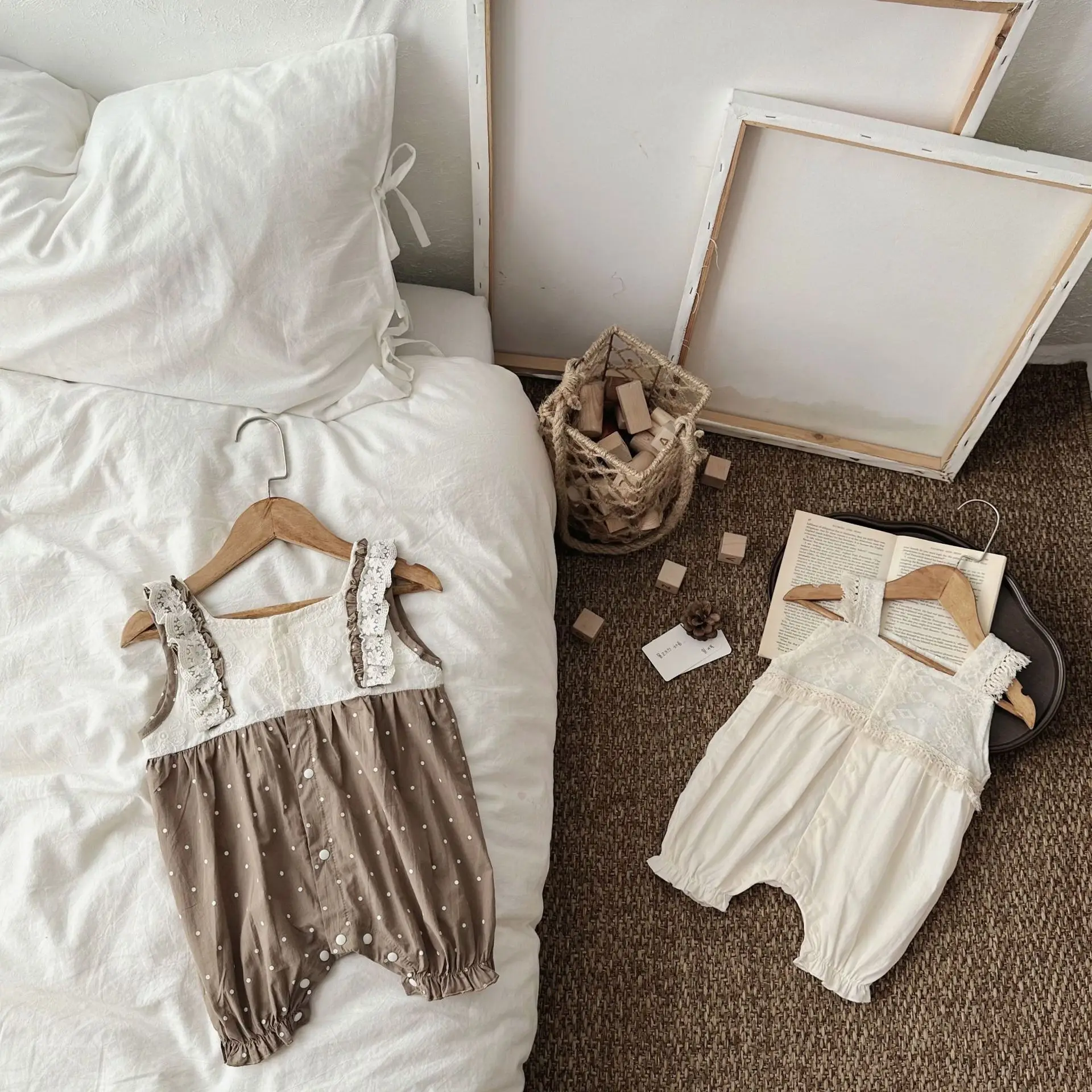 ベビージャンプスーツ レース フリル サスペンダーロンパース 2カラー【mh0006314】