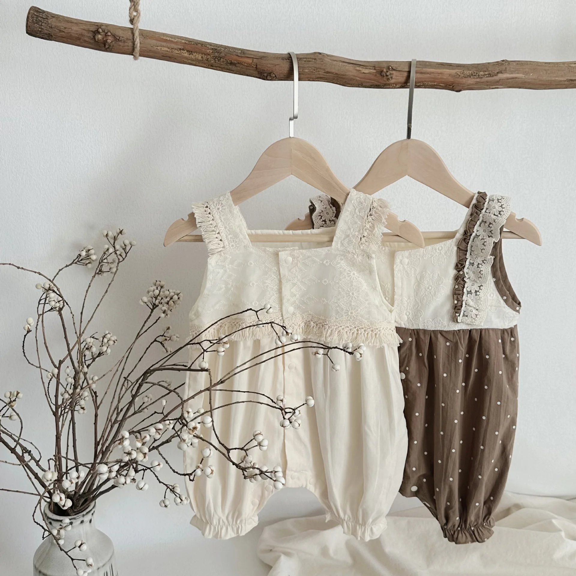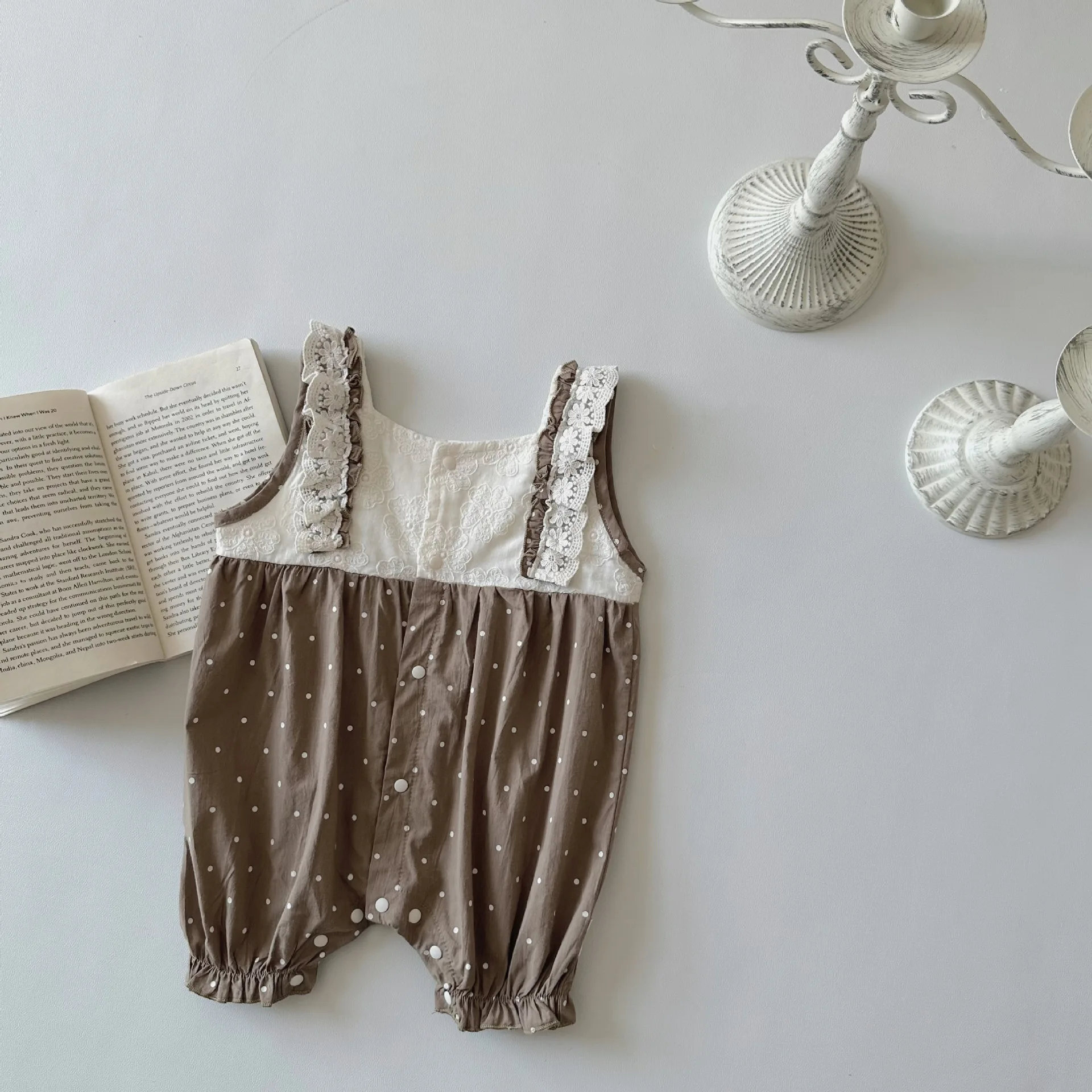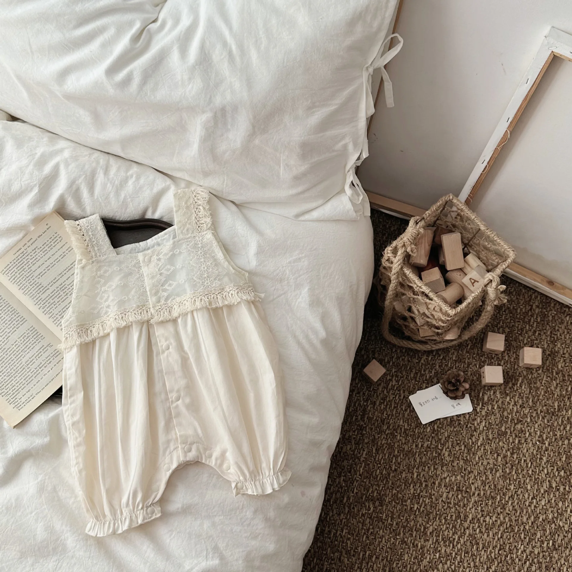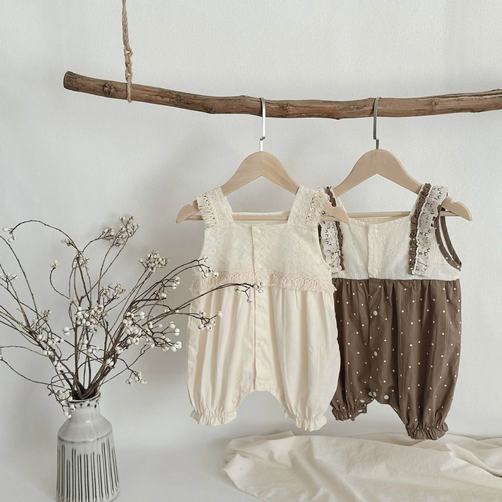ベビージャンプスーツ レース フリル サスペンダーロンパース 2カラー【mh0006314】