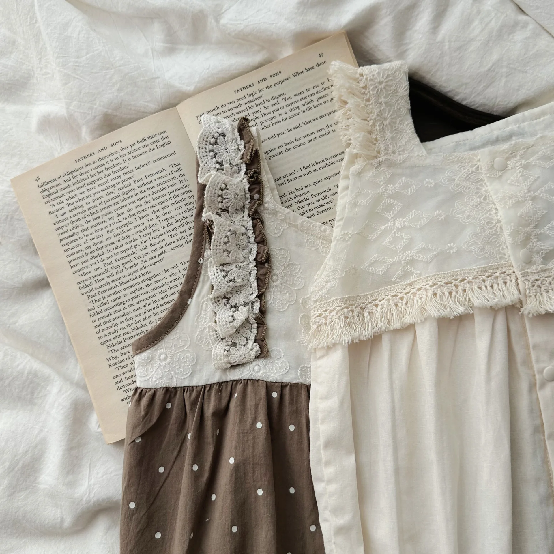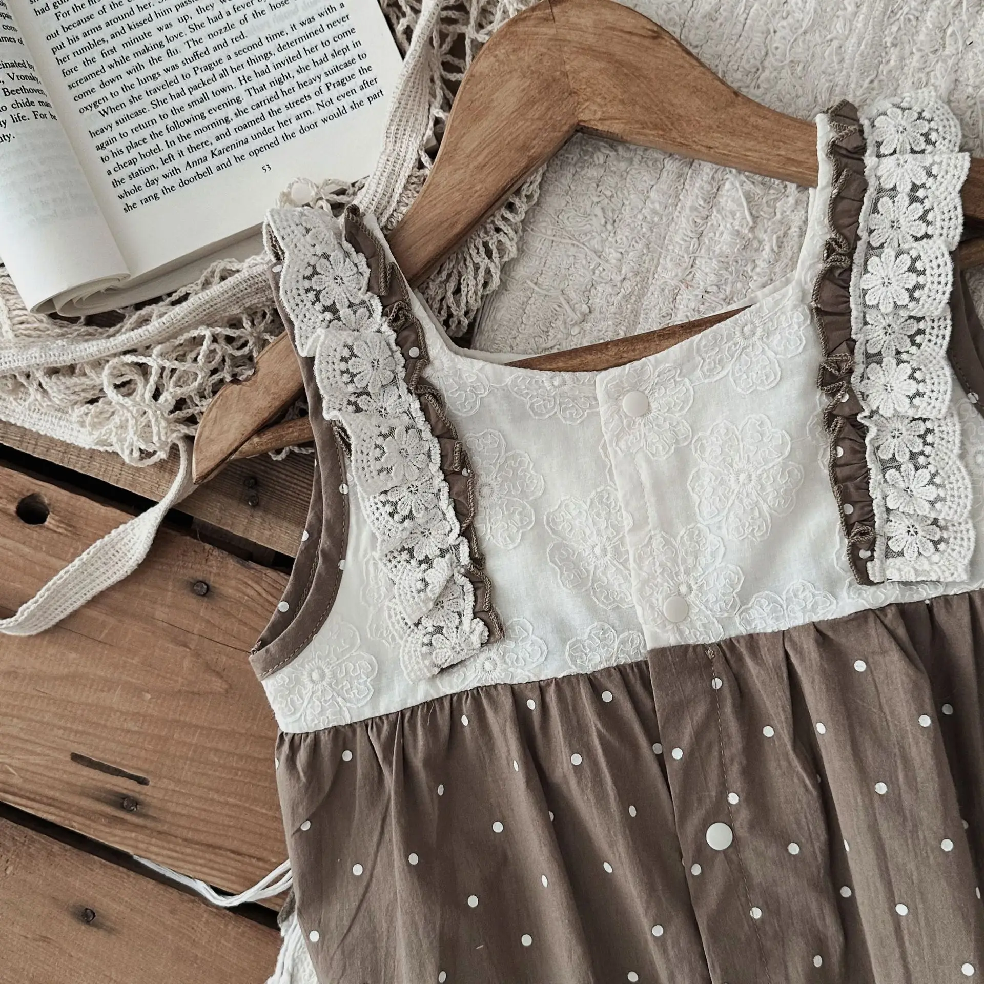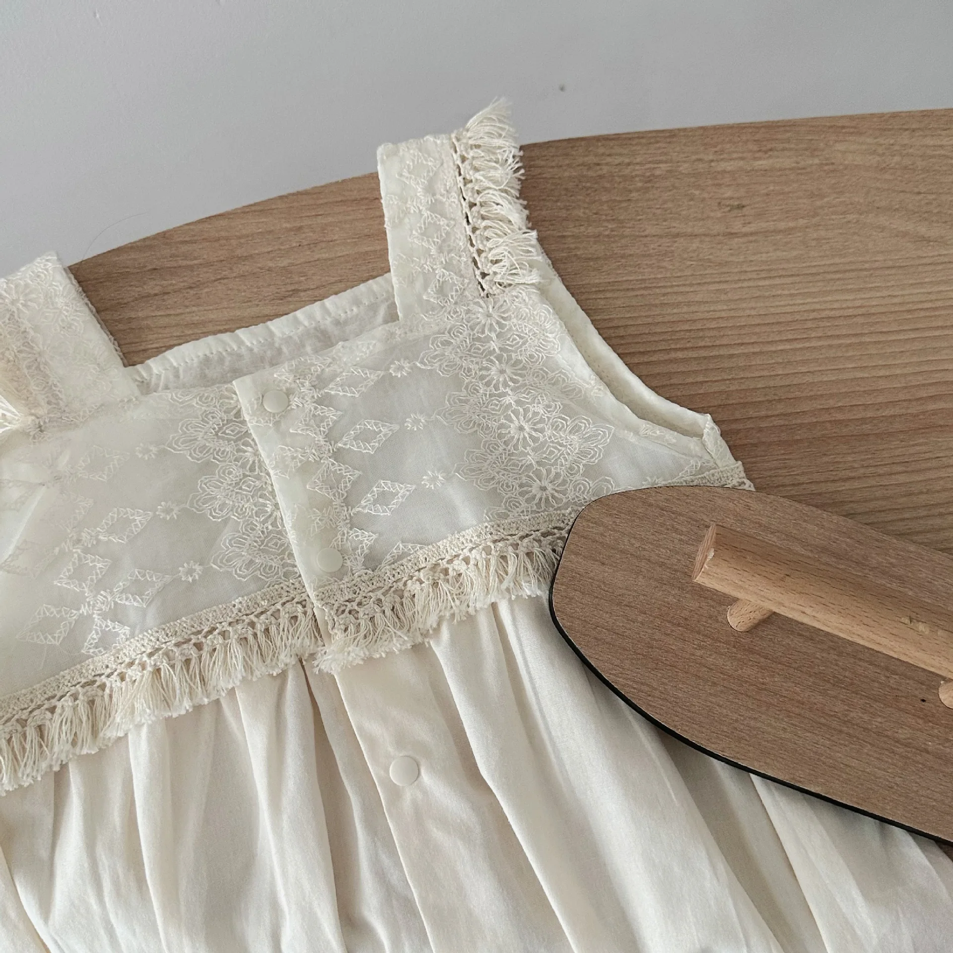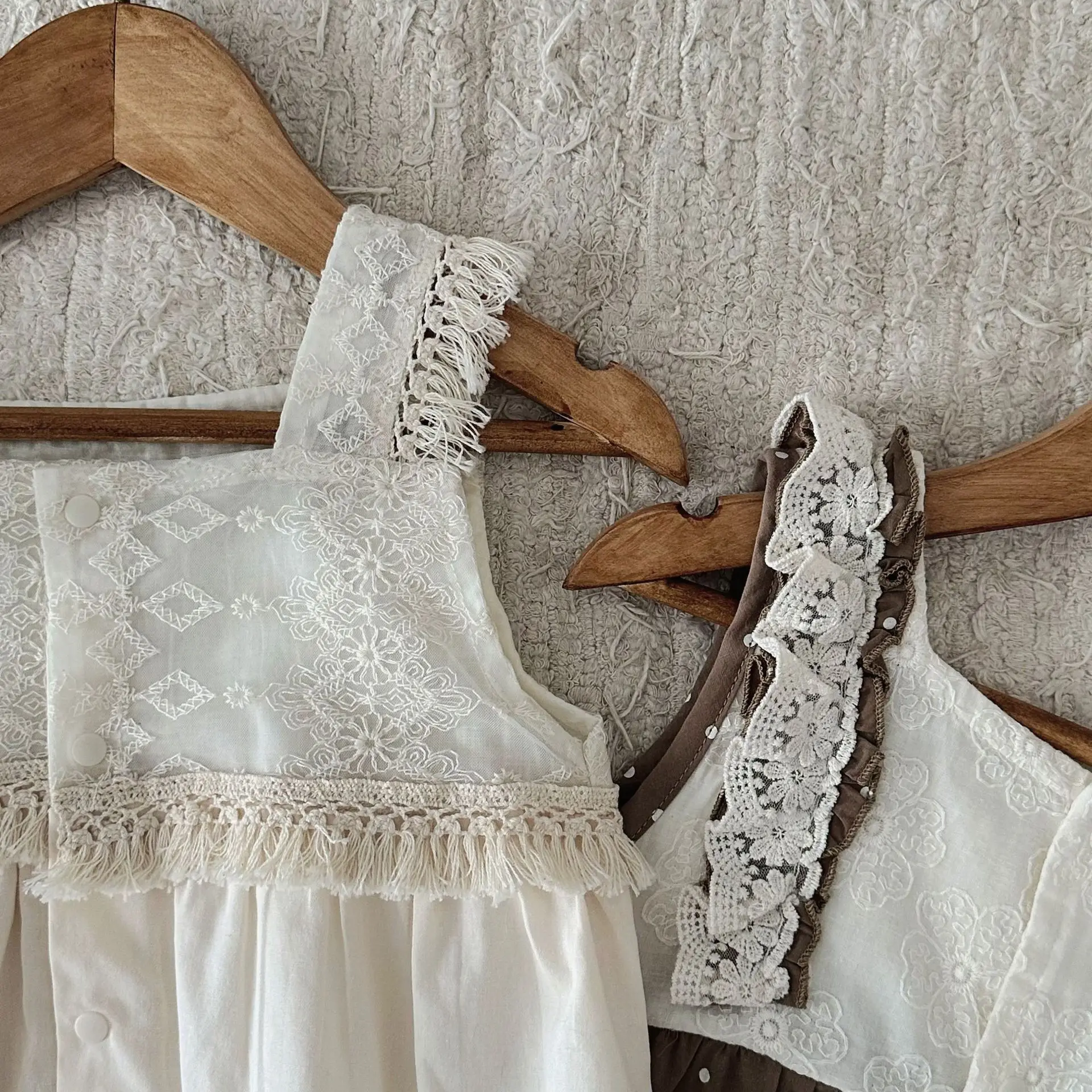ベビージャンプスーツ レース フリル サスペンダーロンパース 2カラー【mh0006314】