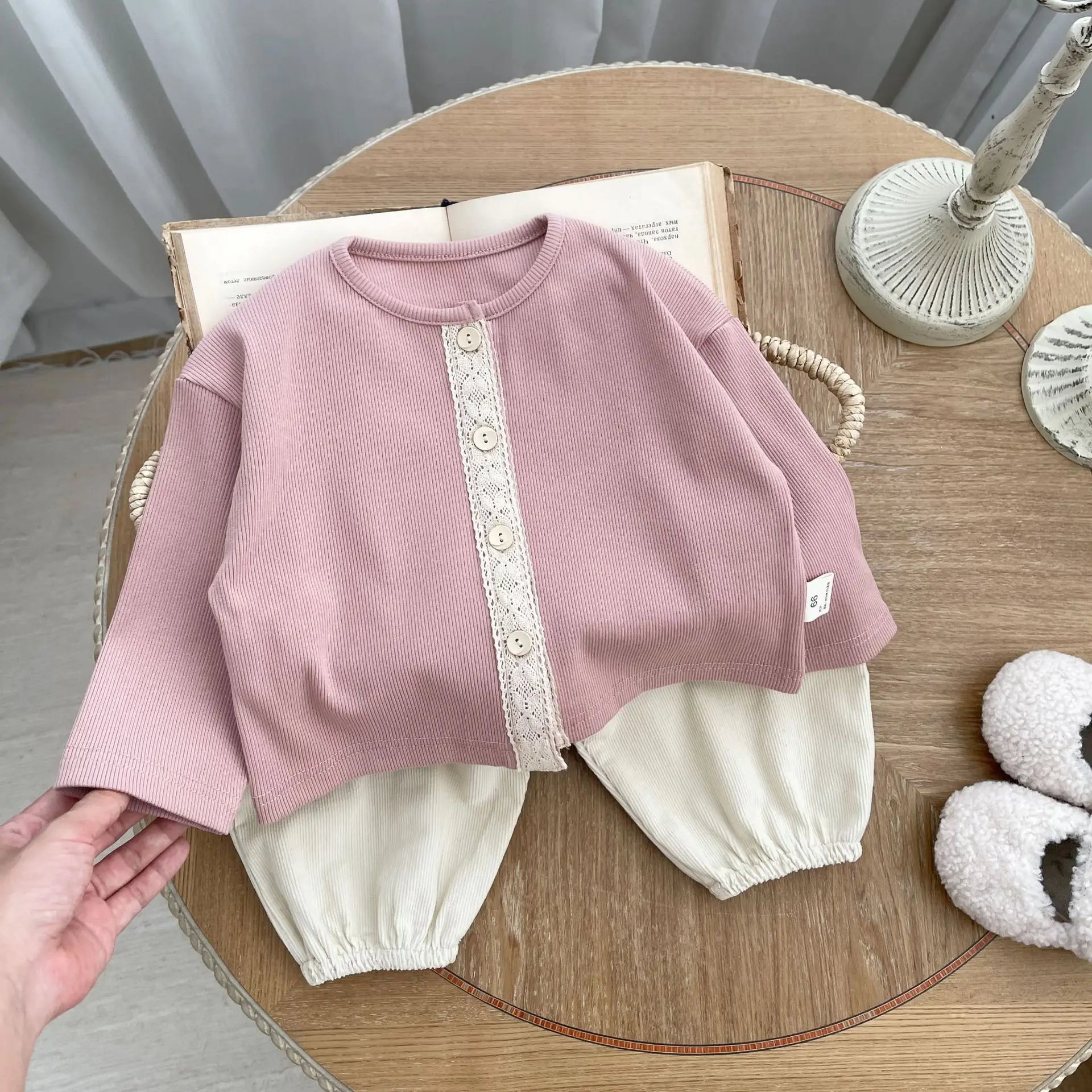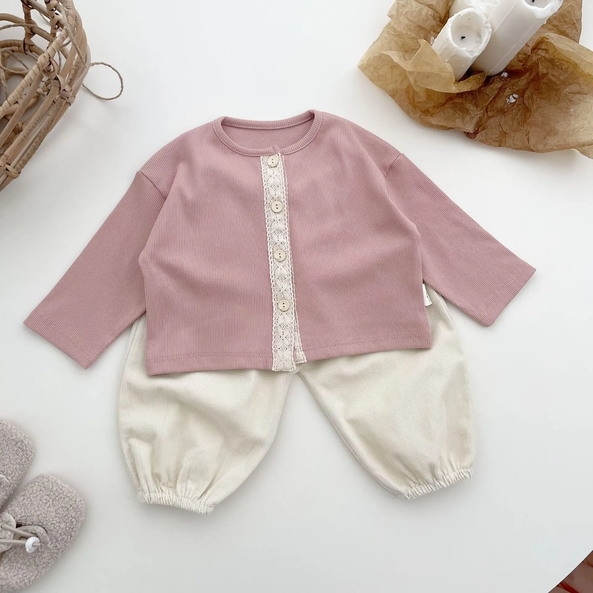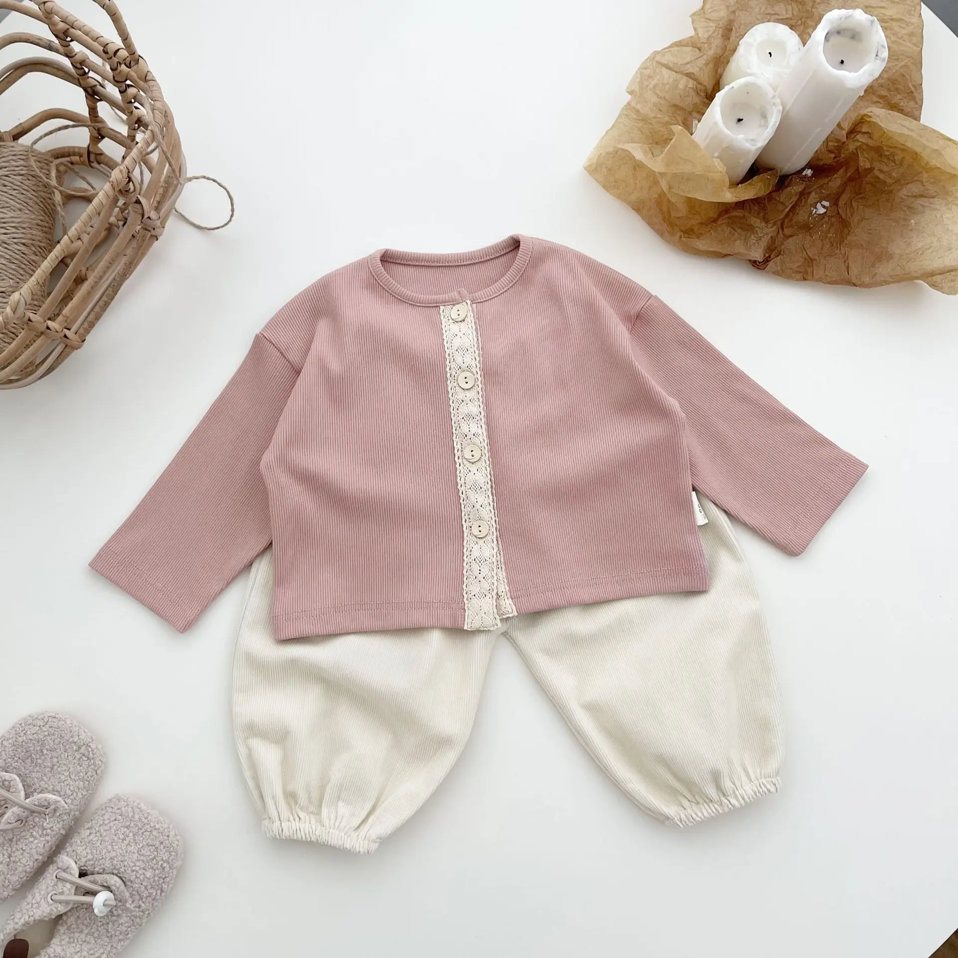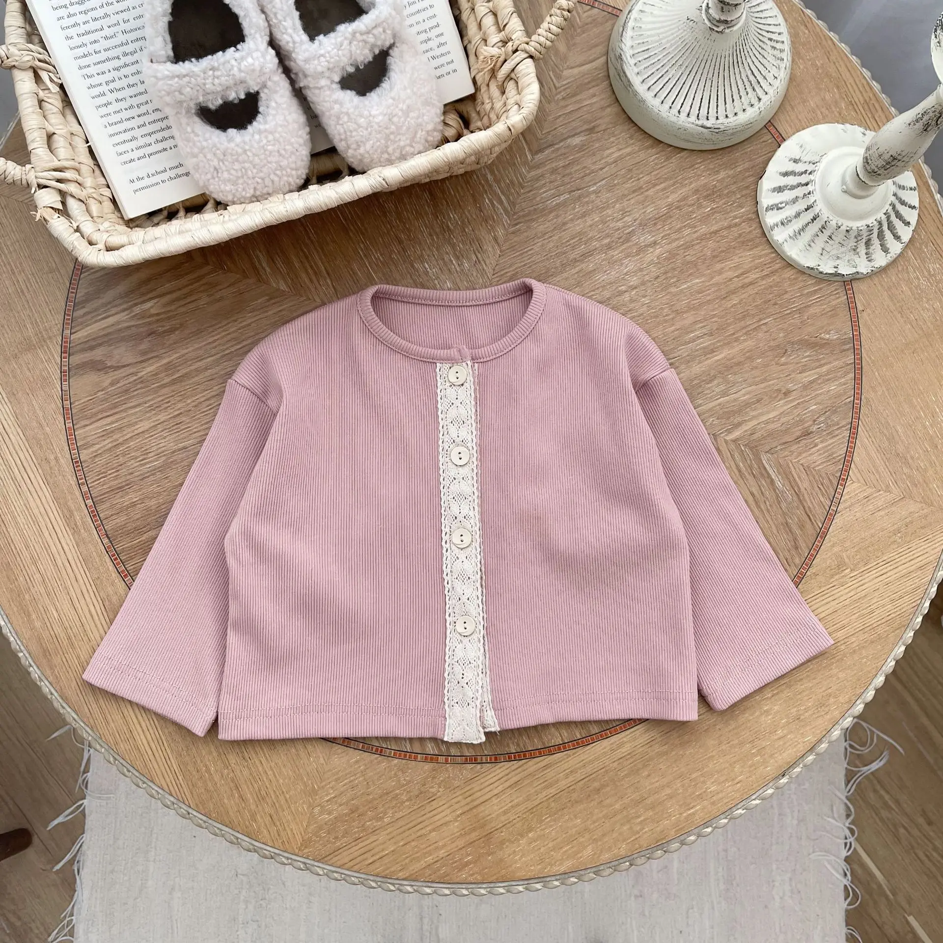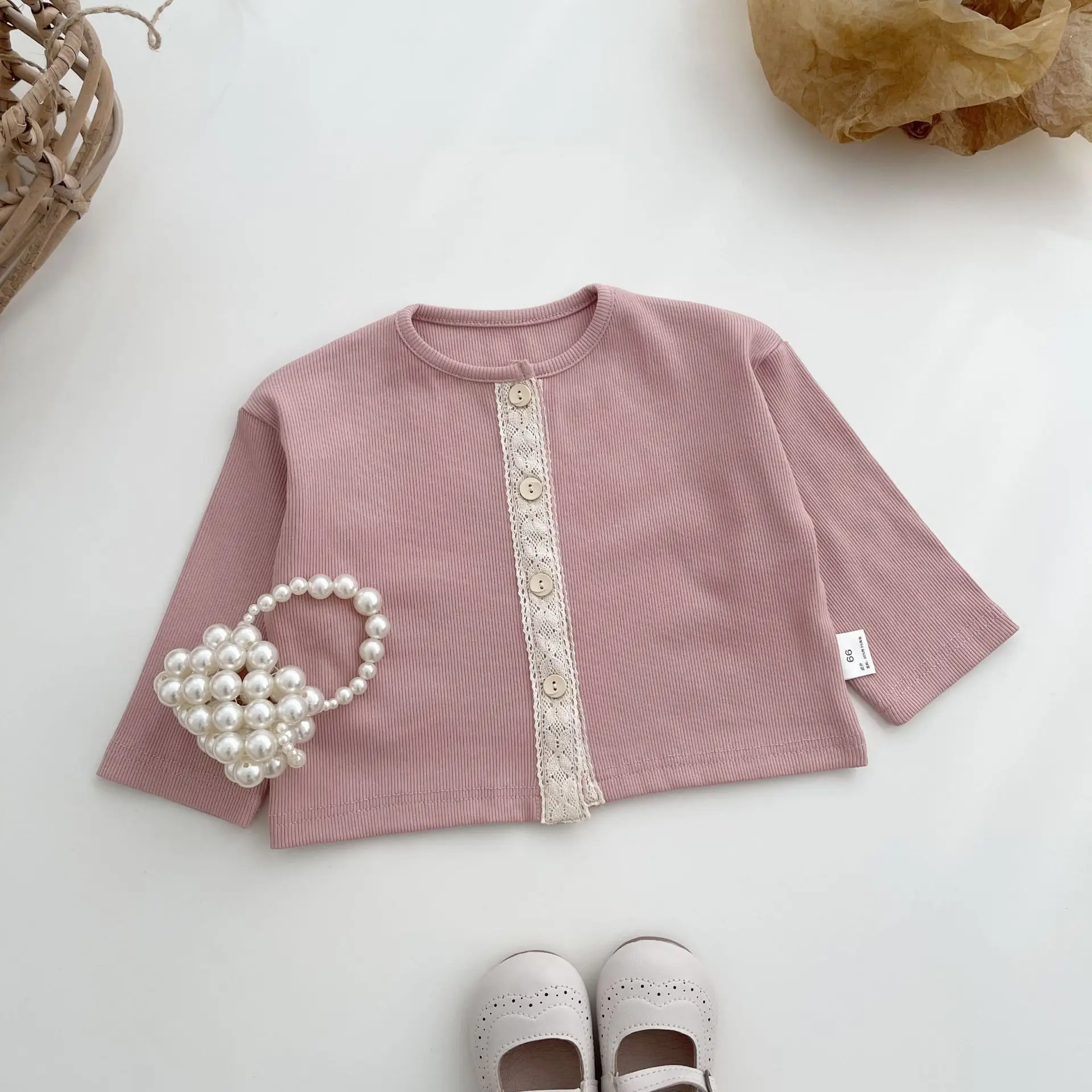ベビーカーディガン ニットジャケット フロントレース ピンク【mh0006351】