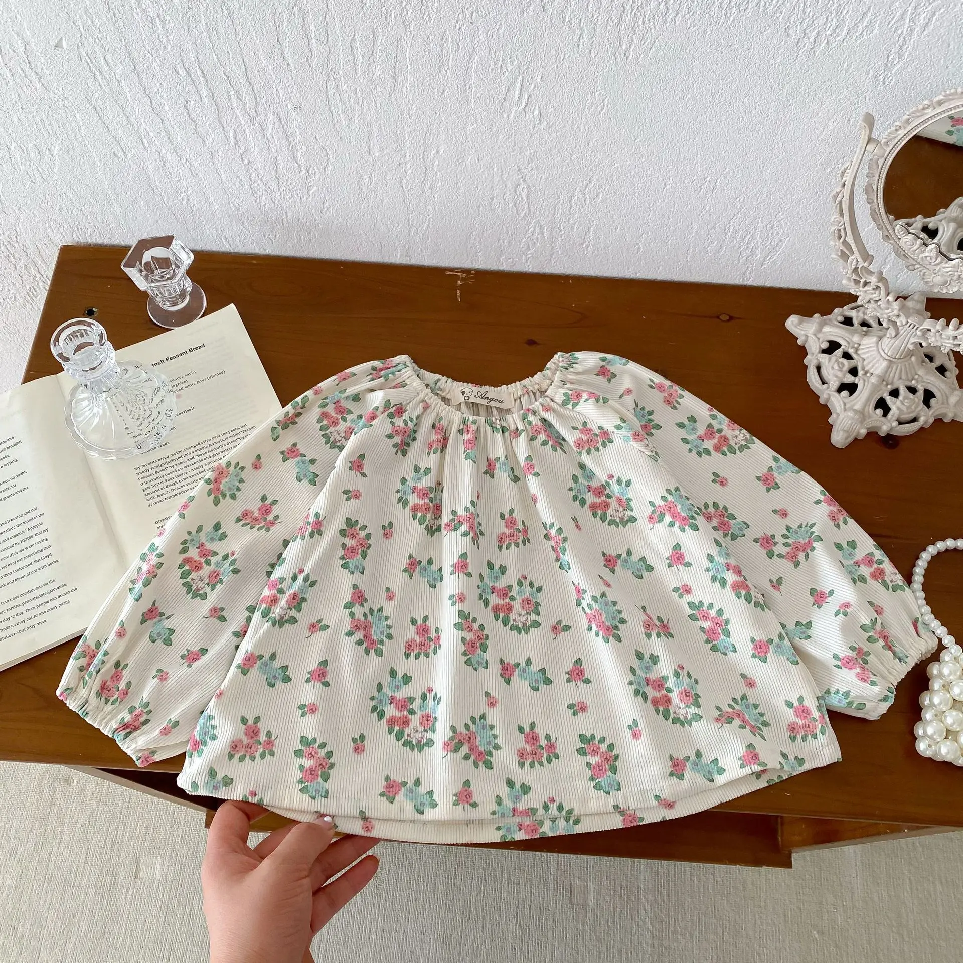 キッズトップス 長袖チュニックブラウス スモック フラワー花柄プリント【mh0006363】