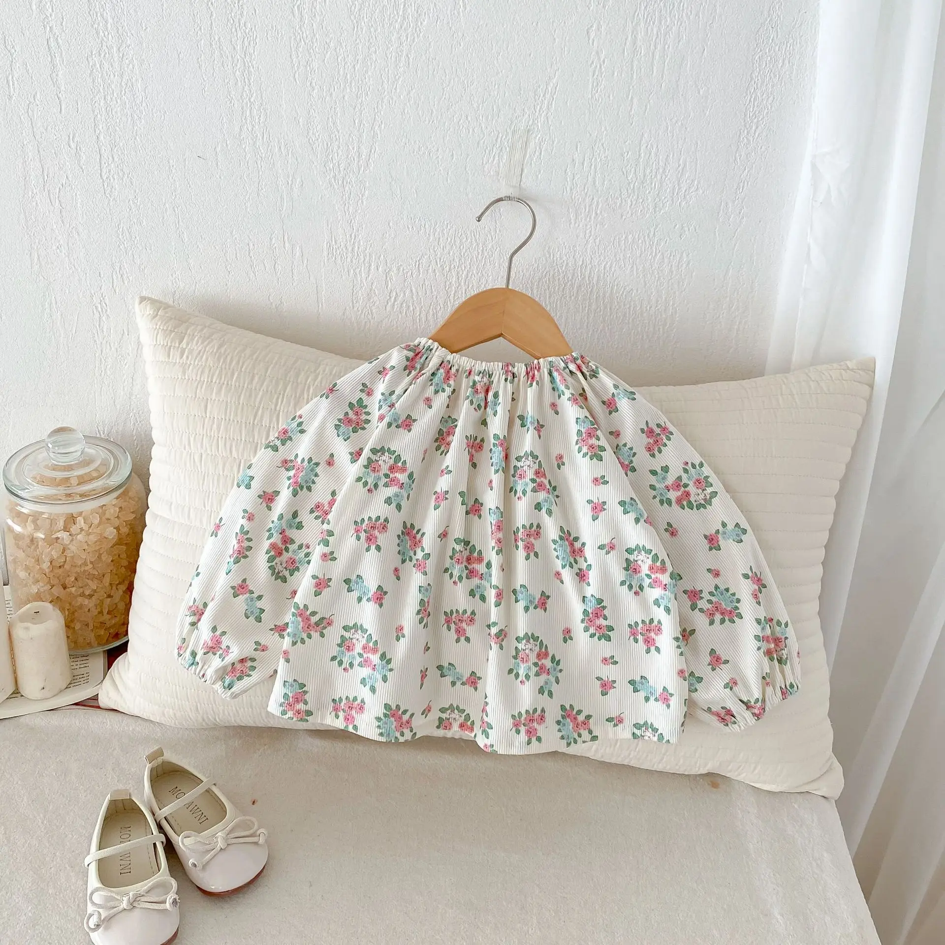 おしゃれな秋の新作。娘に優しいコットン素材で作られた可愛いチュニックブラウス。フラワー花柄プリントがアクセントになり、お子様のおしゃれ度アップ♪長袖で暖かく、着心地抜群。可愛いプリンセストップスはお子様をさらに可愛く見せてくれます。幼児の女の子にぴったりです。