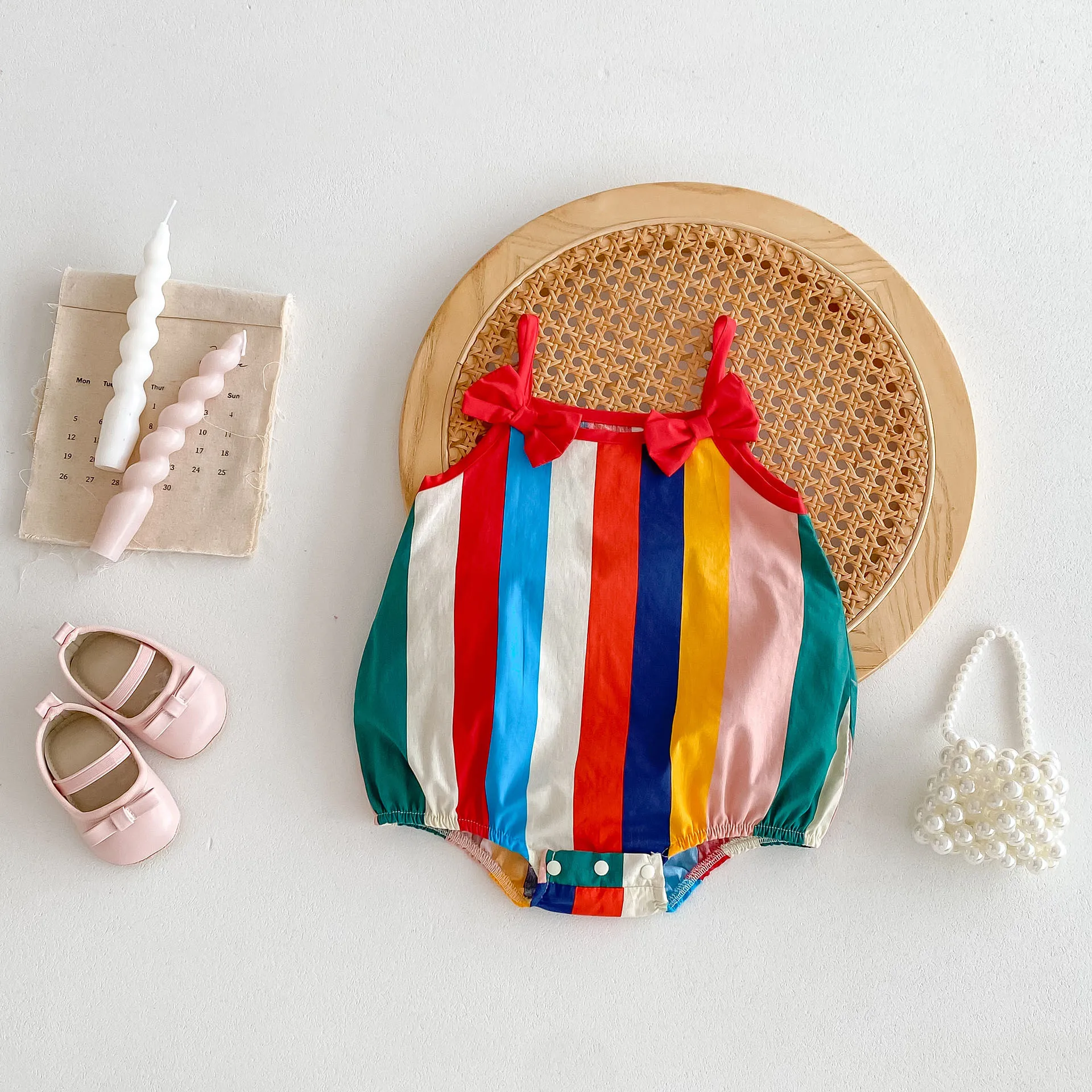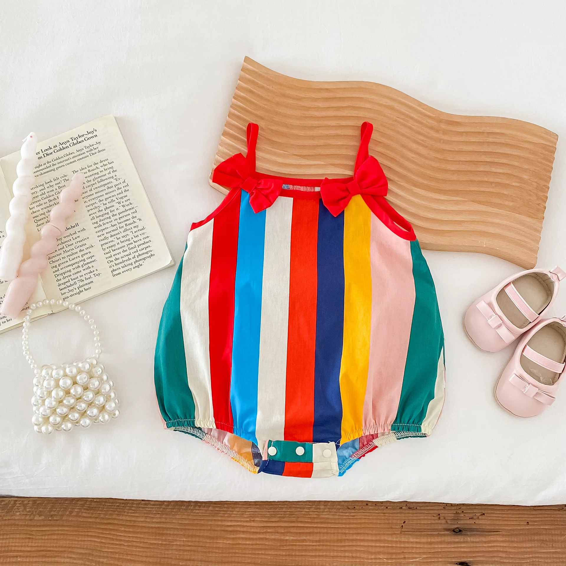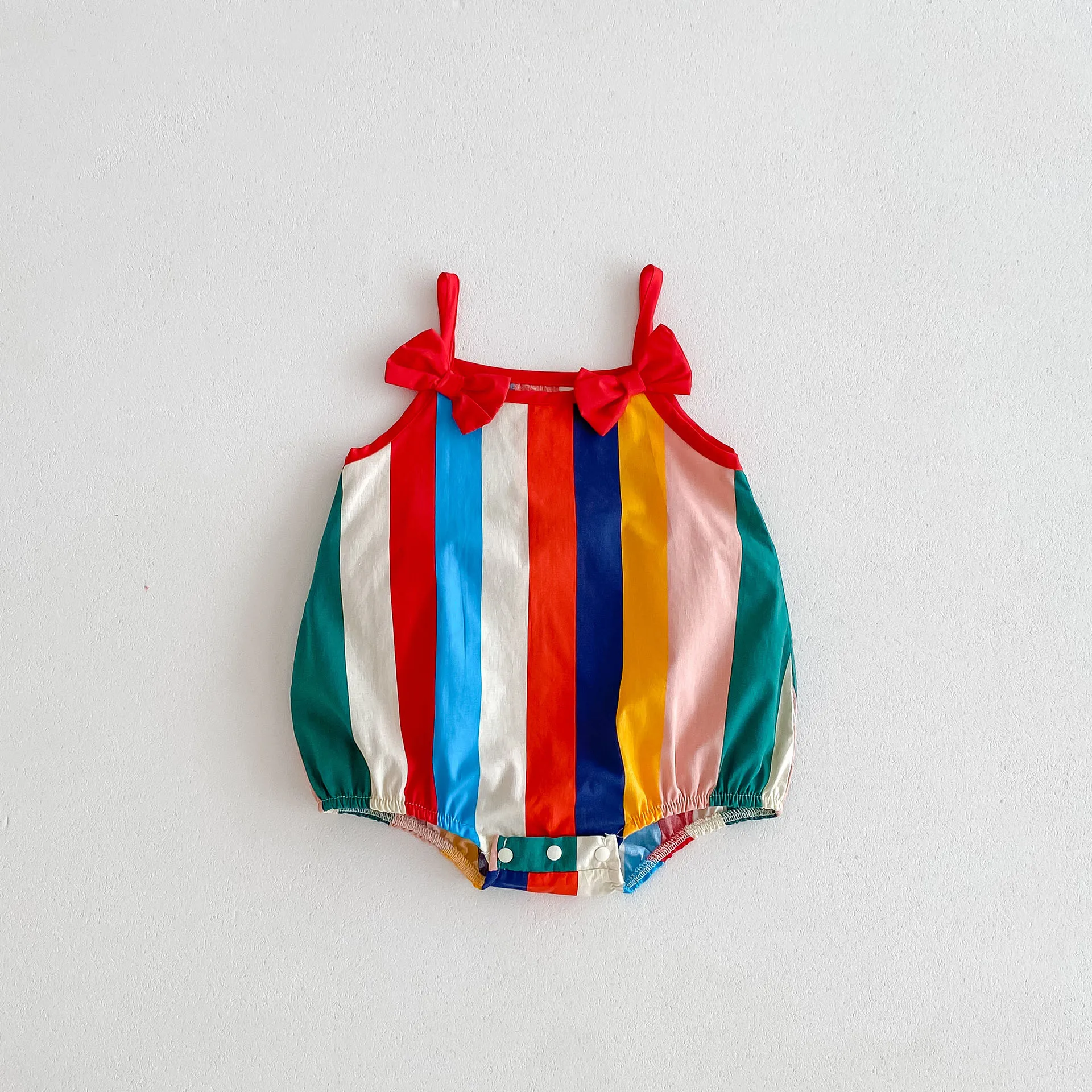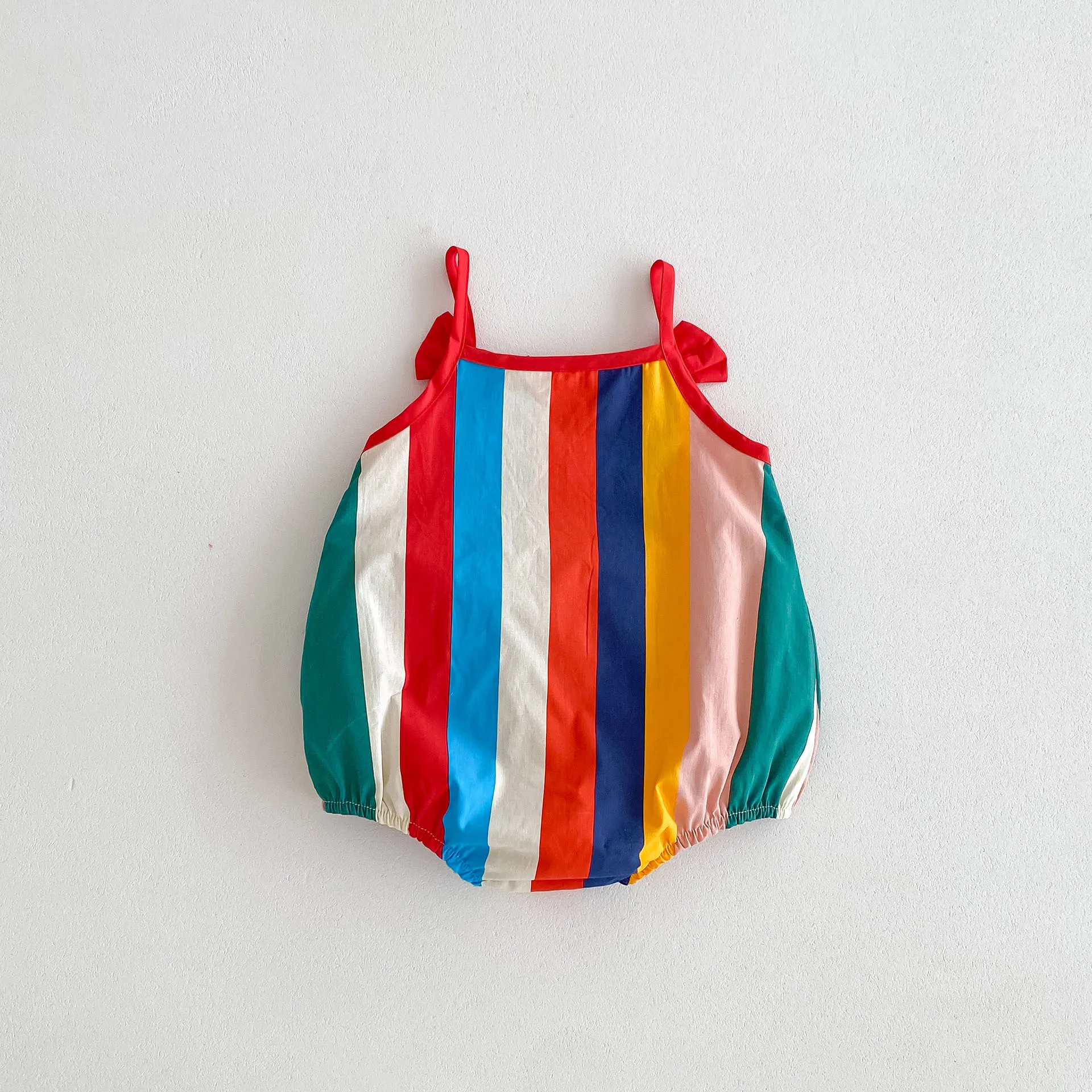 ベビーロンパース カラフルストライプ キャミソールボディスーツ リボン【mh0006551】