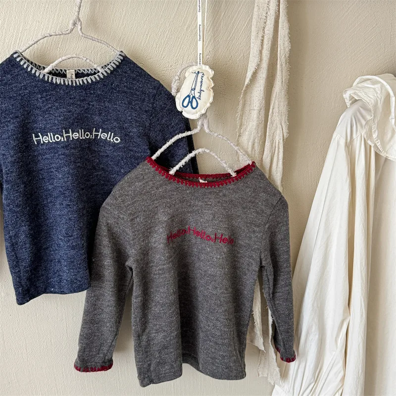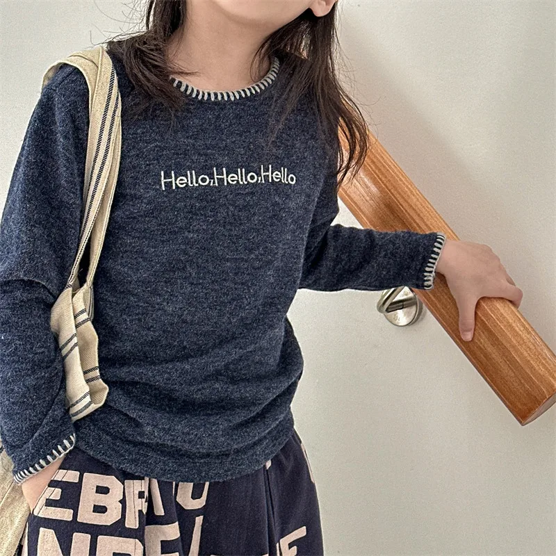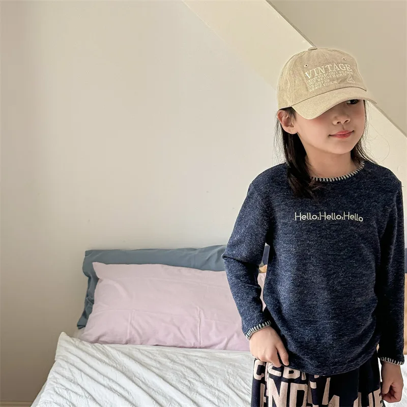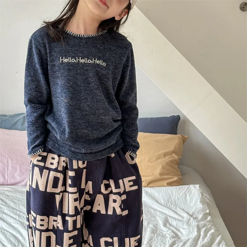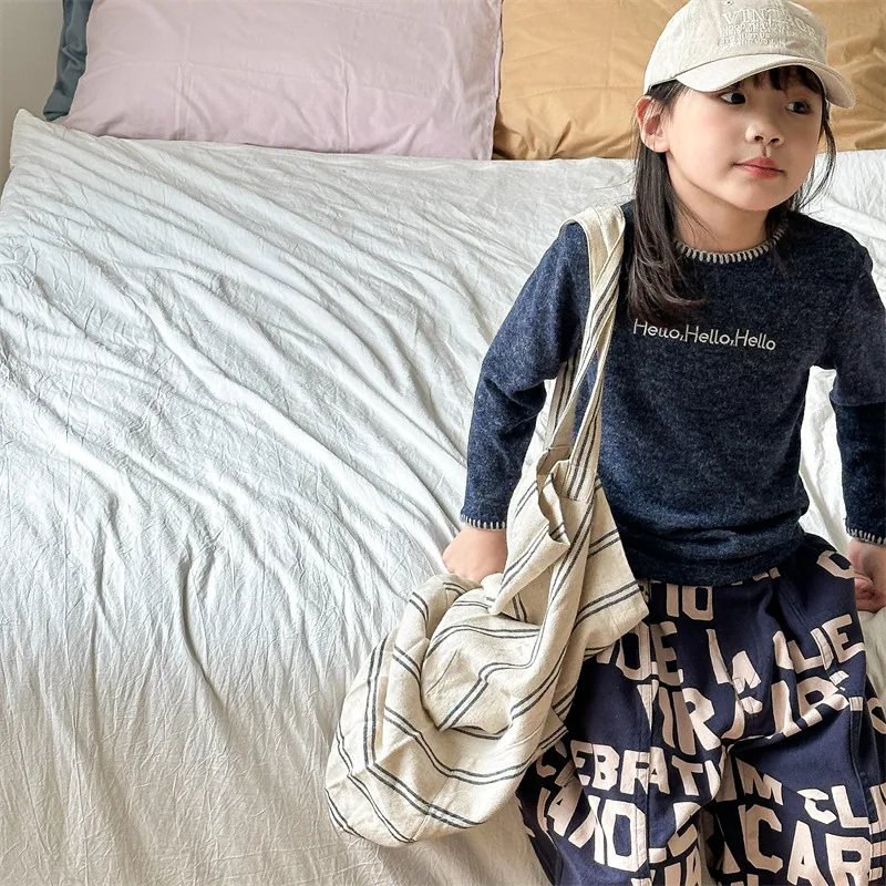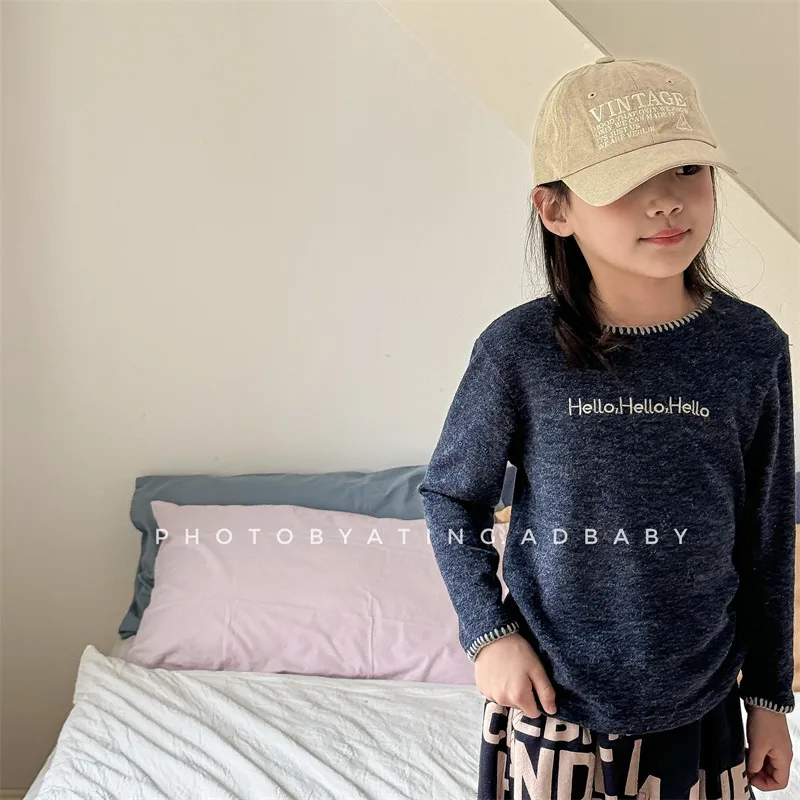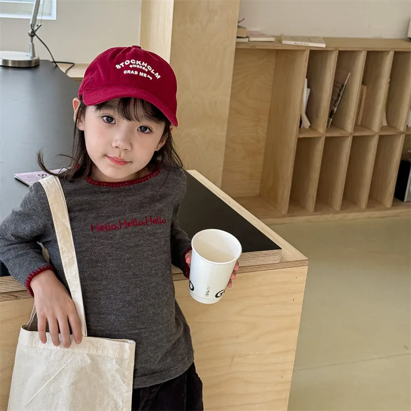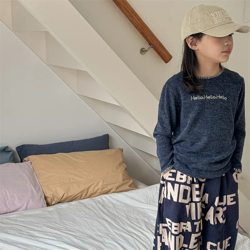 #キッズトップス #レターロゴ刺繍 #長袖Tシャツ #子供服 #カジュアルスタイル #コットントップス