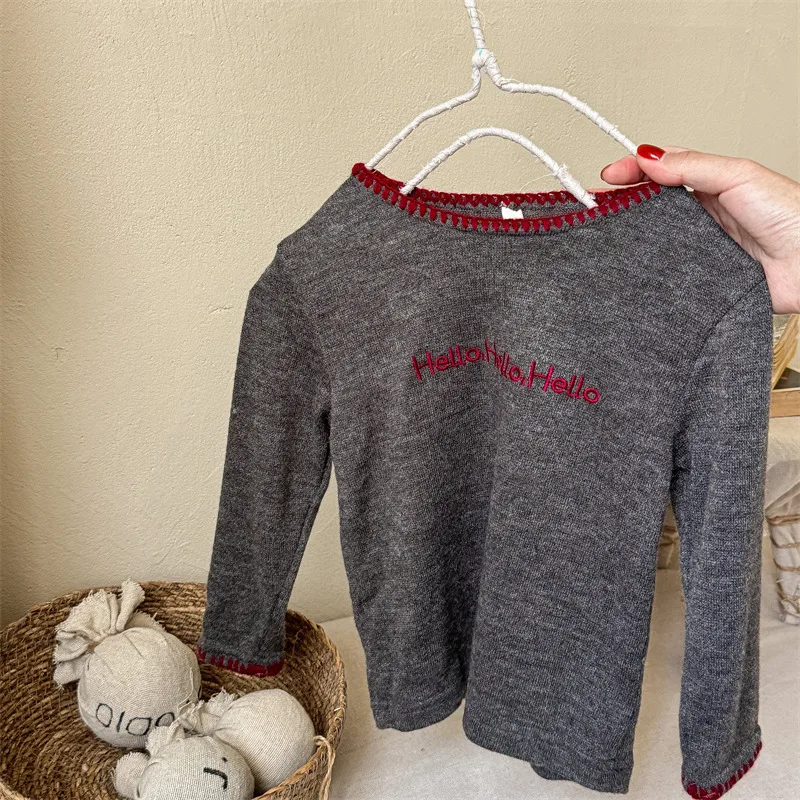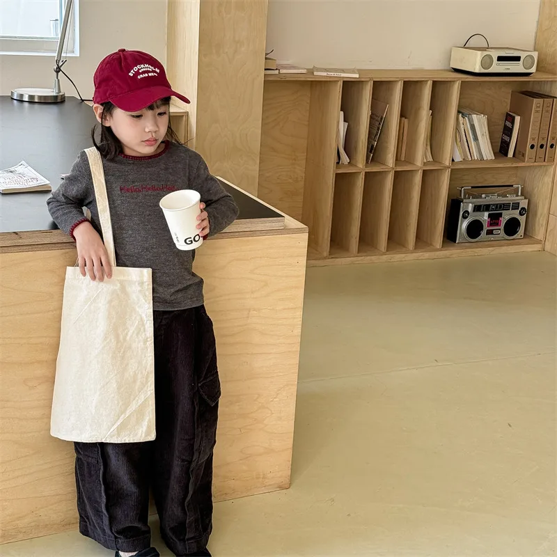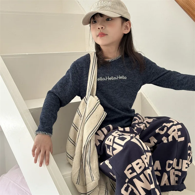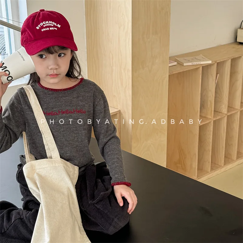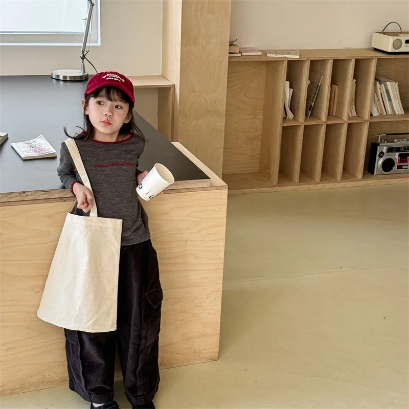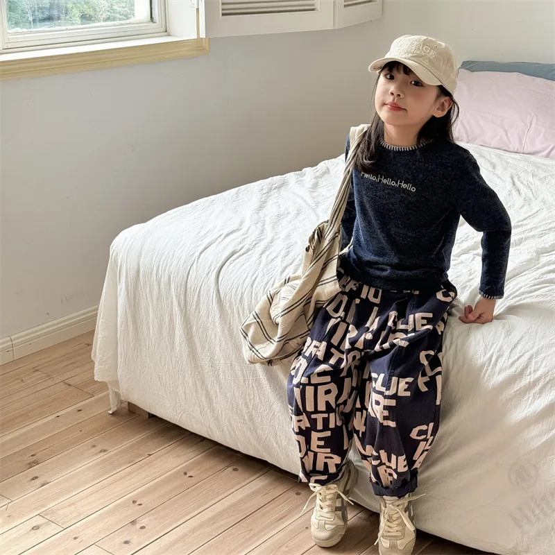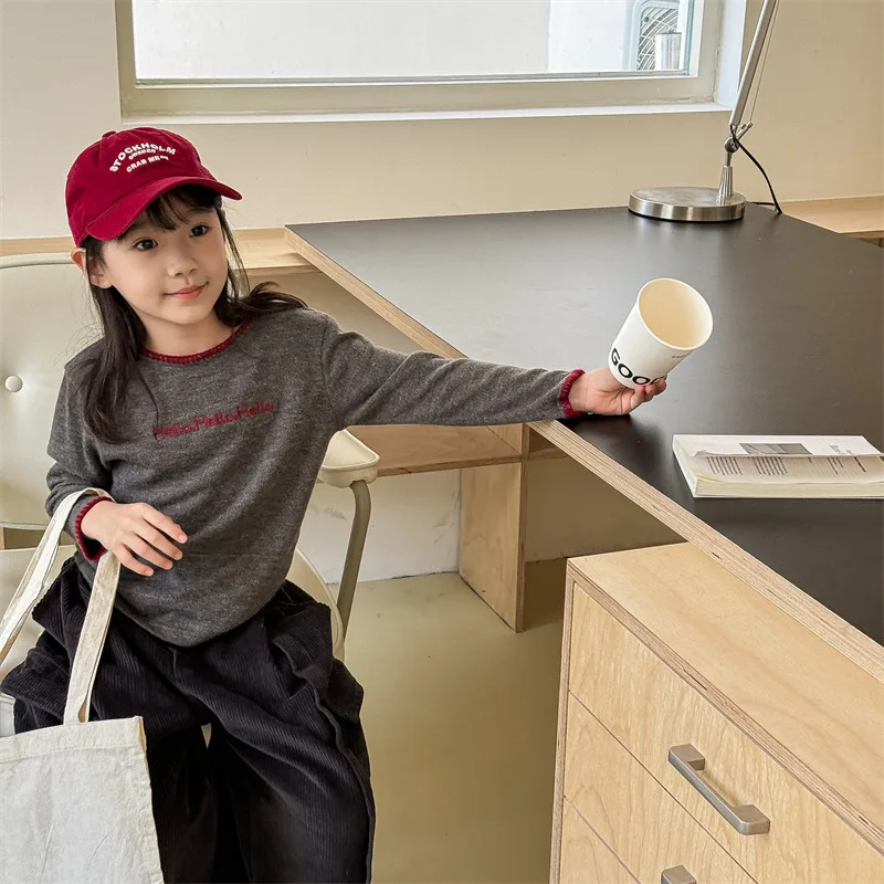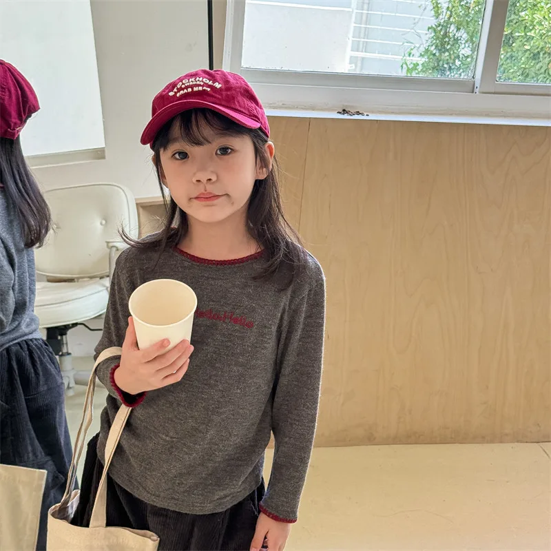 #キッズトップス #レターロゴ刺繍 #長袖Tシャツ #子供服 #カジュアルスタイル #コットントップス