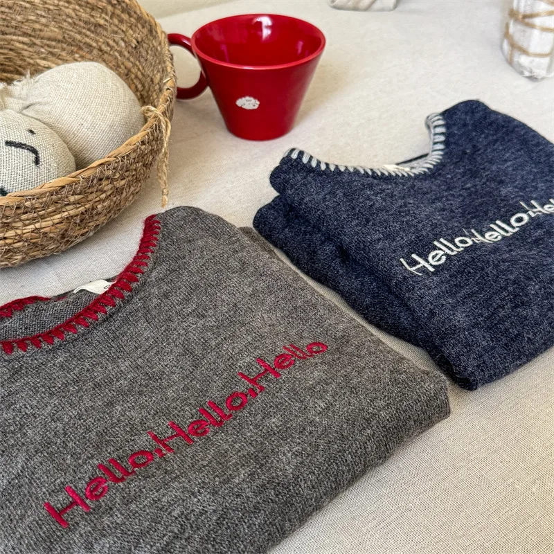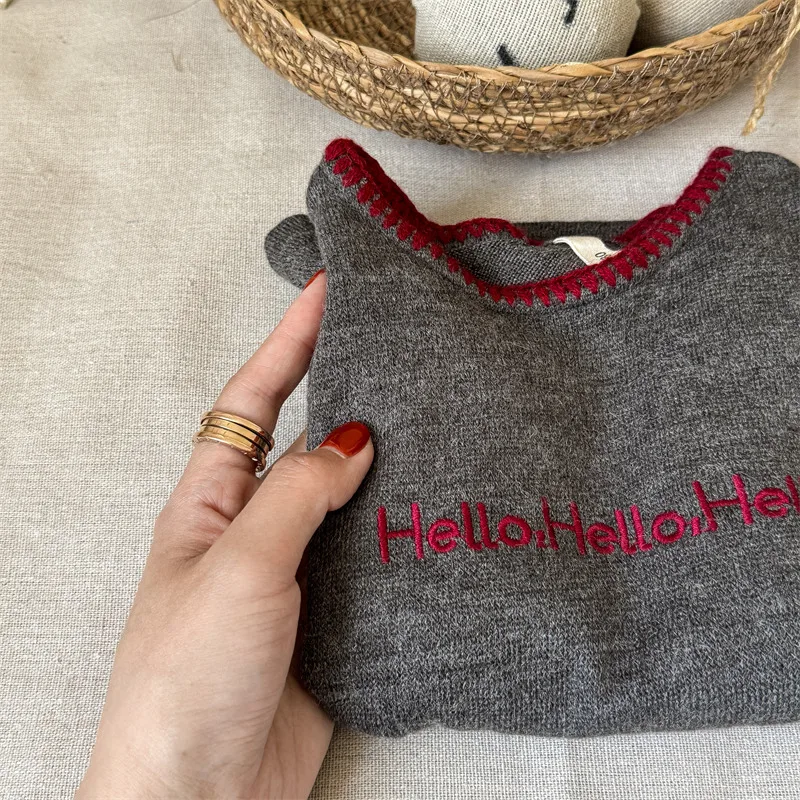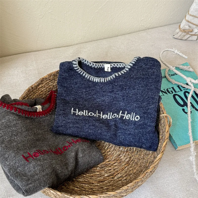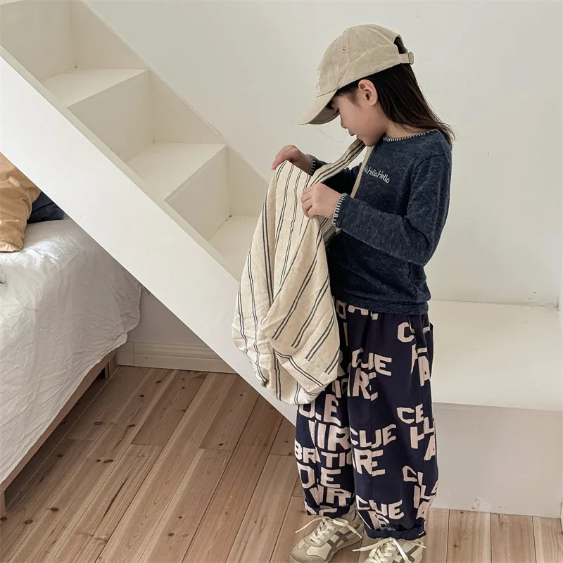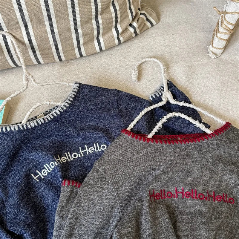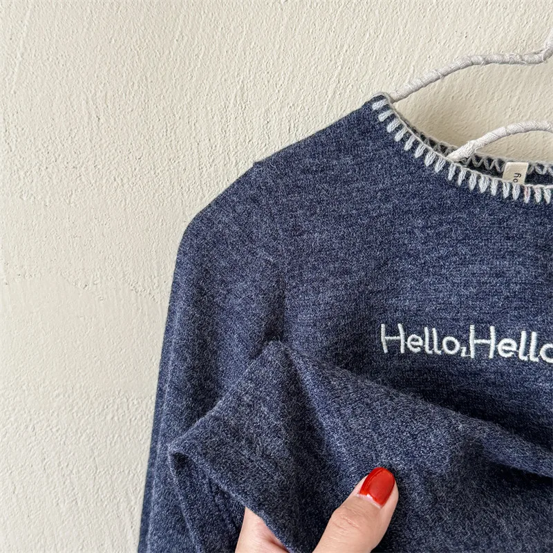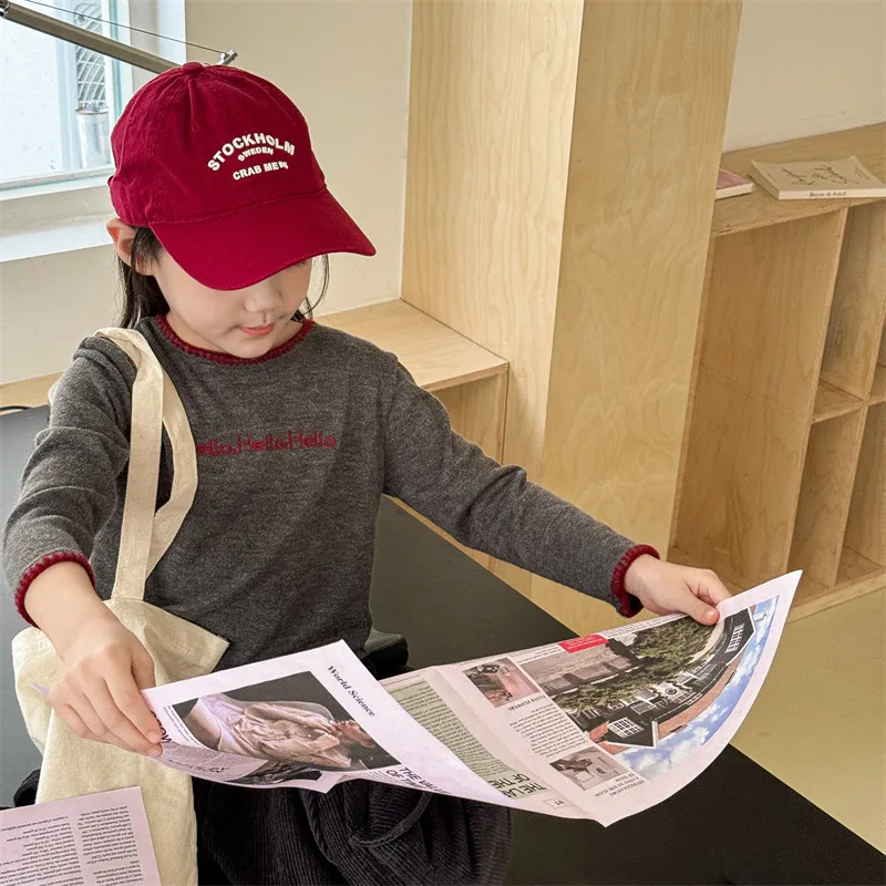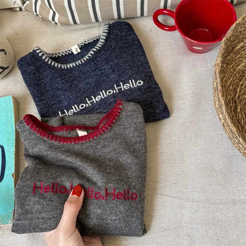 #キッズトップス #レターロゴ刺繍 #長袖Tシャツ #子供服 #カジュアルスタイル #コットントップス