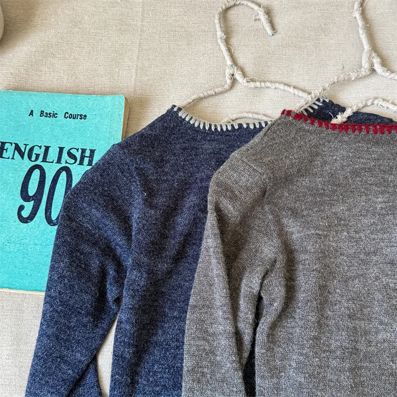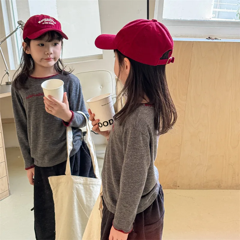 キッズトップス 長袖Tシャツ レターロゴステッチ刺繍 2カラー【mh0006619】