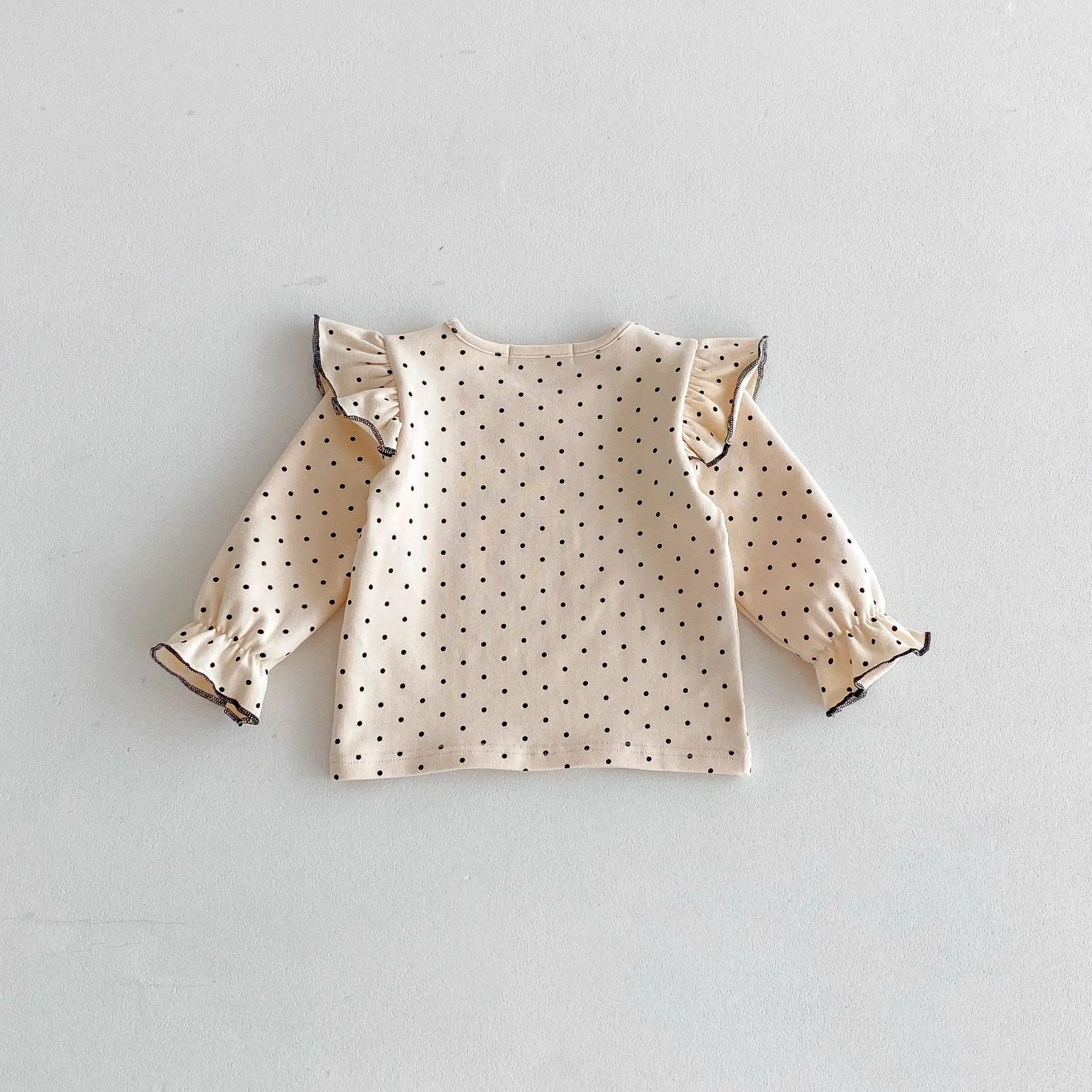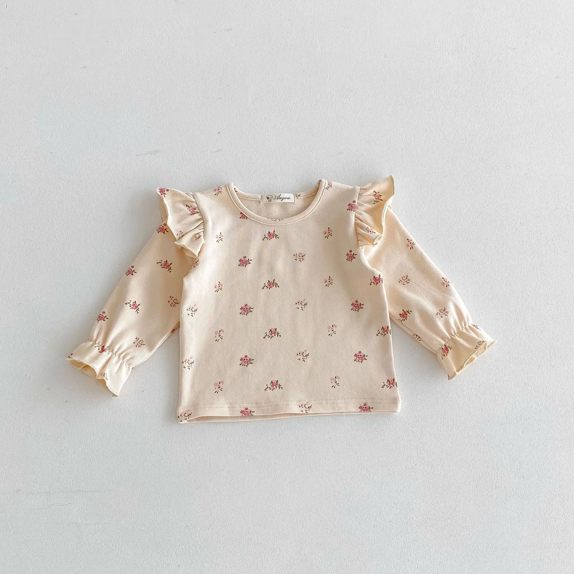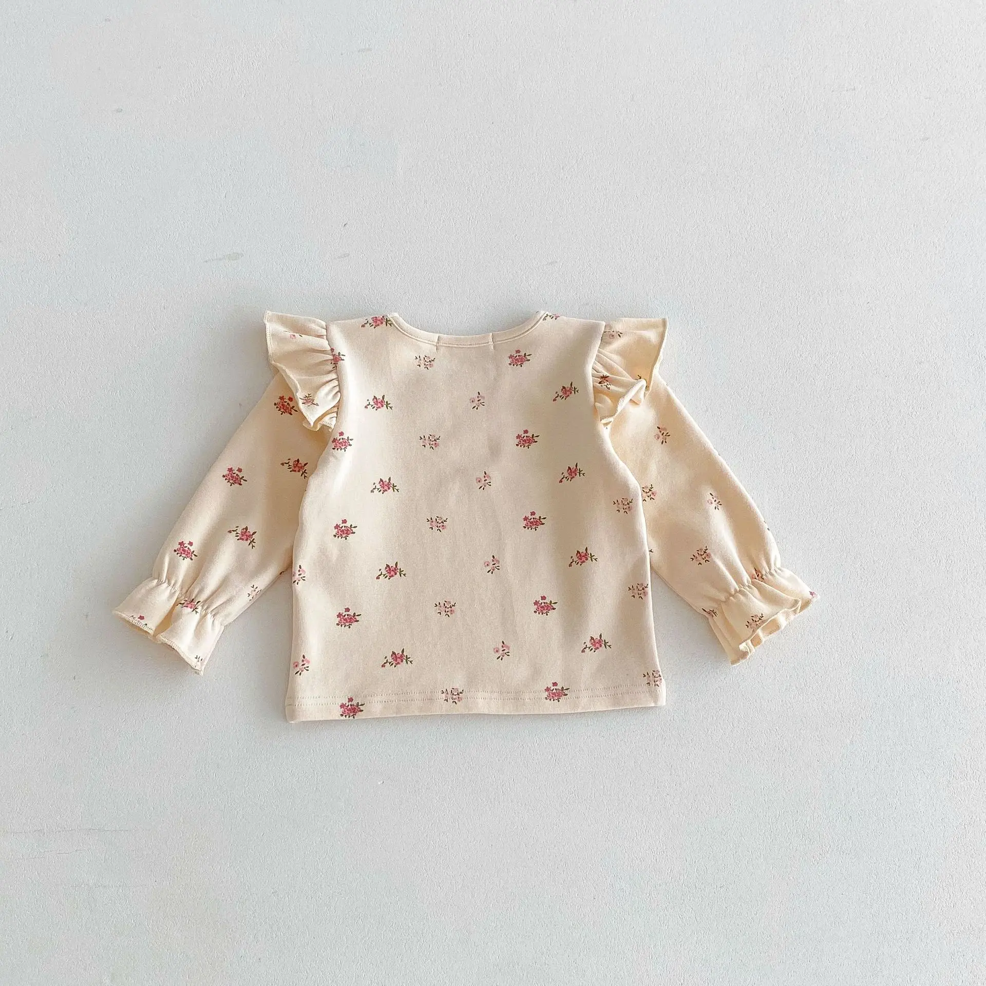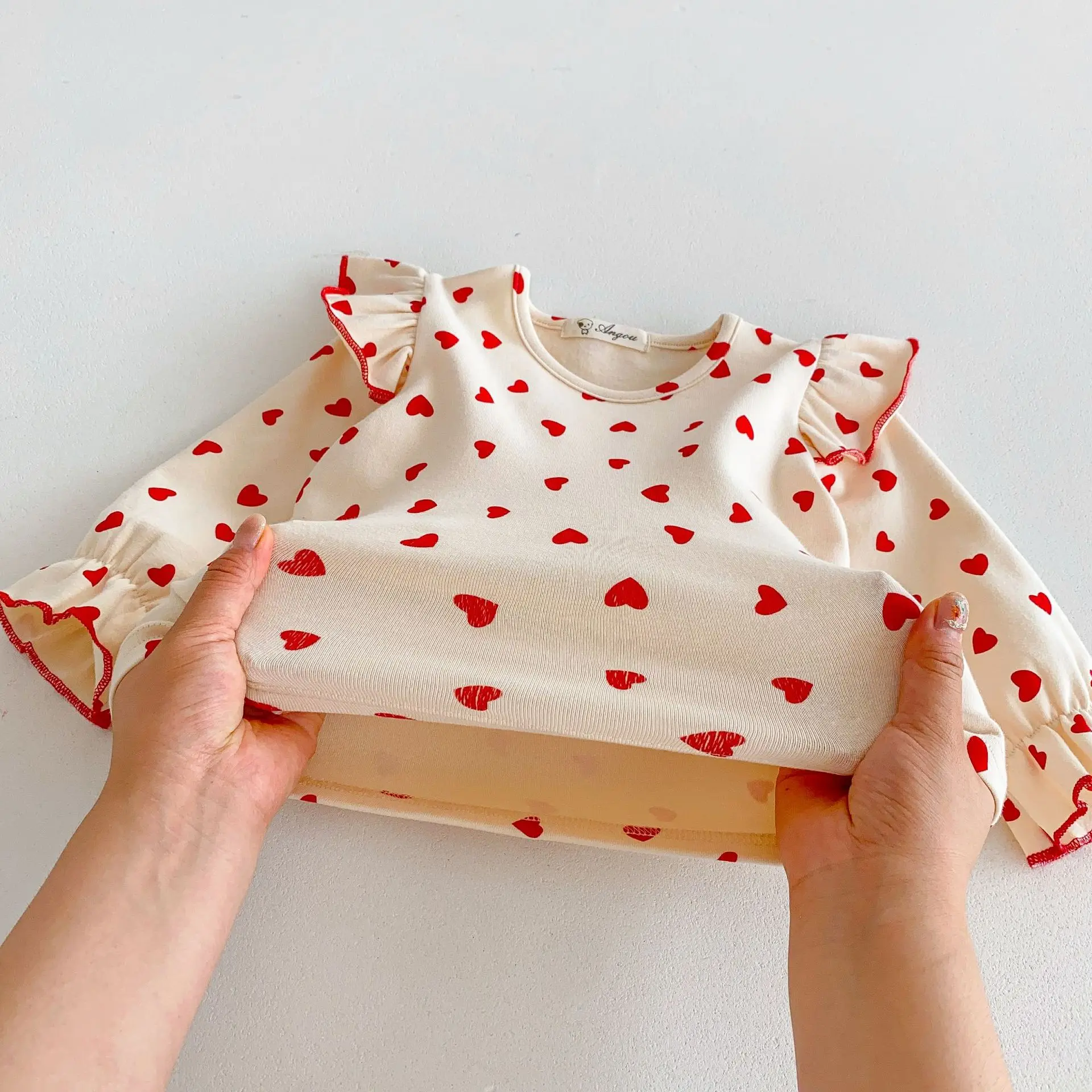 キッズトップス 長袖ショルダーフリルTシャツ ハート/フラワー小花柄/水玉ドットプリント【mh0006643】