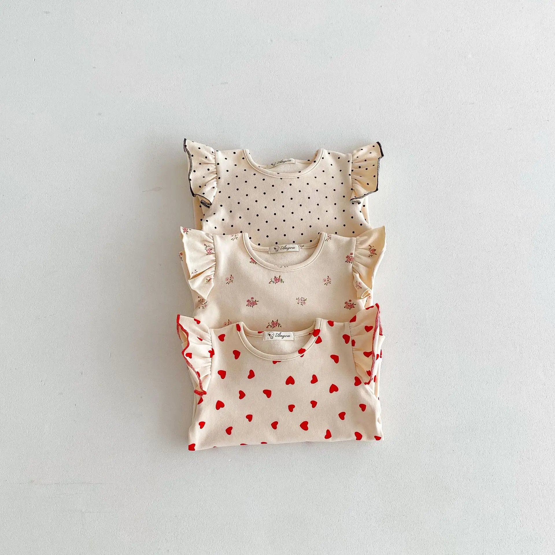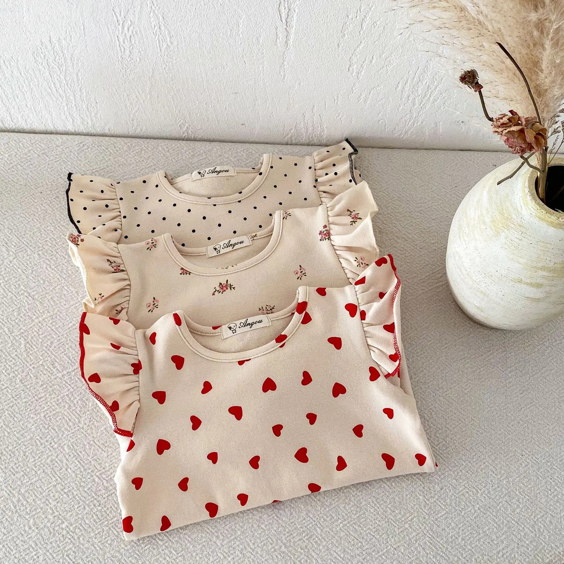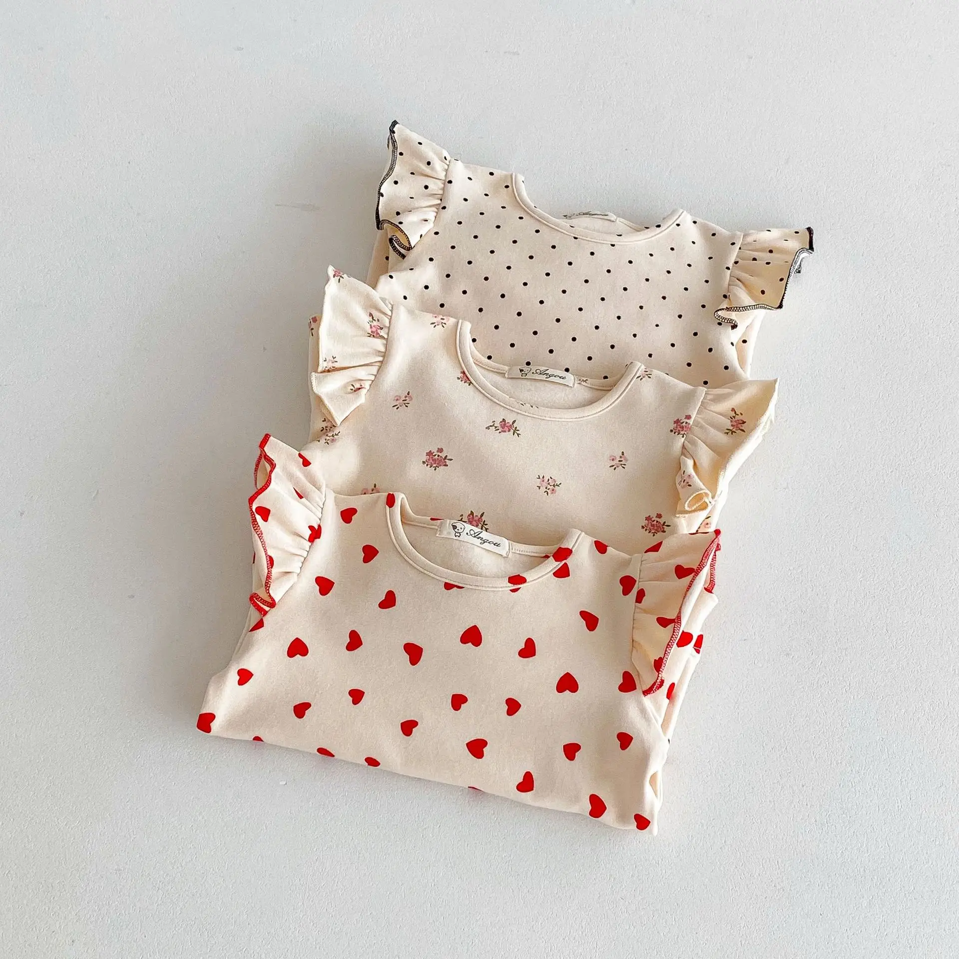 #キッズTシャツ #ショルダーフリル #ハートプリント #小花柄 #水玉ドット #子供服 #カジュアルスタイル #おしゃれキッズ