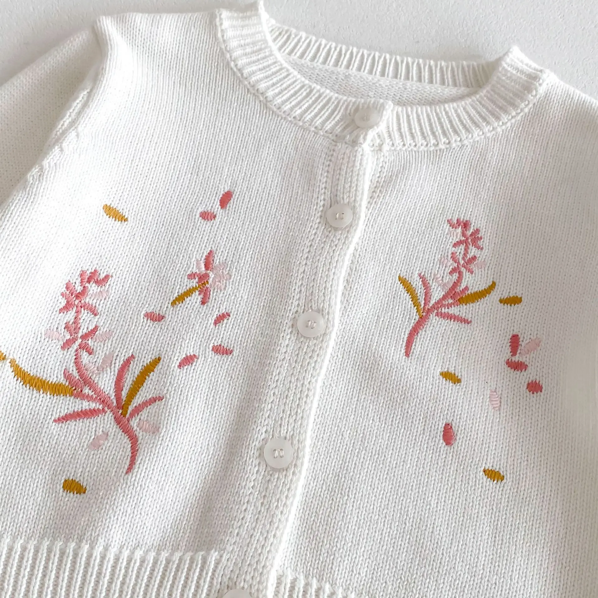 #キッズカーディガン #花柄刺繍 #ニットジャケット #子供服 #カジュアルスタイル #おしゃれキッズ #長袖セーター