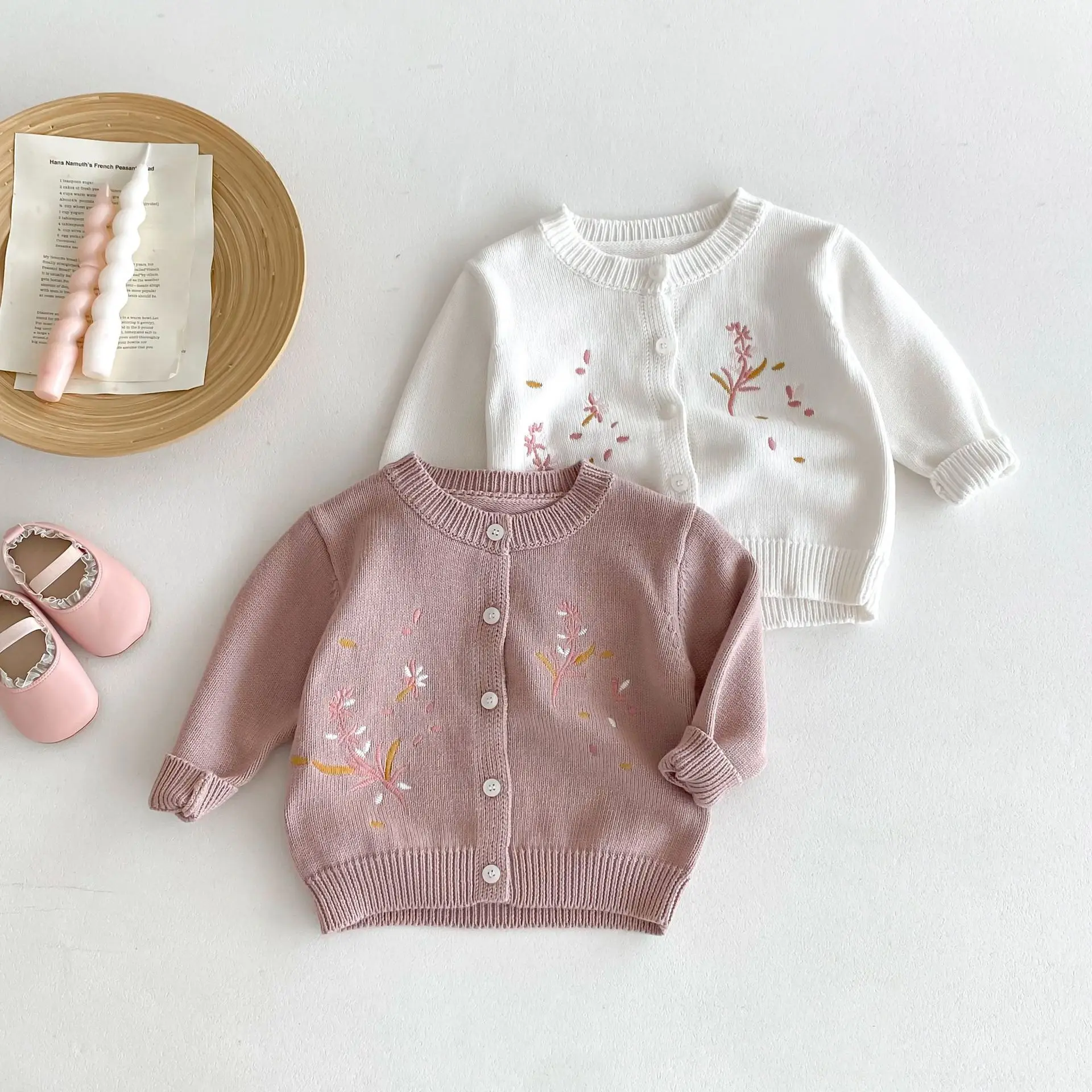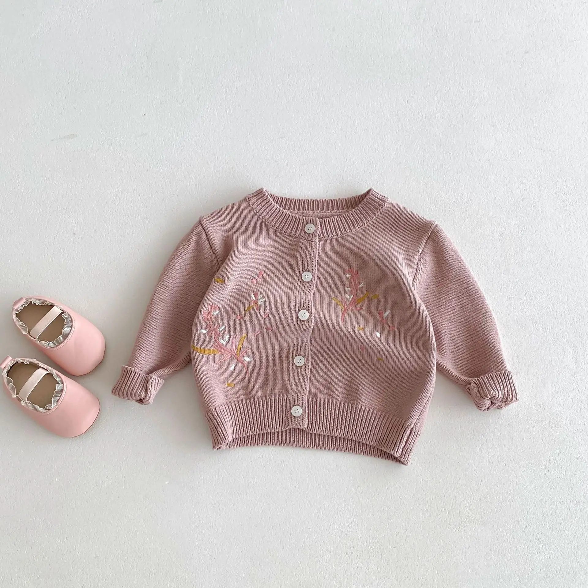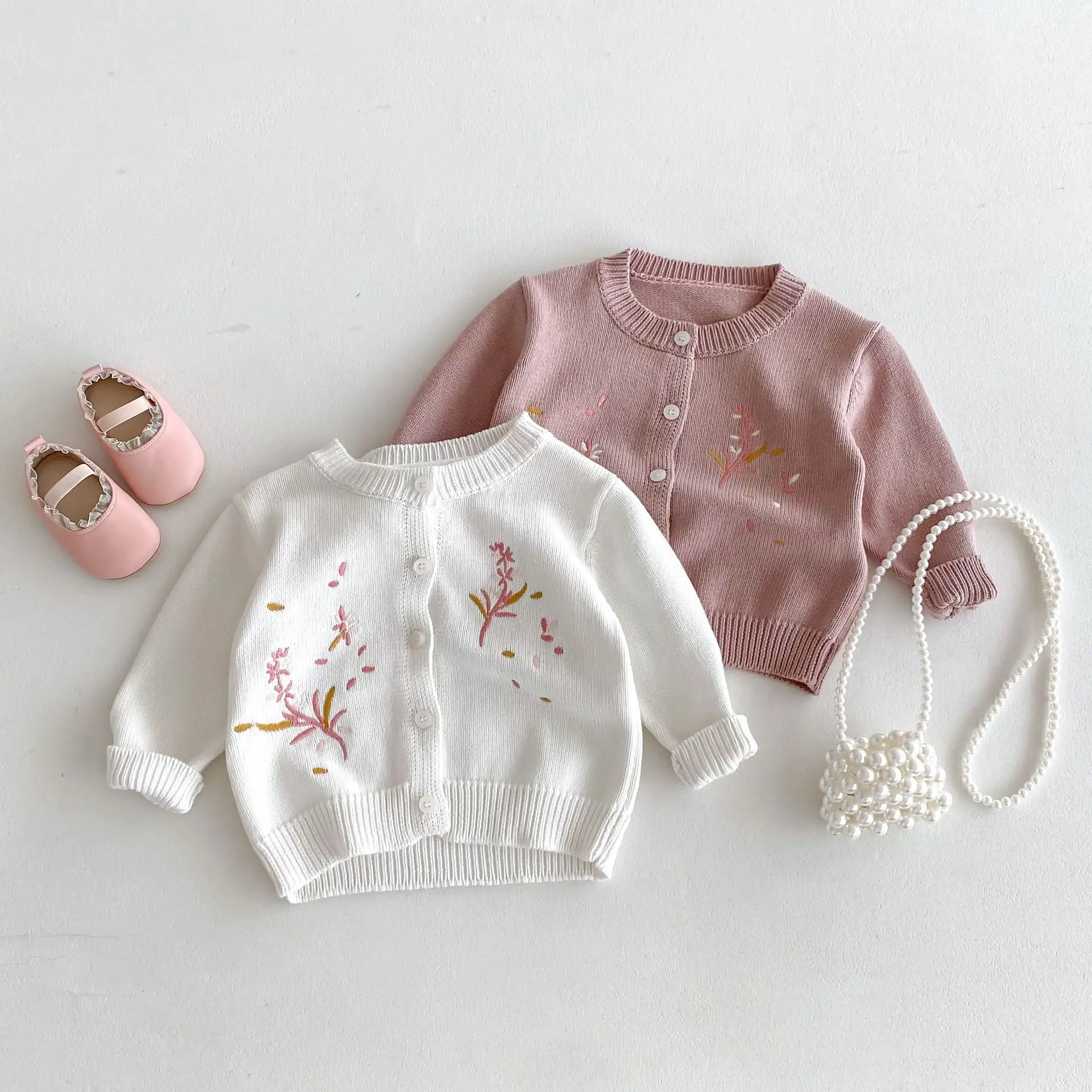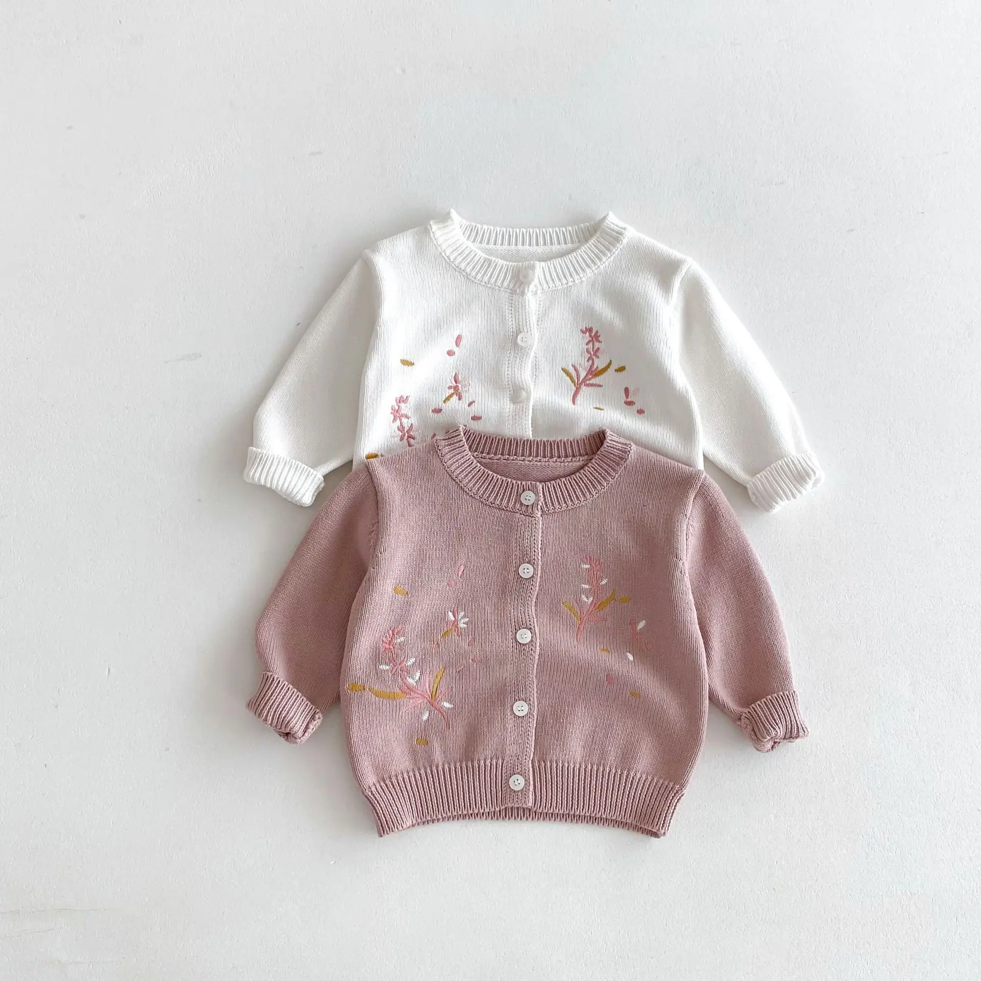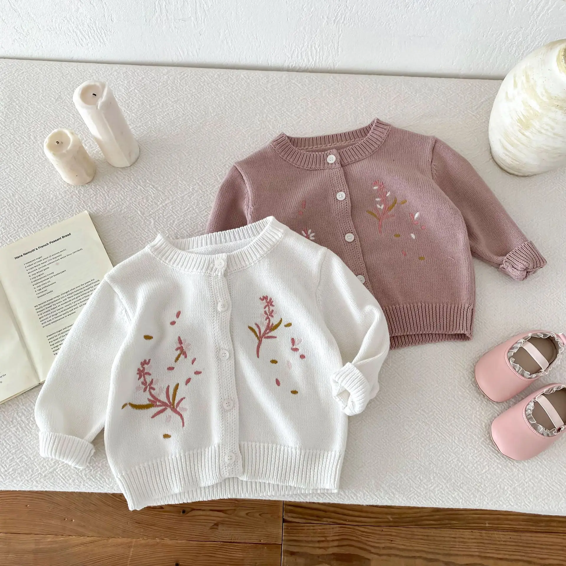 キッズカーディガン ニットジャケット フラワー花柄刺繍 2カラー【mh0006644】
