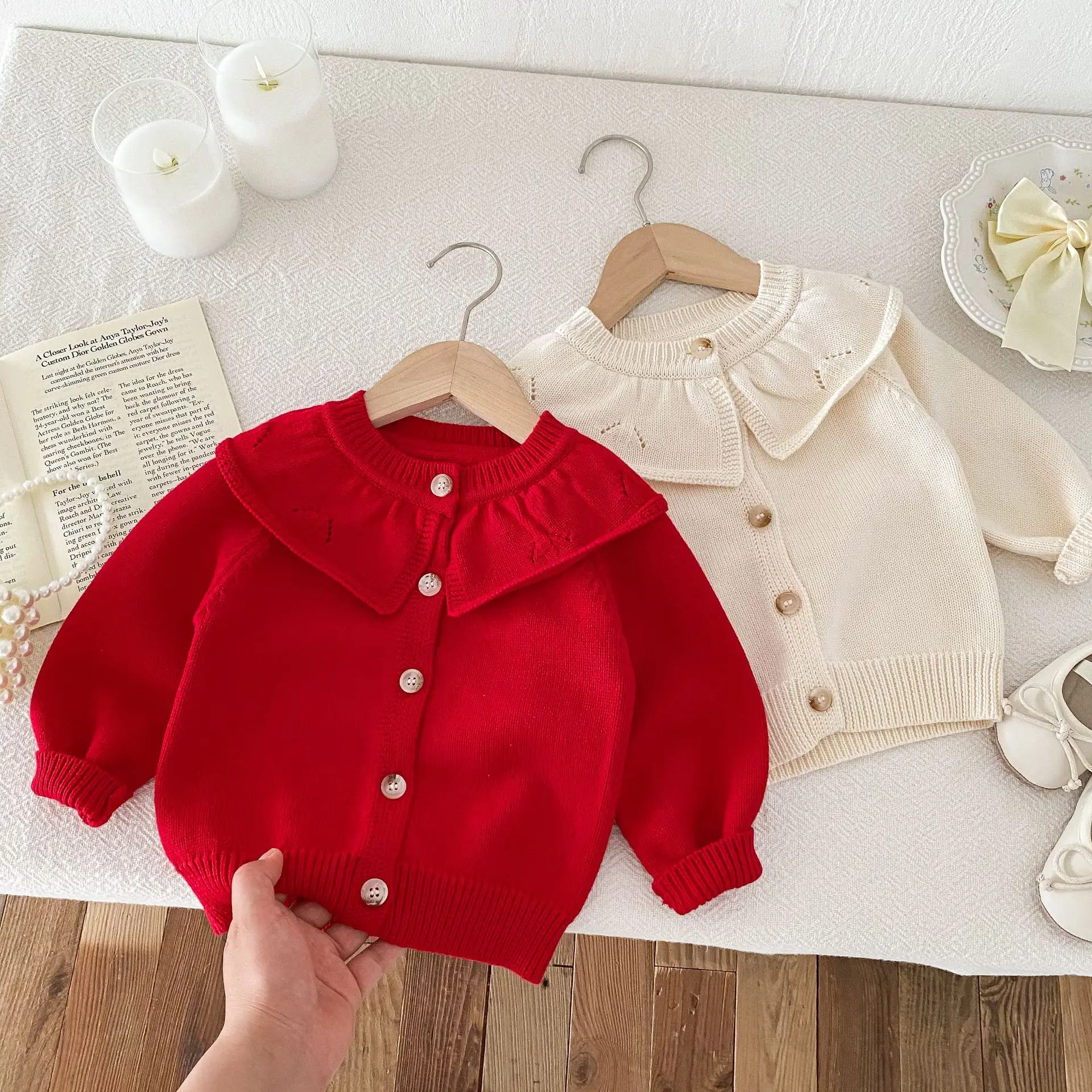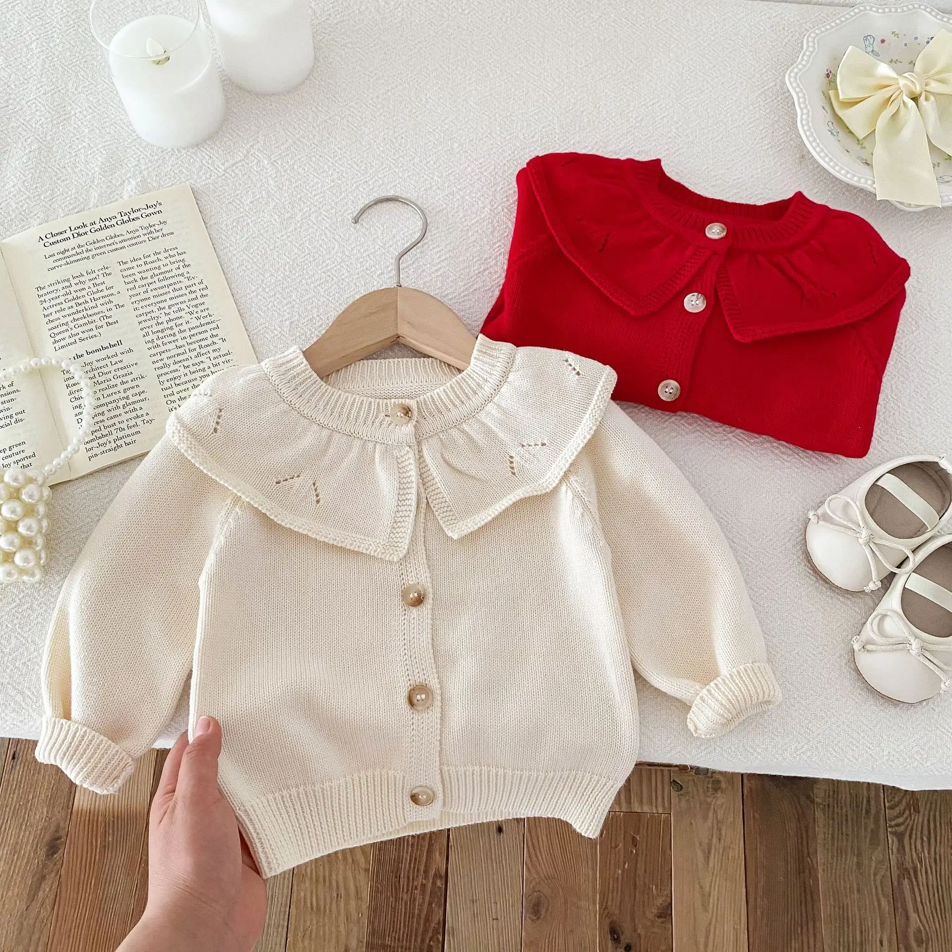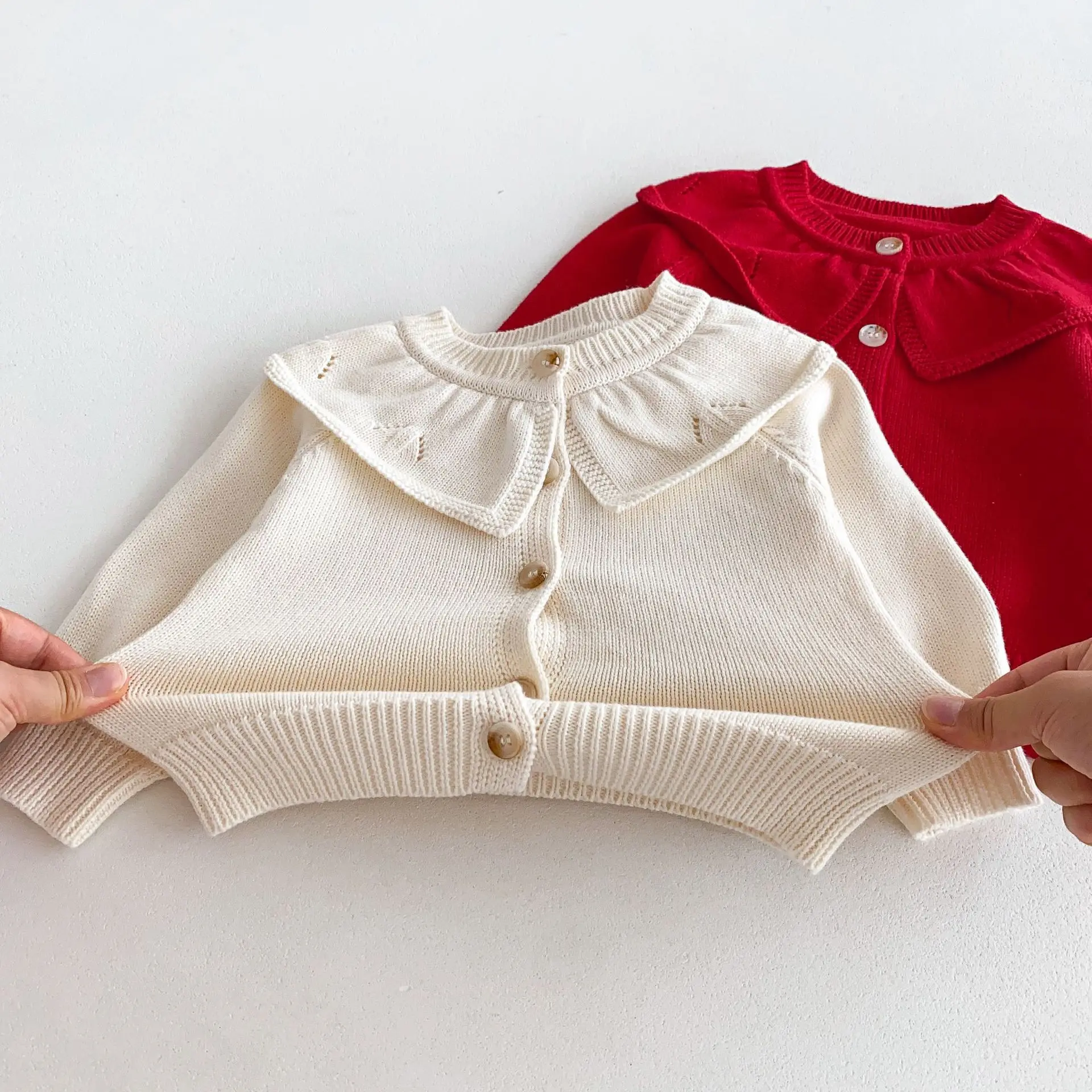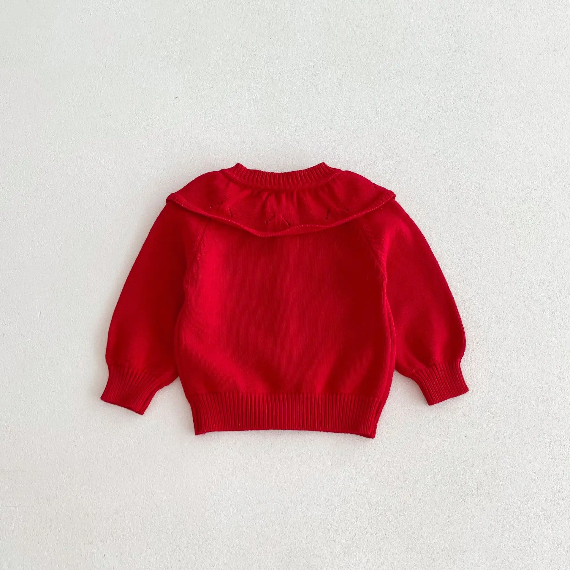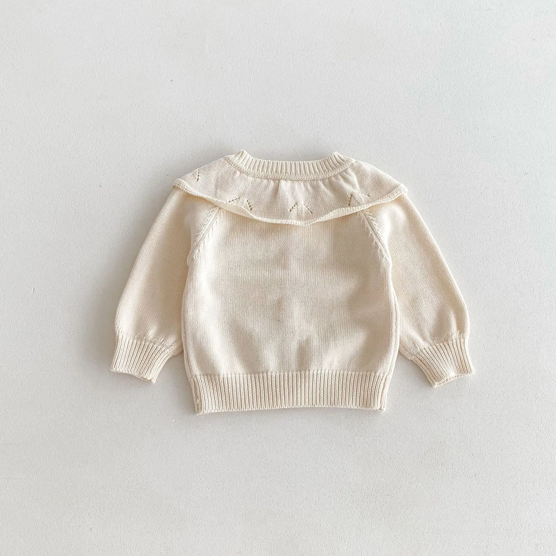 #キッズカーディガン #ニットジャケット #襟付き #フリルカラー #子供服 #カジュアルスタイル #おしゃれキッズ #ニットウェア