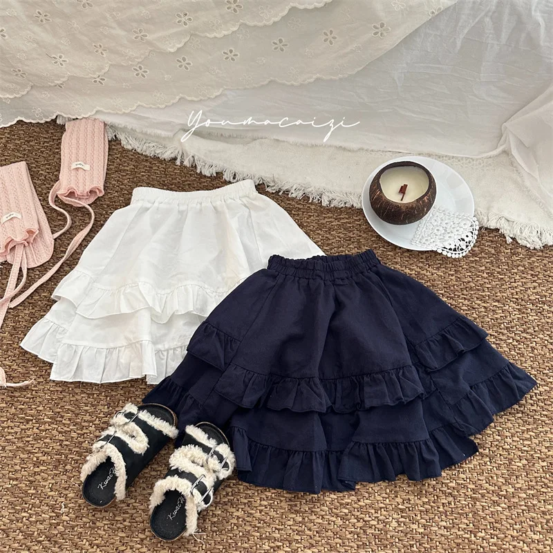 ティアードフリルが重なったケーキスカートは、秋のキッズコーデにぴったりなアイテムです。2カラー展開で、シンプルながらも華やかな印象を与えるデザイン。韓国風スタイルのスカートは、おしゃれなカジュアルコーデに最適で、動きやすさも兼ね備えています。