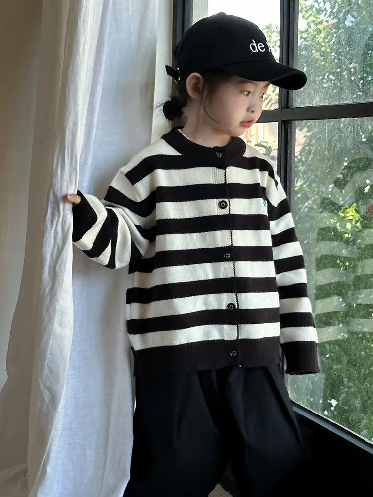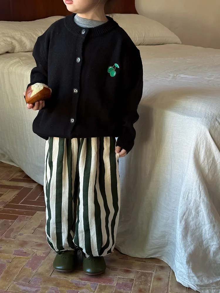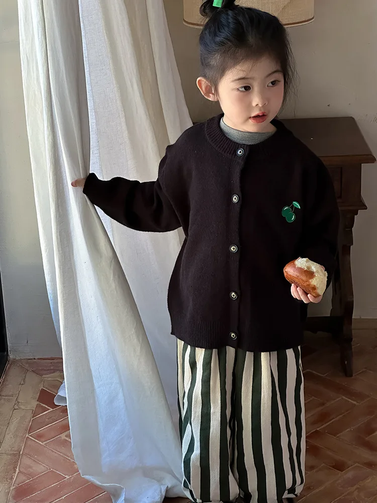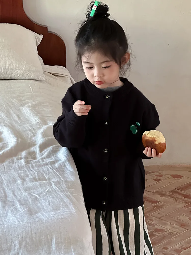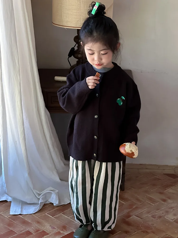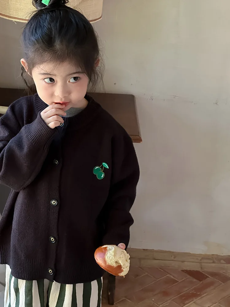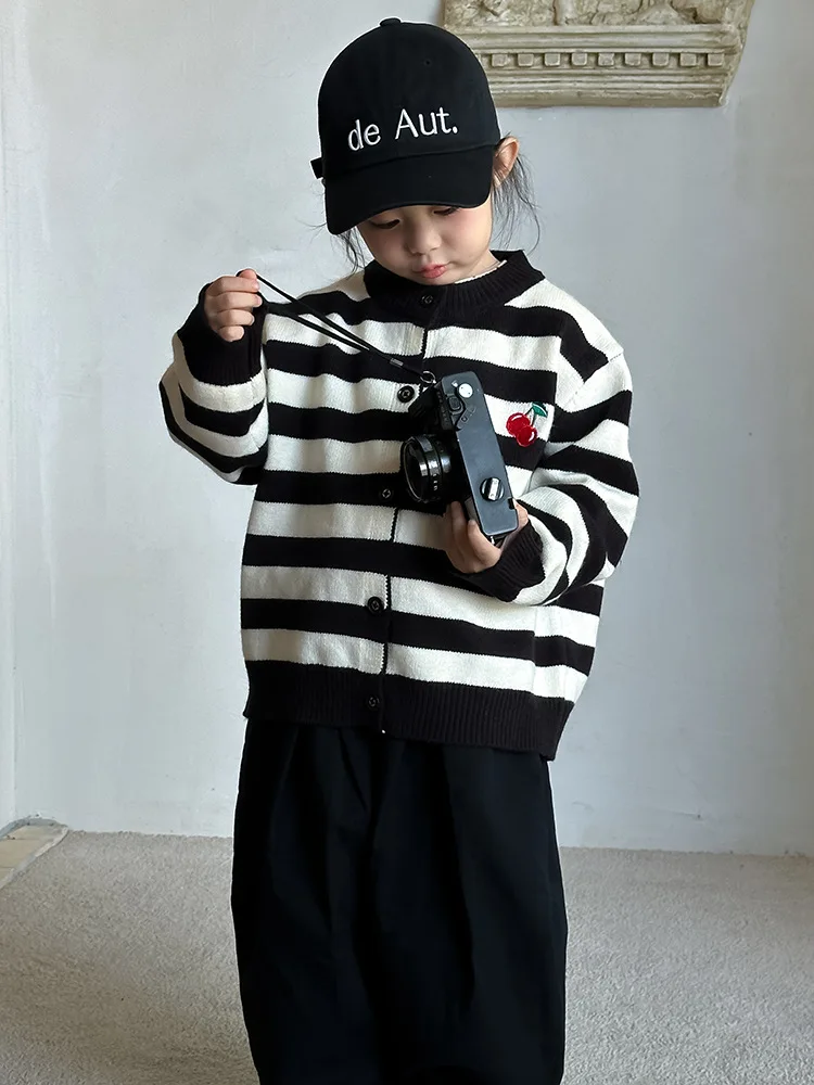 #キッズカーディガン #チェリー刺繍 #ボーダーデザイン #ニットジャケット #カジュアルファッション #子供服