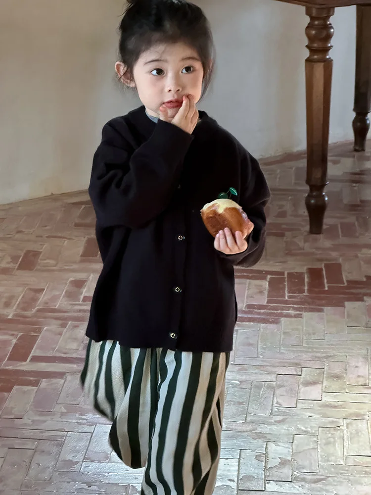 キュートなチェリー刺繍がアクセントのキッズカーディガンは、ボーダーと無地の2デザインから選べるおしゃれな一着です。柔らかいニット素材で仕立てられており、肌触りも抜群。シンプルなスタイルに程よい可愛らしさをプラスするデザインで、どんなコーディネートにもマッチします。前開き仕様なので、着脱も簡単。季節の変わり目にぴったりのアイテムとして、デイリーユースにおすすめです。