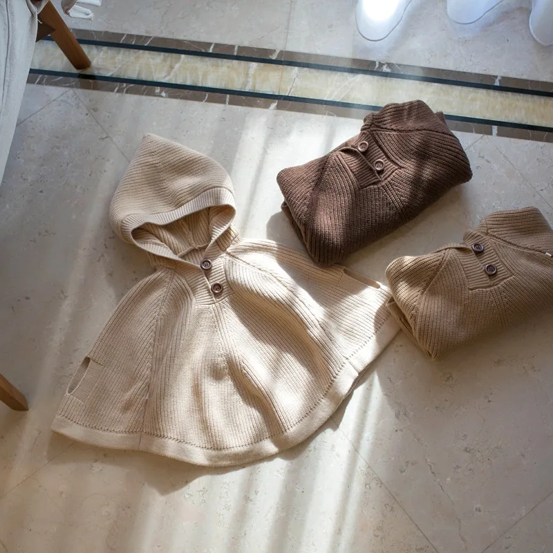 キッズアウター ニットフーディポンチョクロークコート 3カラー【mh0006919】
