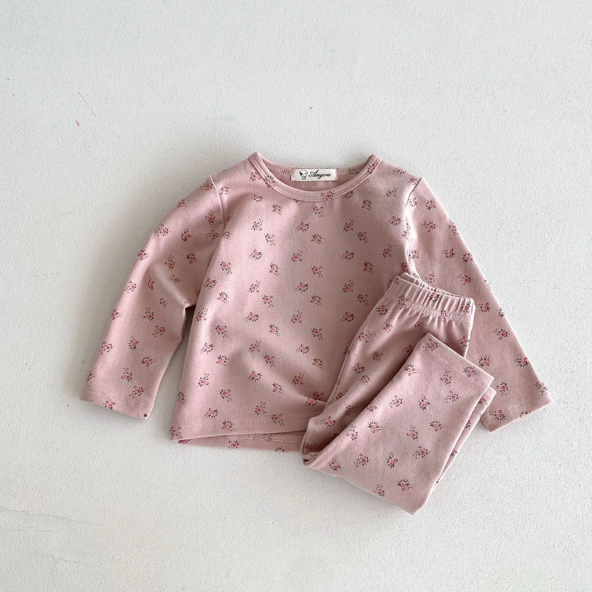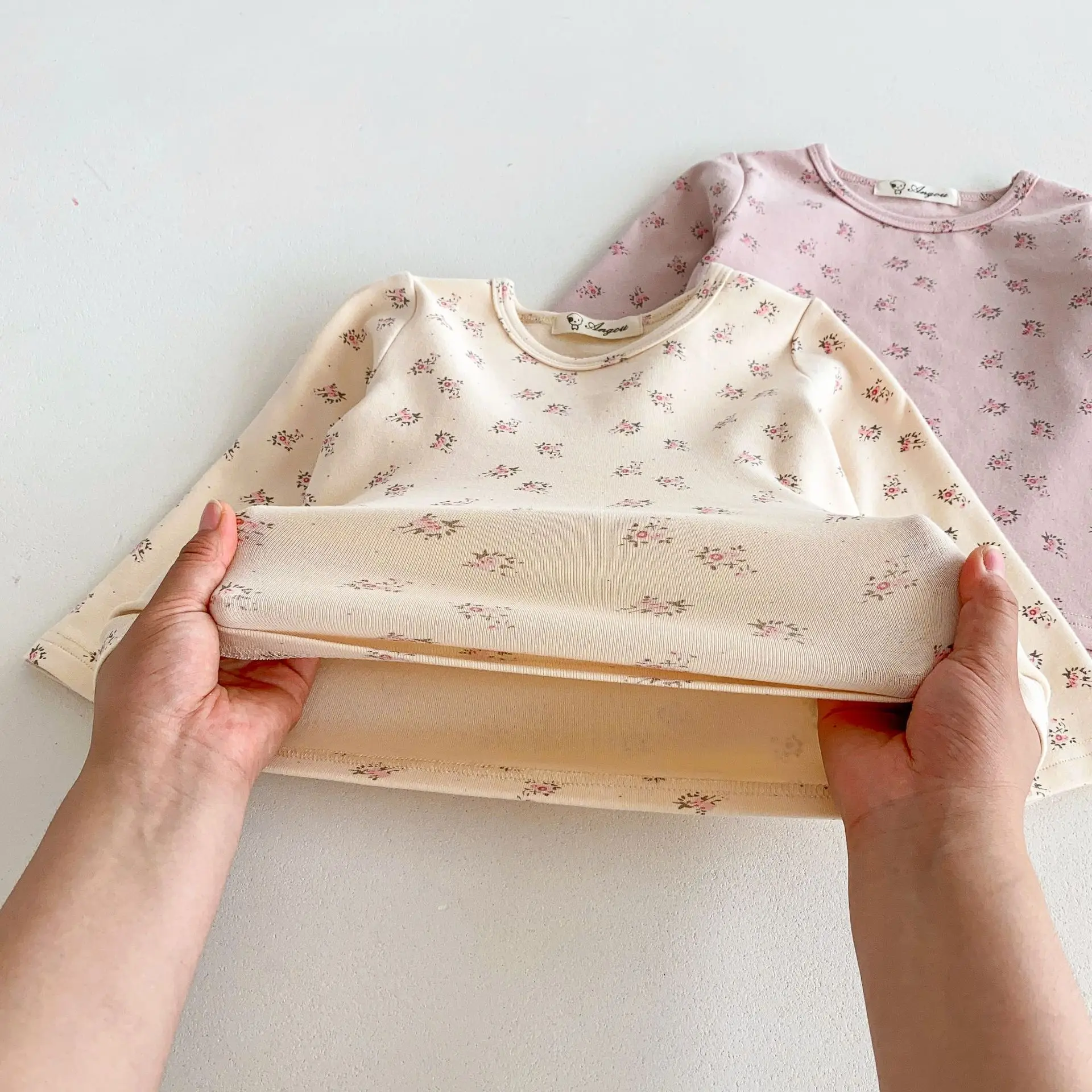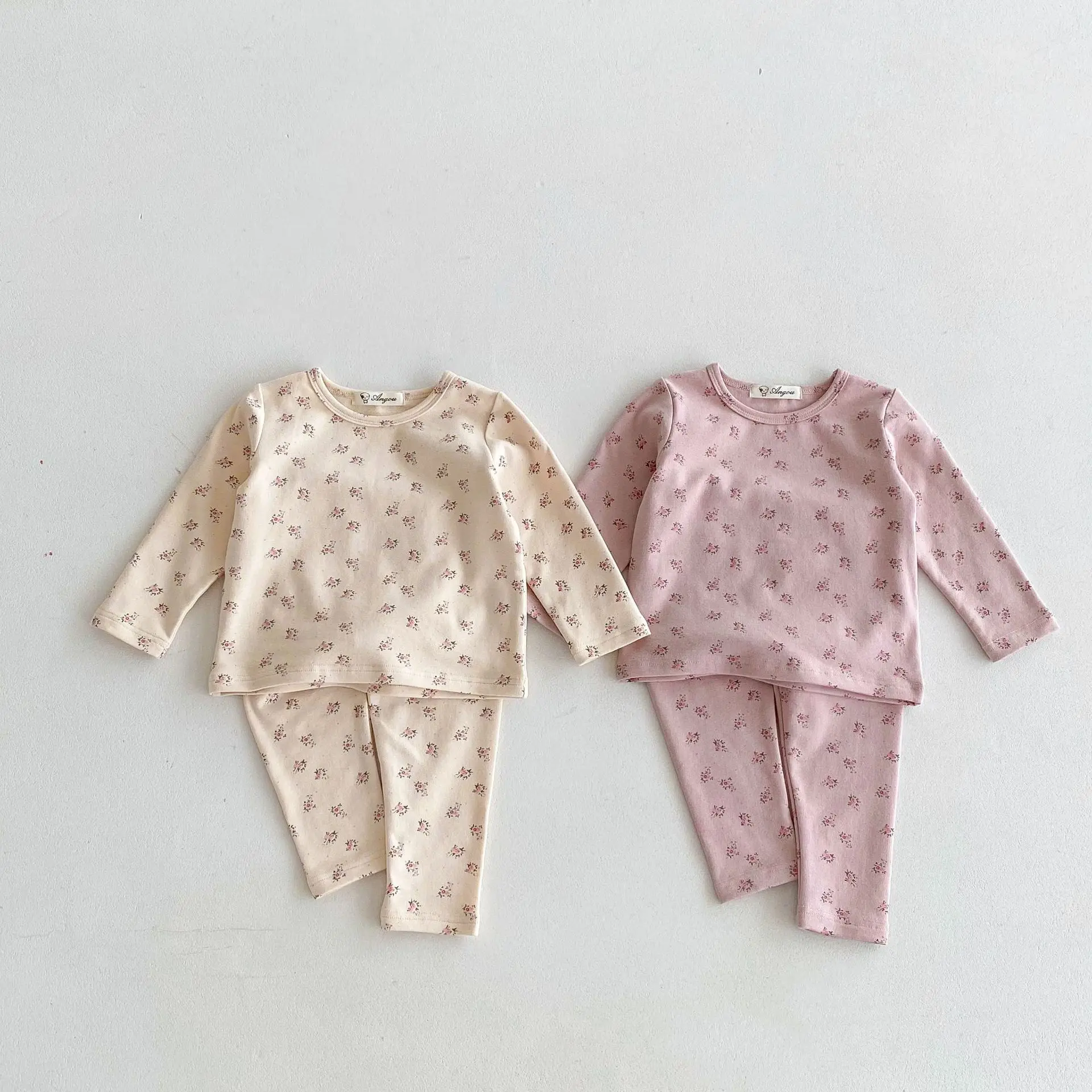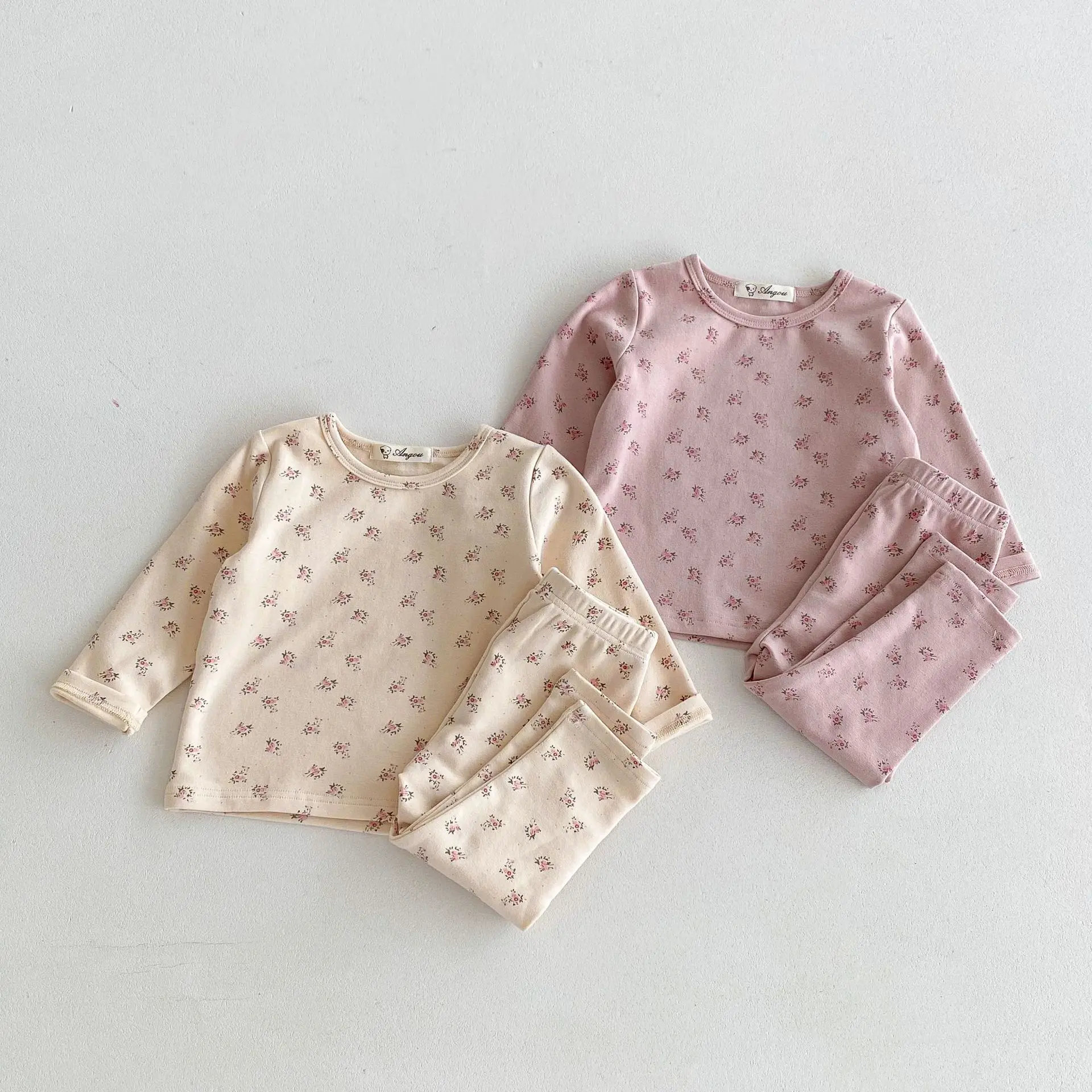 キッズパジャマセット フラワー小花柄プリント長袖Tシャツ+ロングパンツ 2カラー【mh0006974】