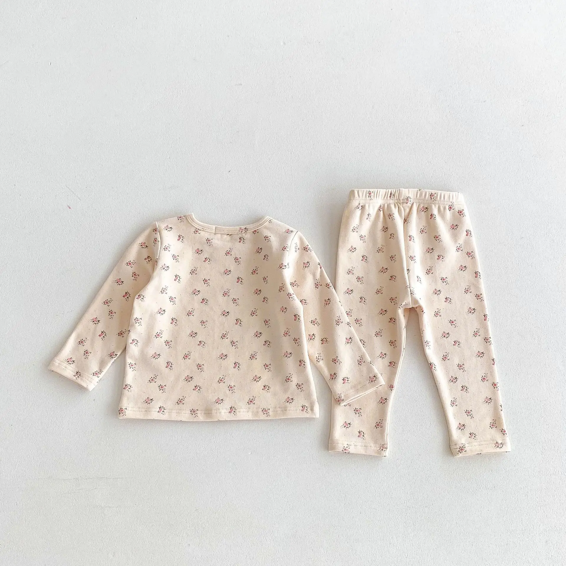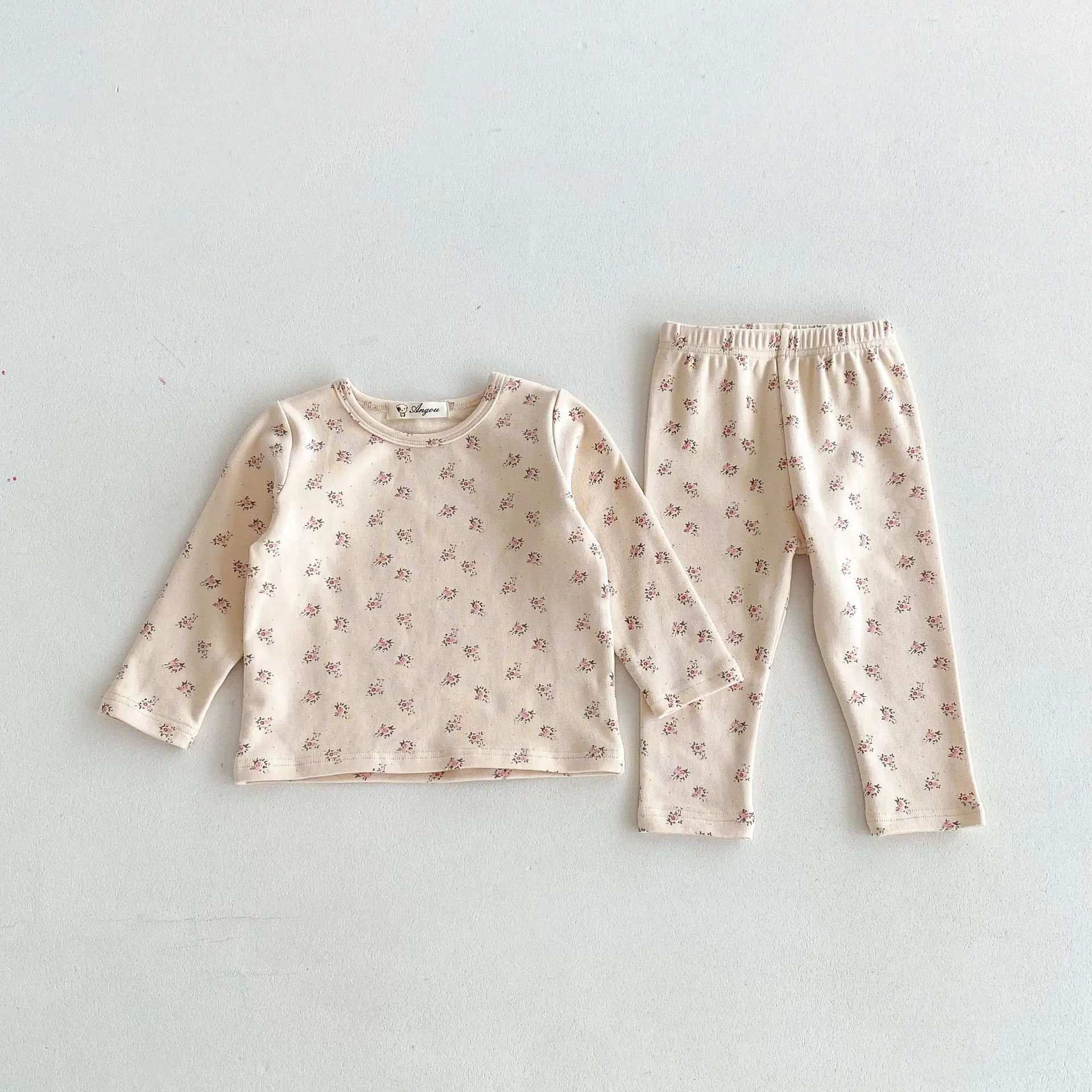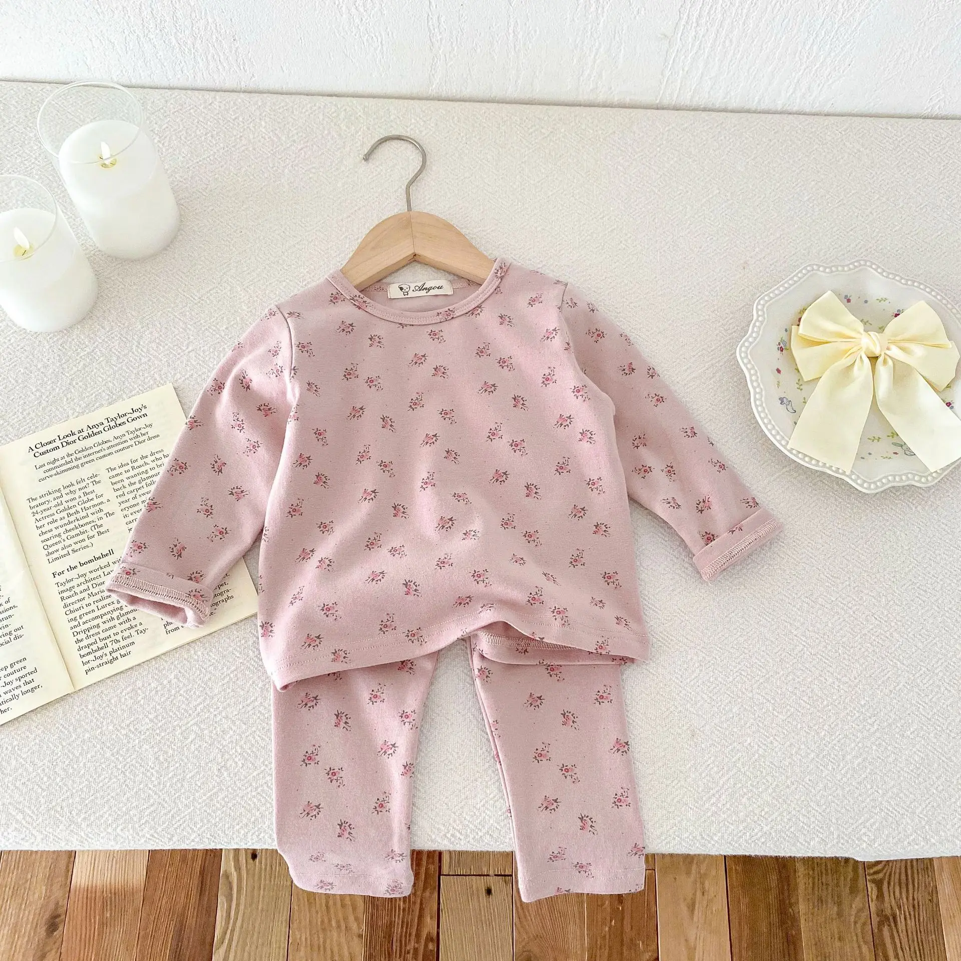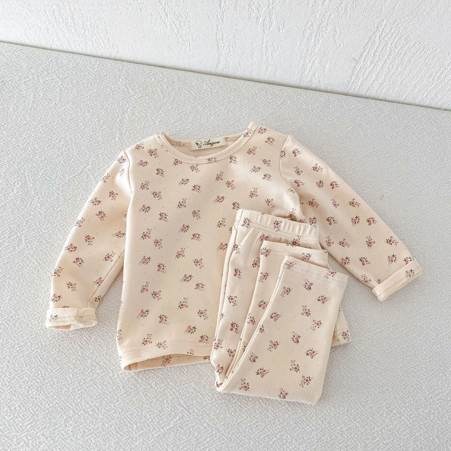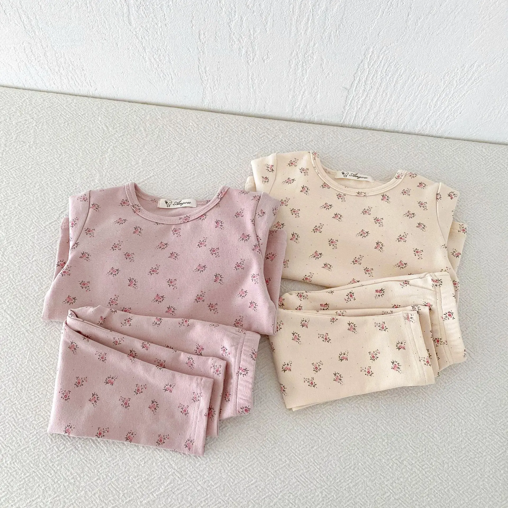 キッズパジャマセット フラワー小花柄プリント長袖Tシャツ+ロングパンツ 2カラー【mh0006974】