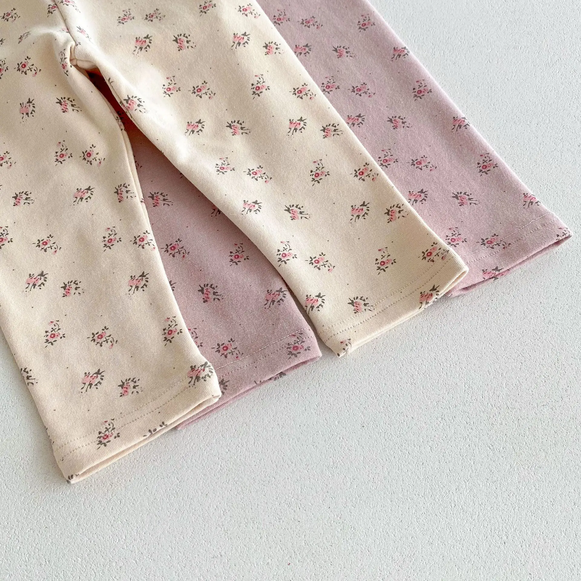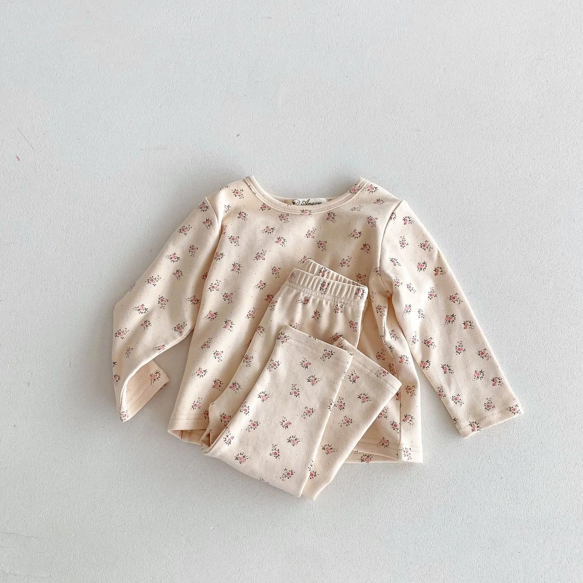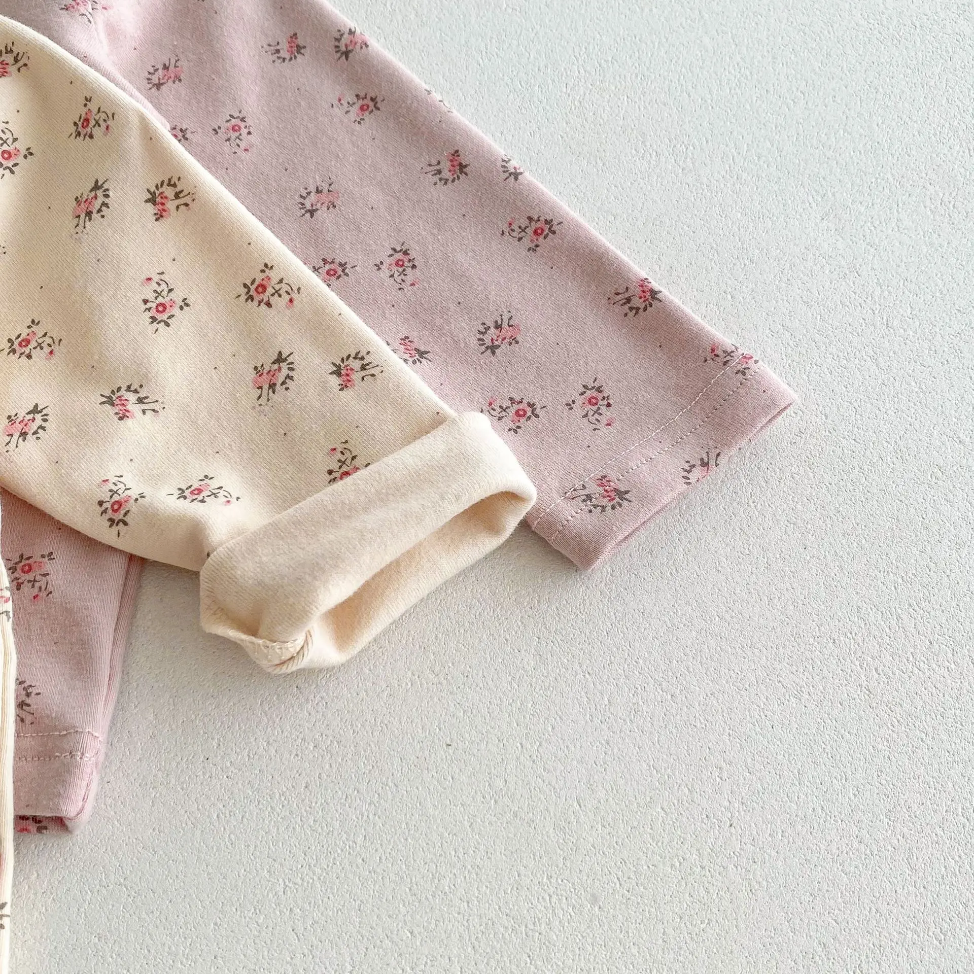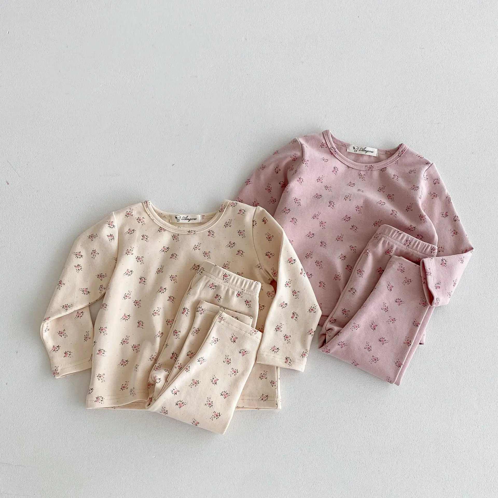 キッズパジャマセット フラワー小花柄プリント長袖Tシャツ+ロングパンツ 2カラー【mh0006974】