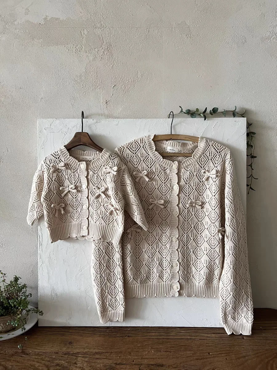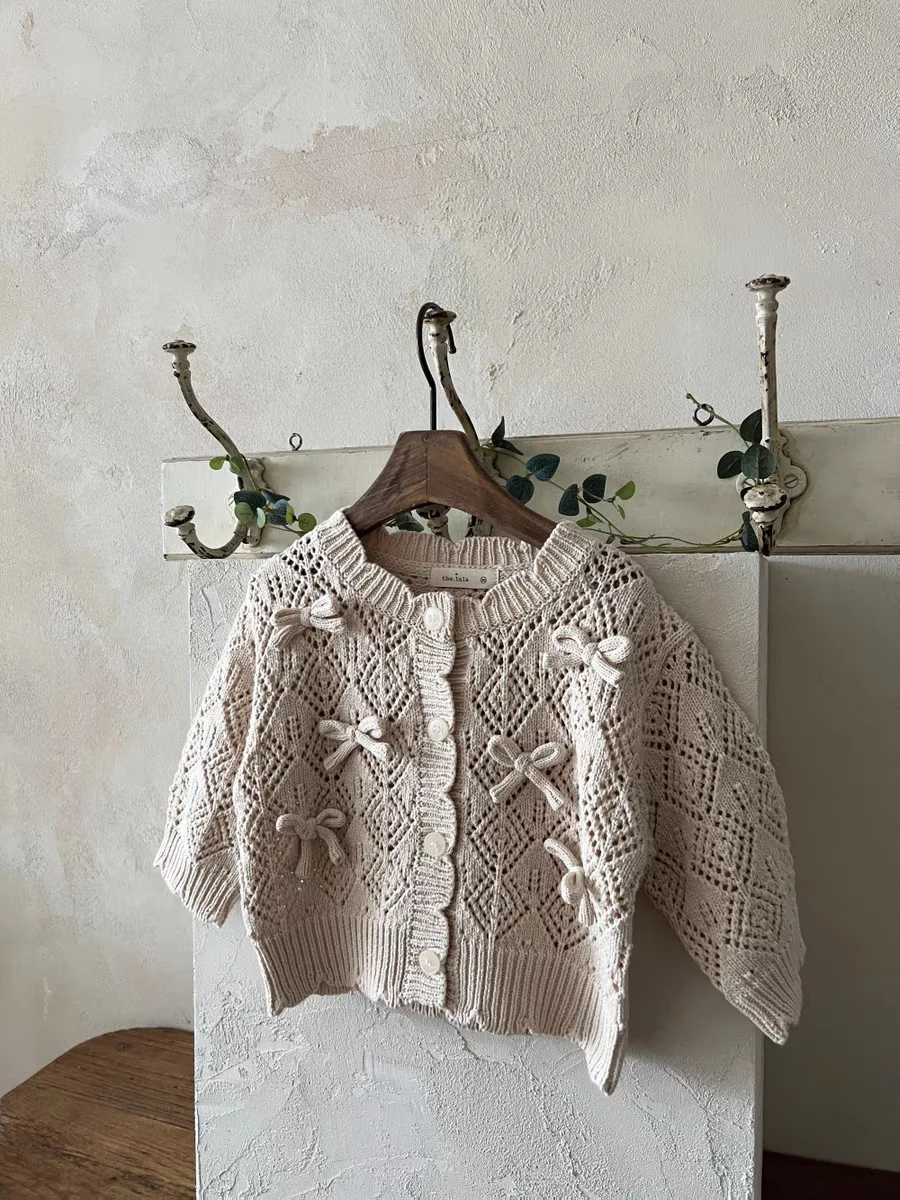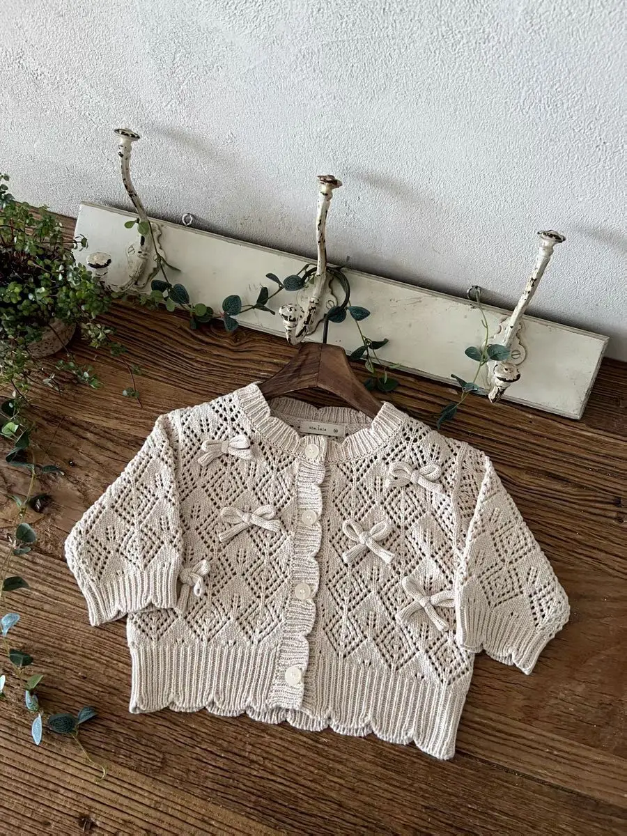 #ベビーカーディガン #レースニット #リボンカーディガン #透け感ニット #長袖コート #コットンカーディガン #おしゃれベビー服