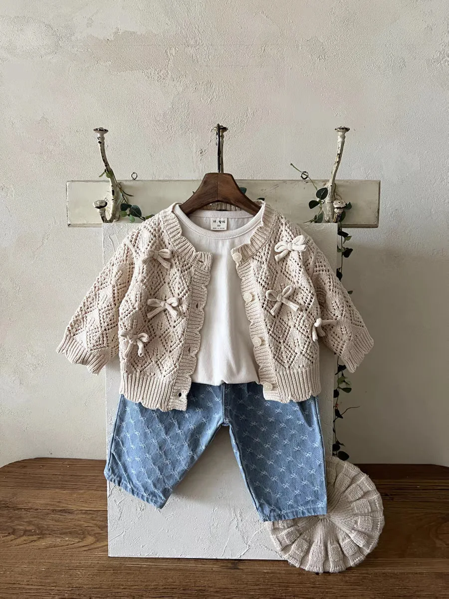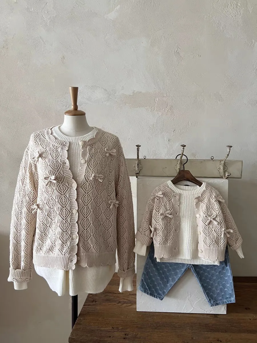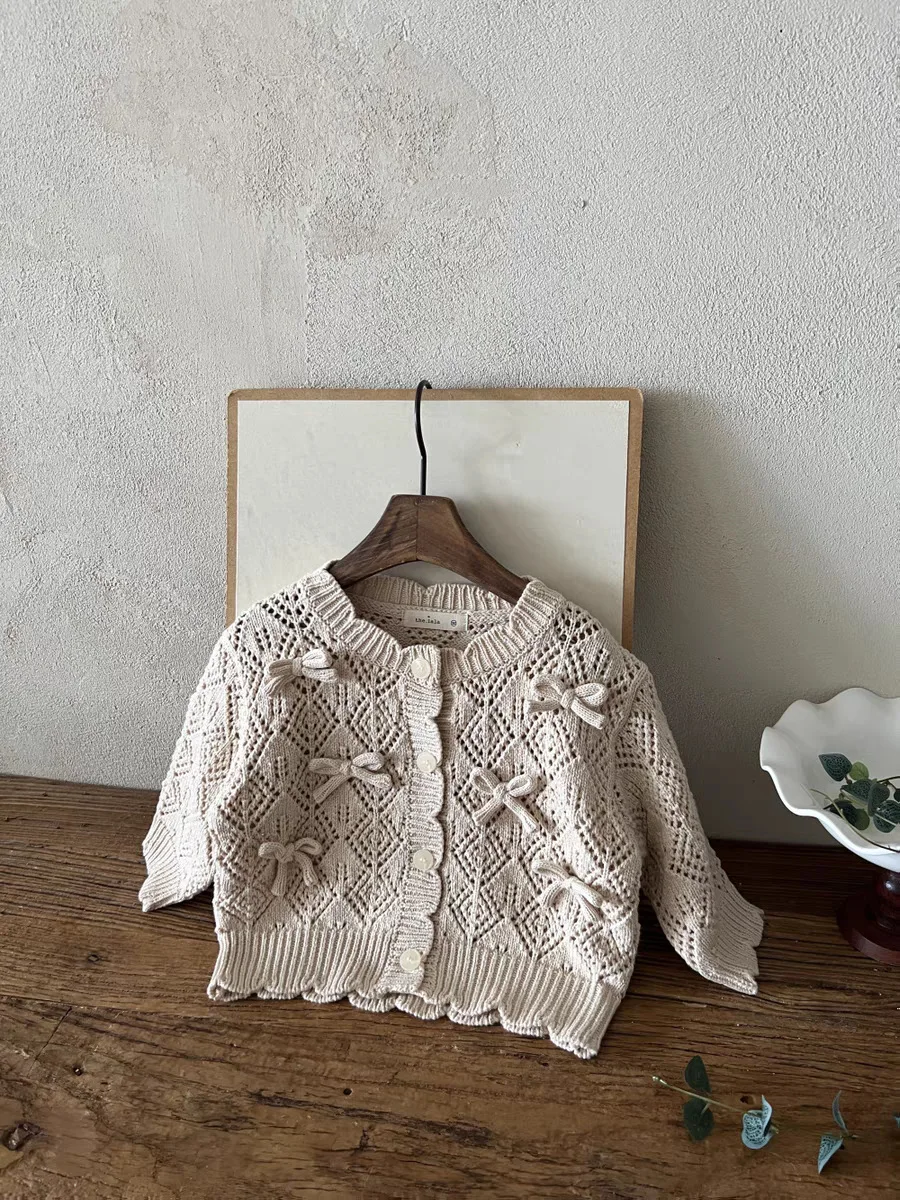 #ベビーカーディガン #レースニット #リボンカーディガン #透け感ニット #長袖コート #コットンカーディガン #おしゃれベビー服