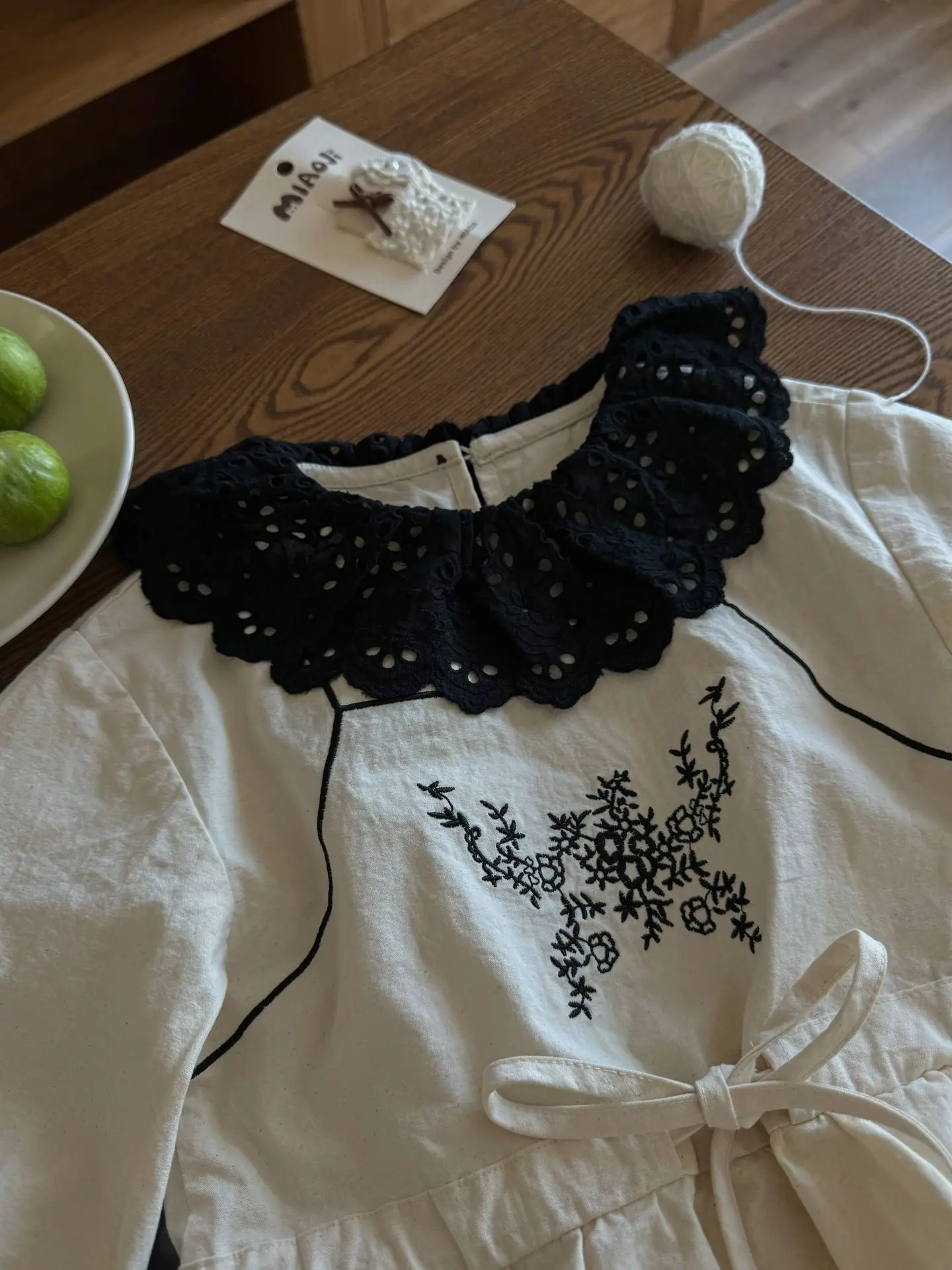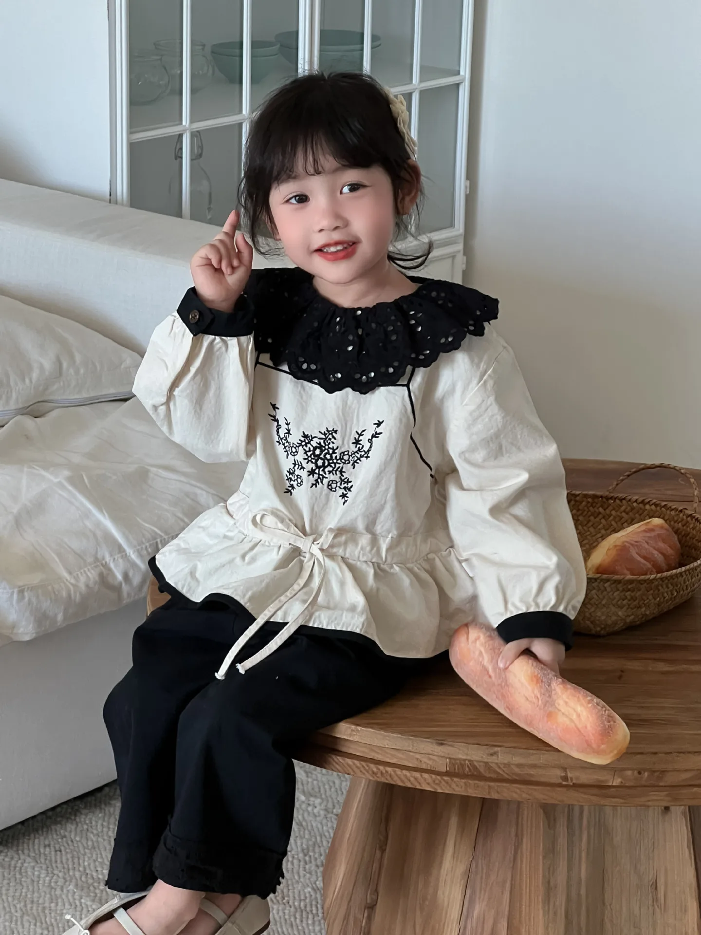 #キッズトップス #ラッフル襟 #フラワー刺繍 #チュニックブラウス #ロングフリルパンツ #子供服 #おしゃれ