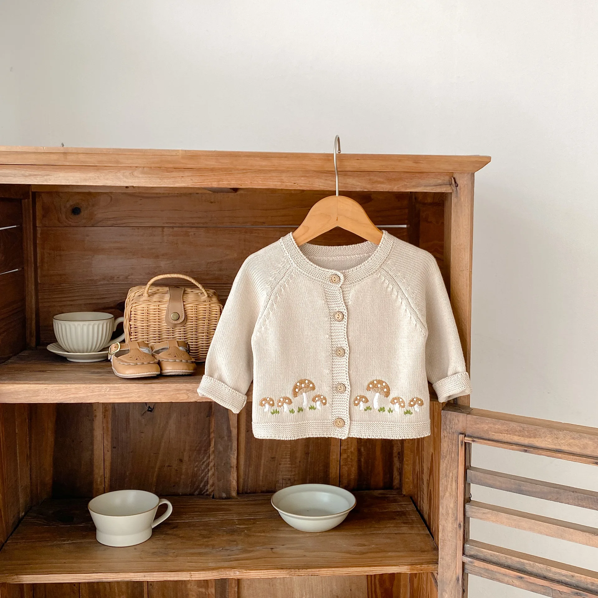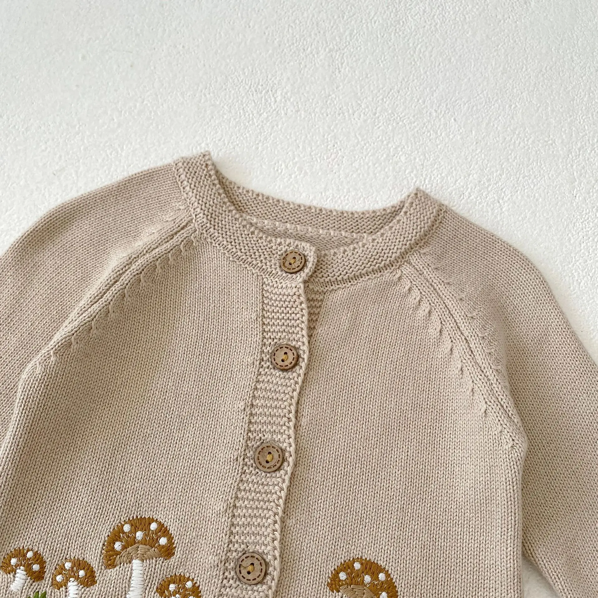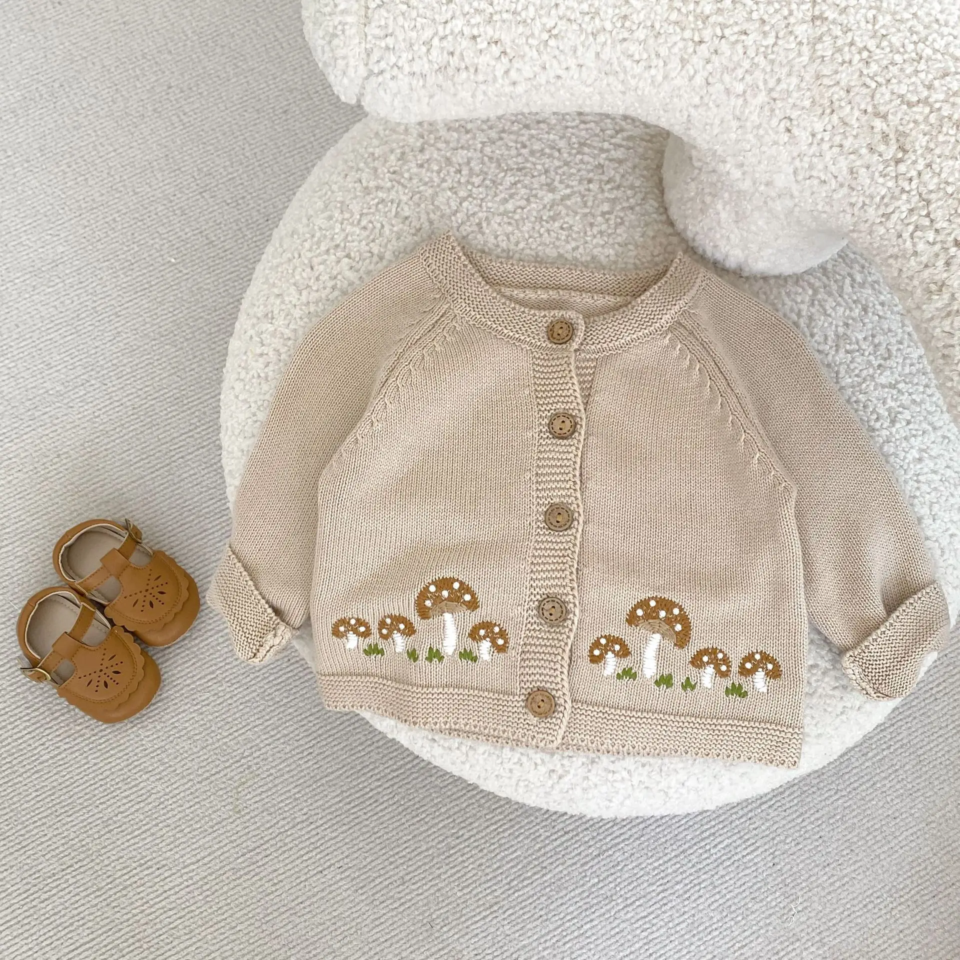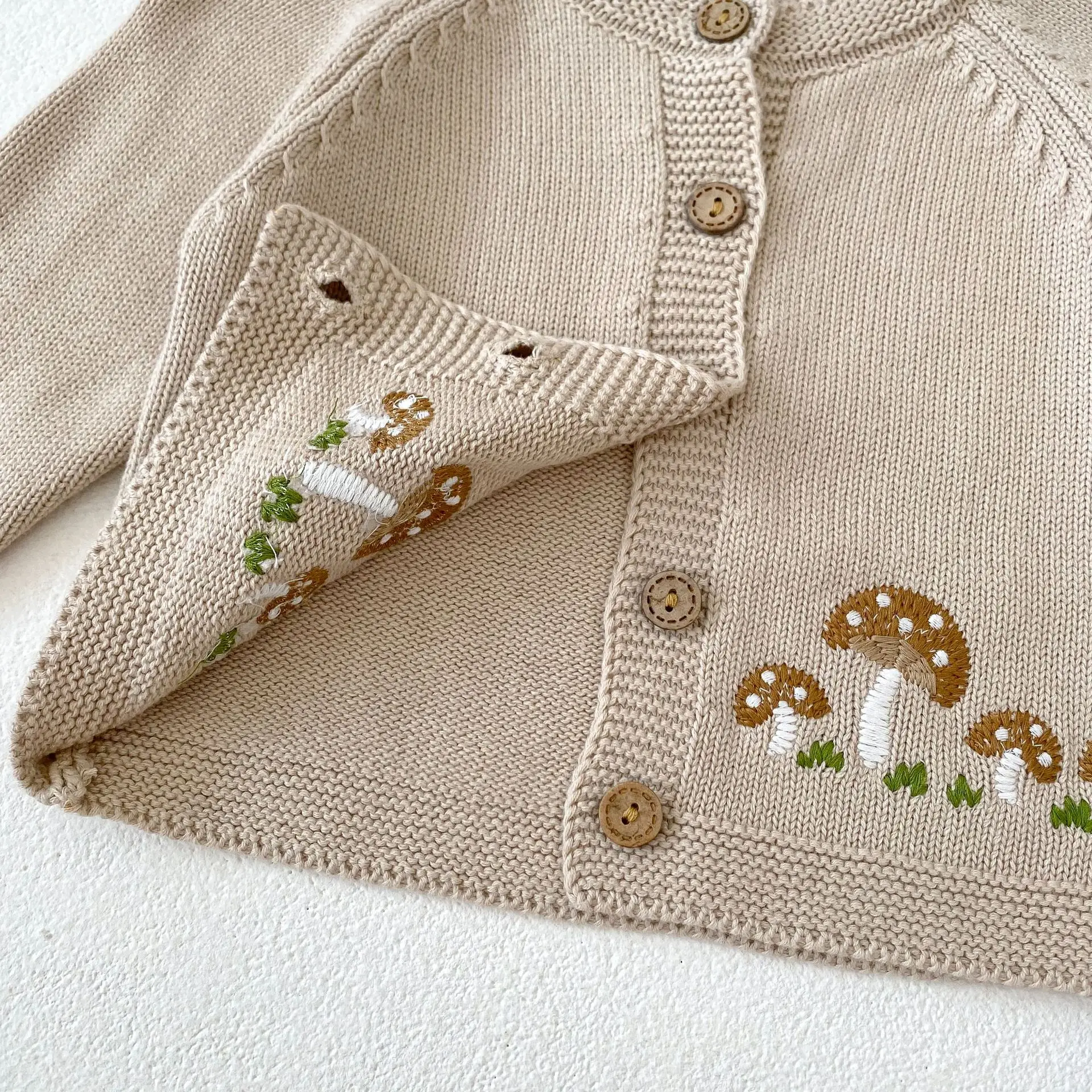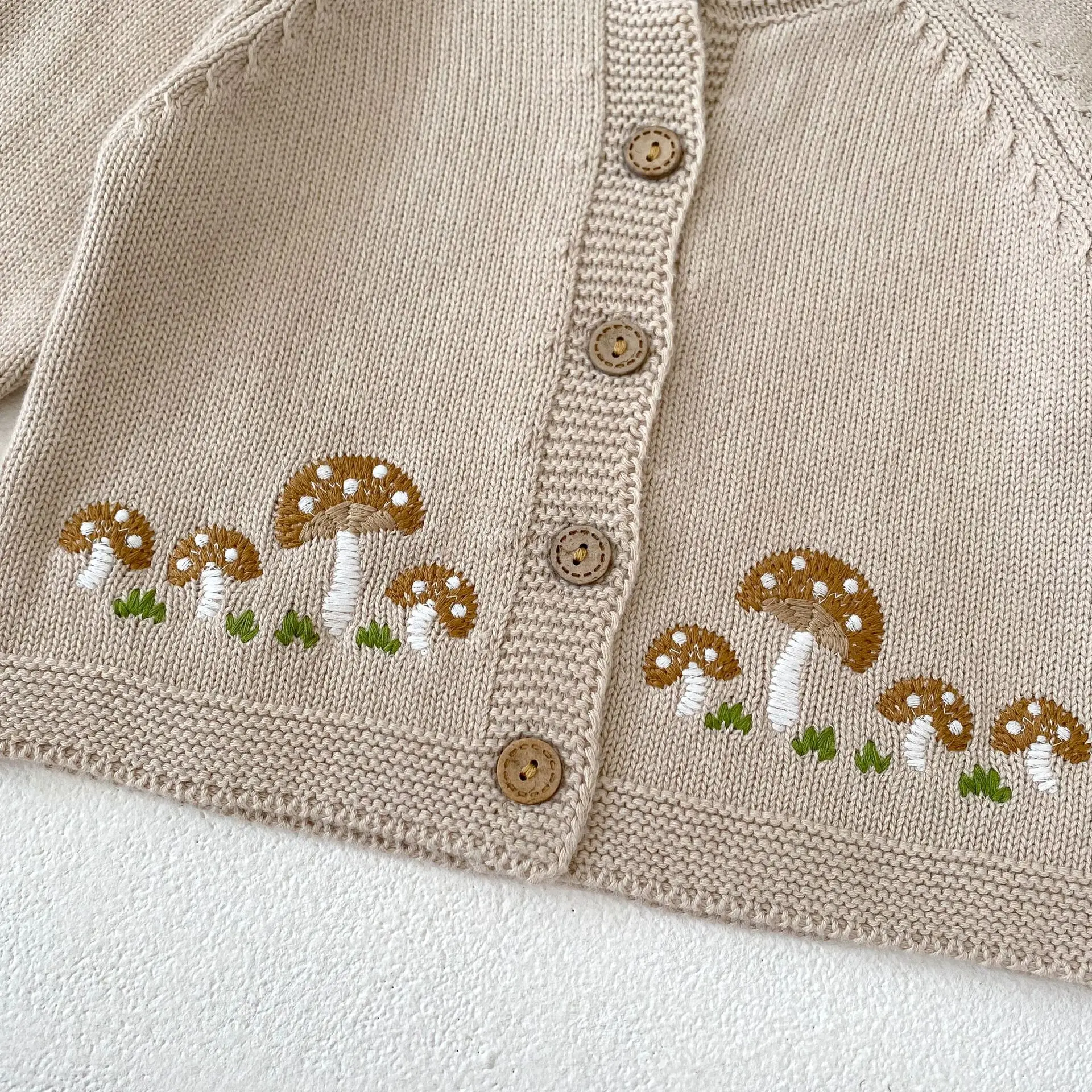 #ベビー服 #ベビーカーディガン #刺繍カーディガン #きのこ刺繍 #ニットジャケット #長袖カーディガン #カジュアルベビー服