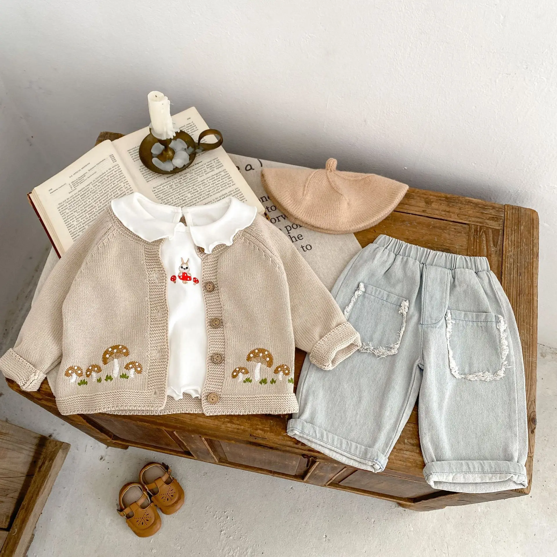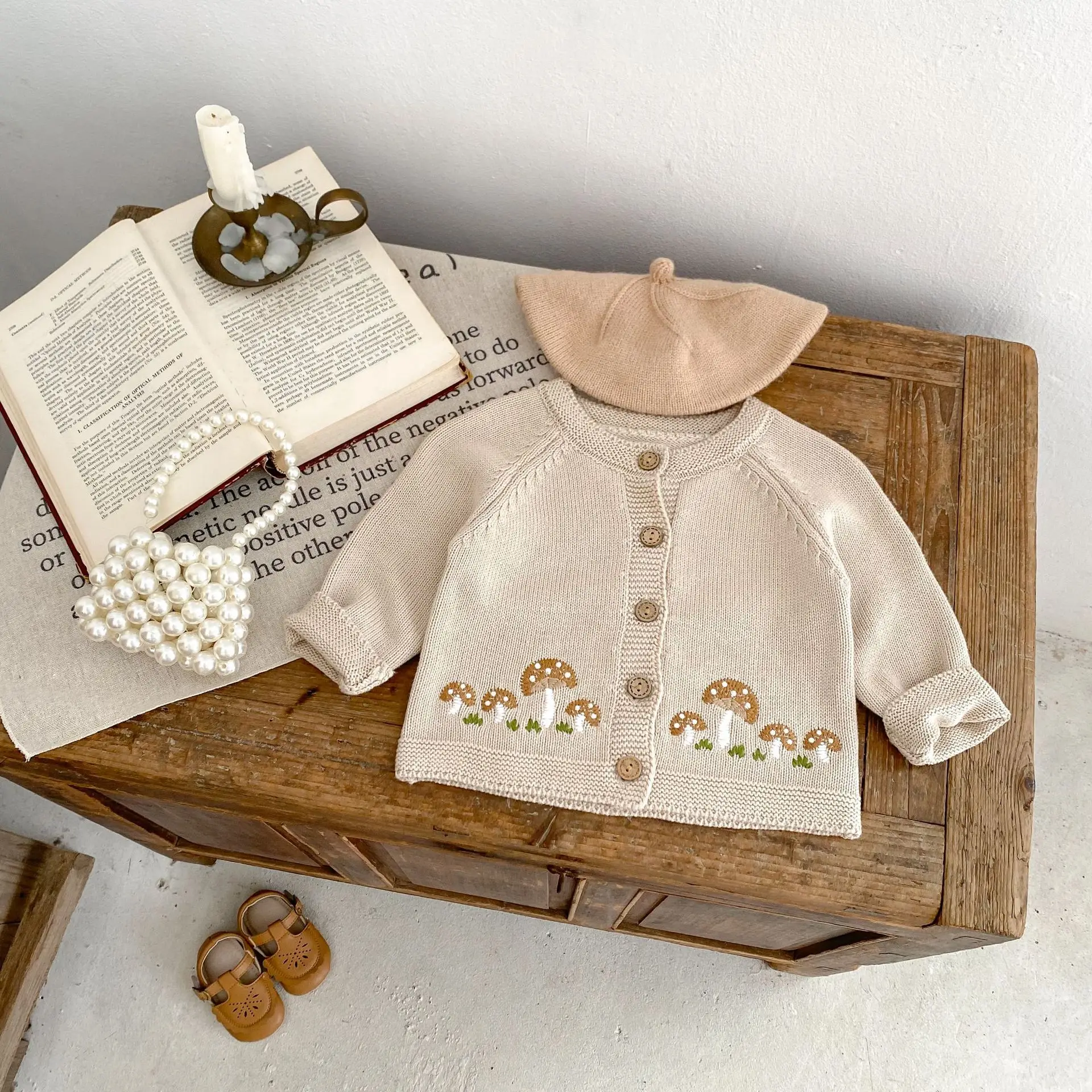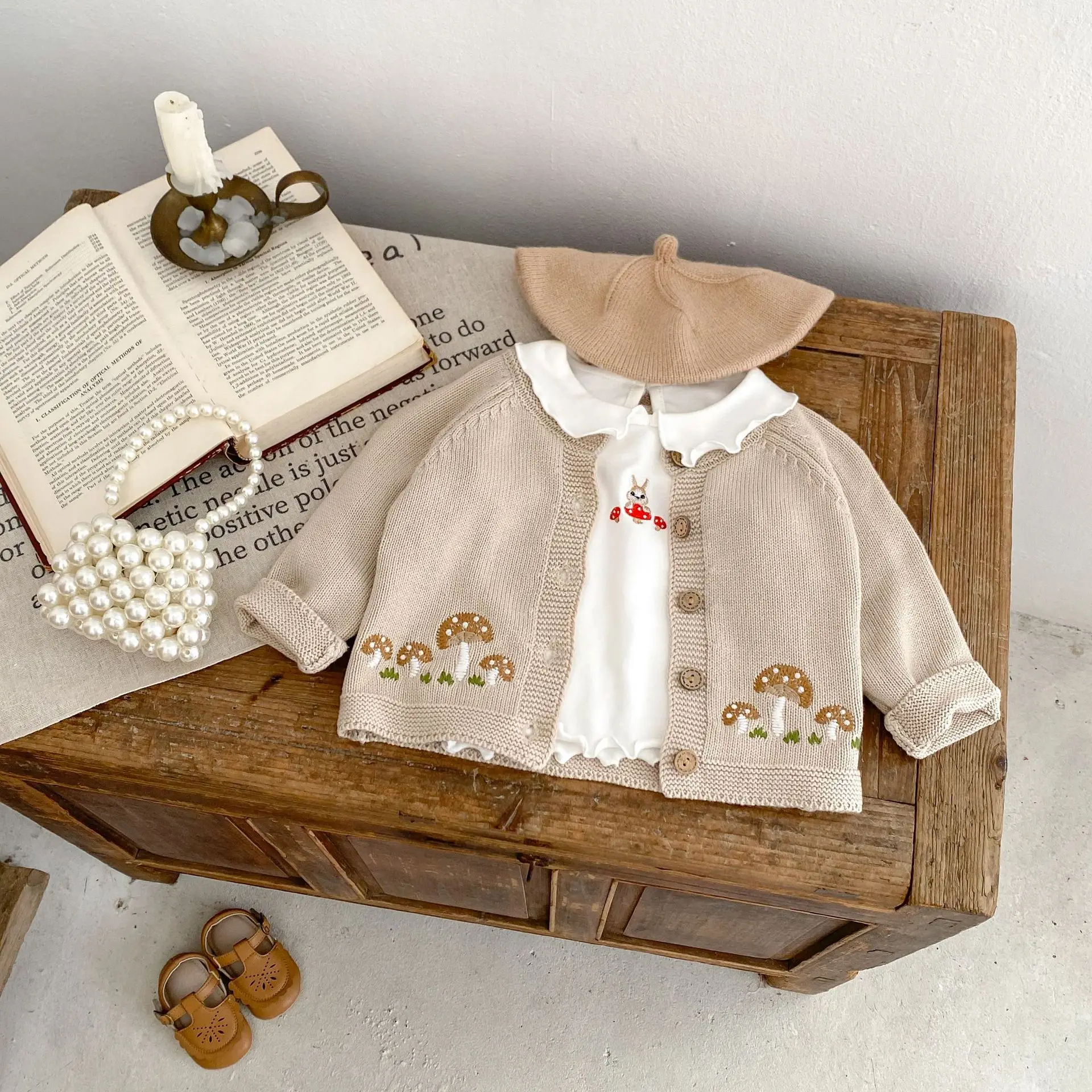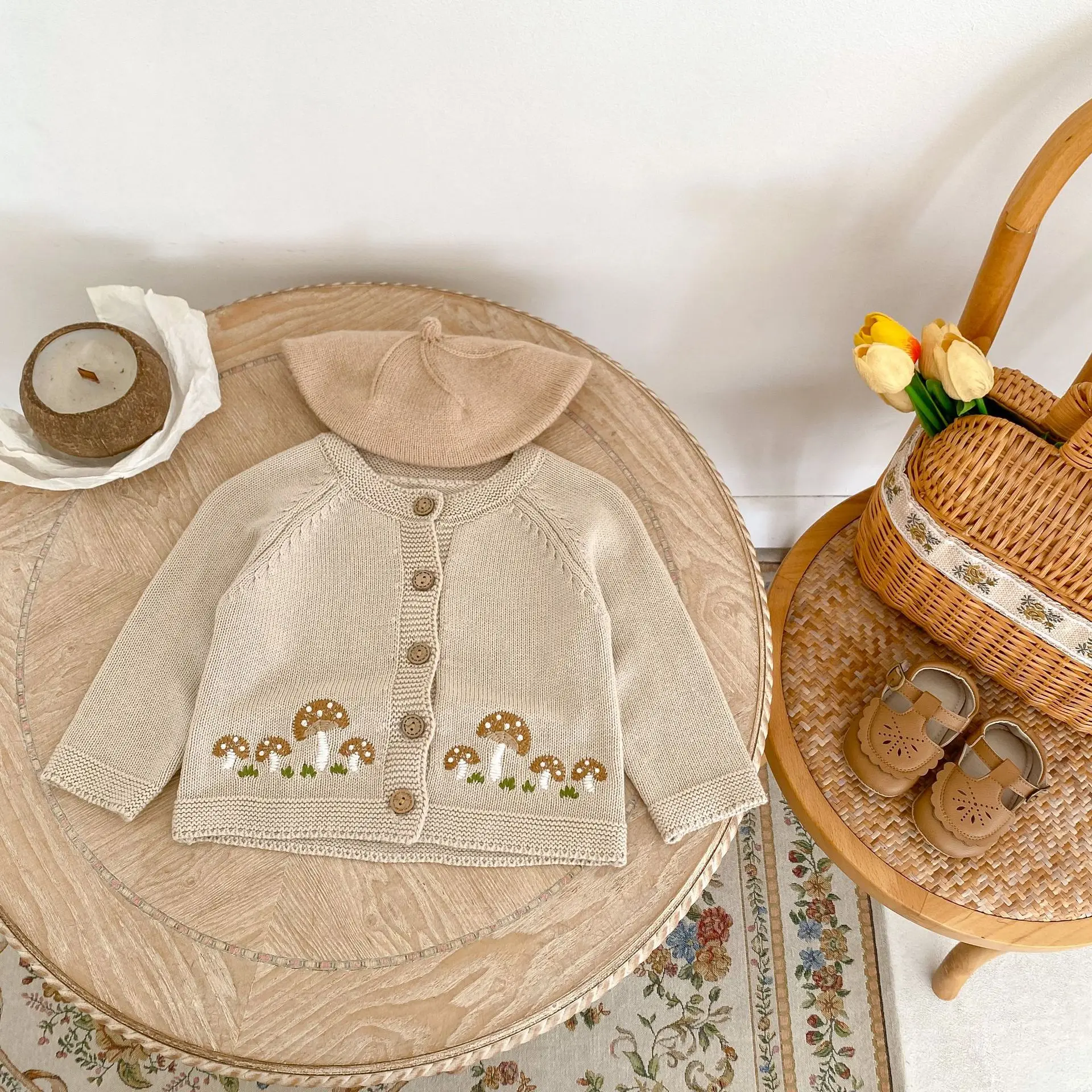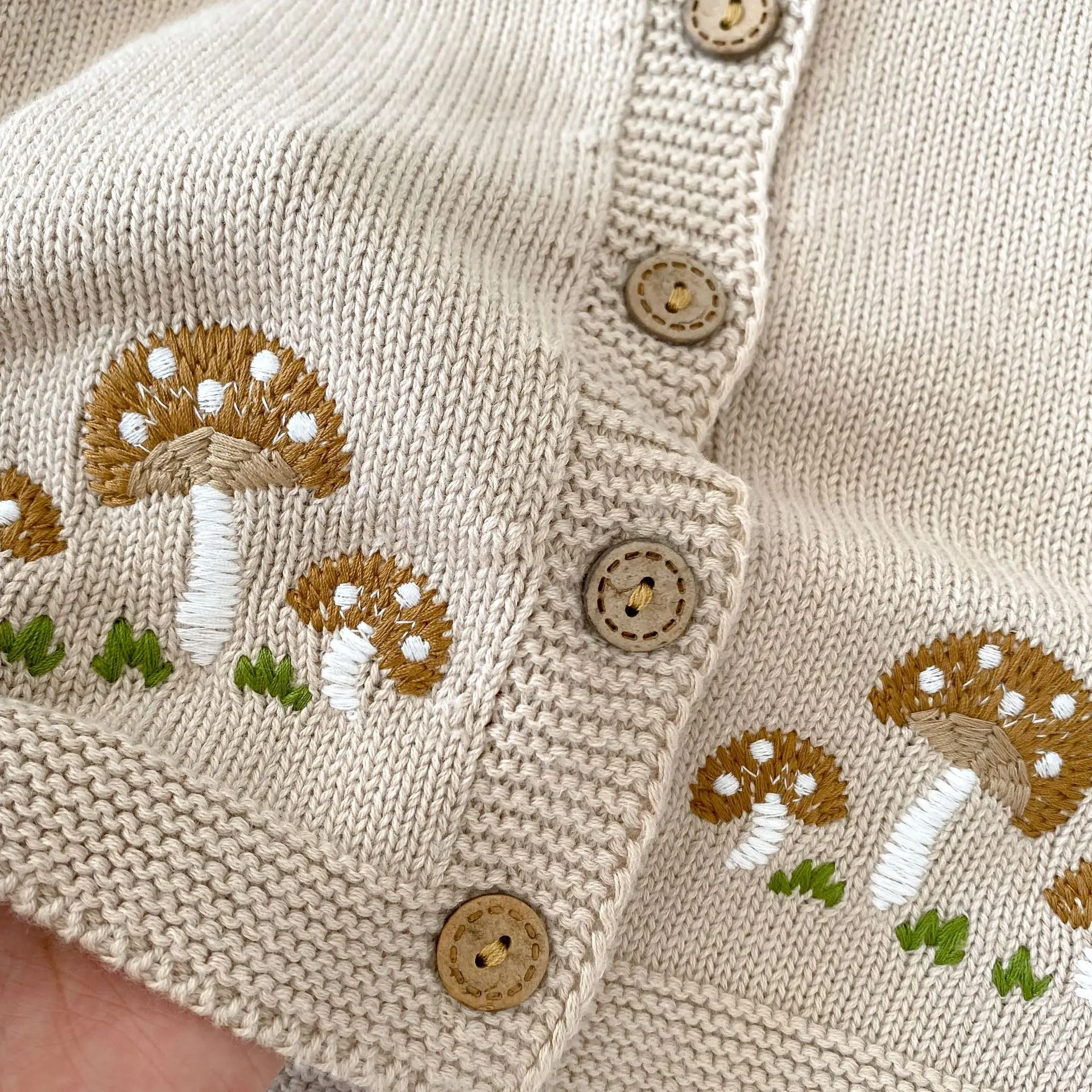 #ベビー服 #ベビーカーディガン #刺繍カーディガン #きのこ刺繍 #ニットジャケット #長袖カーディガン #カジュアルベビー服