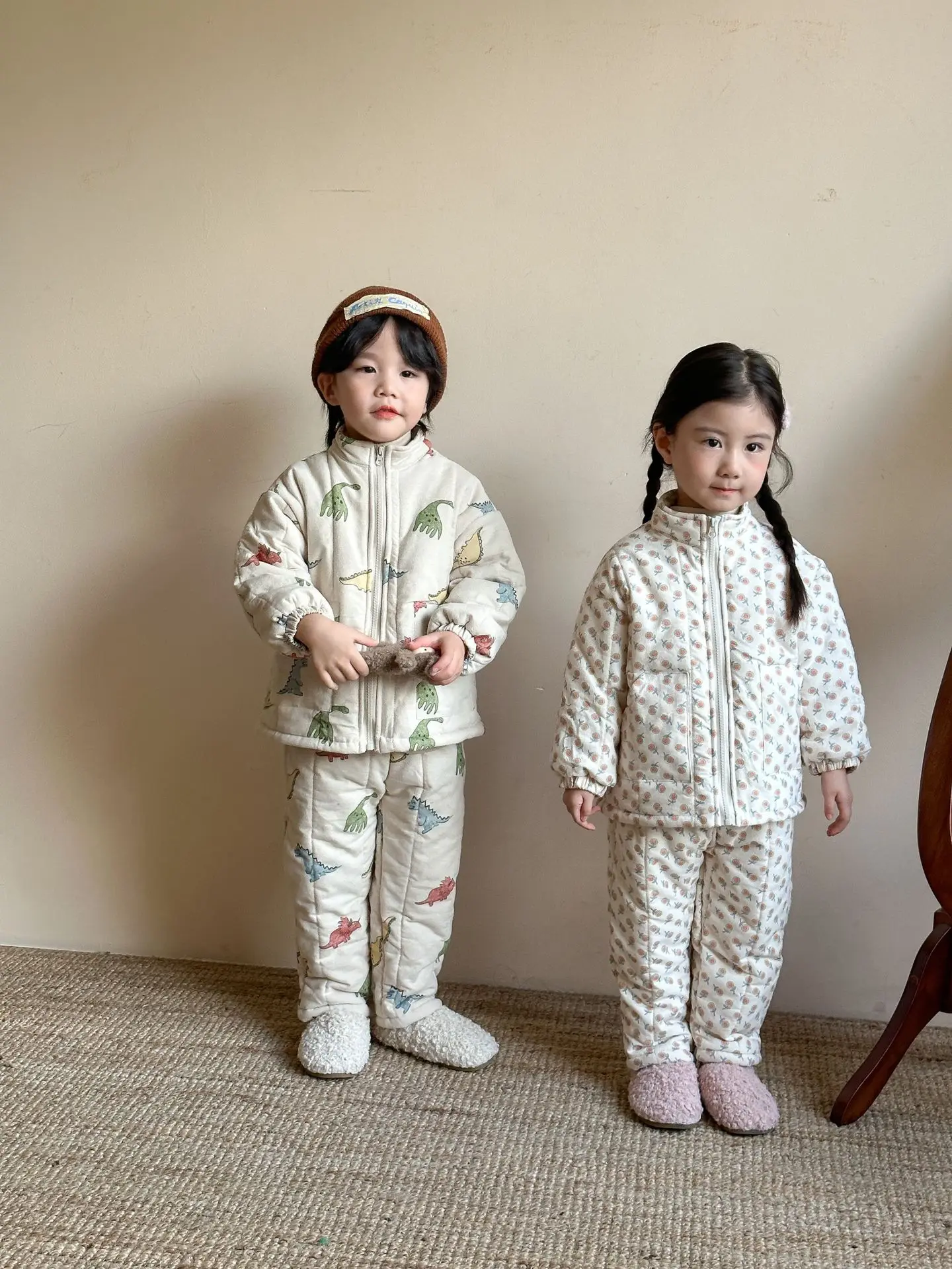 キッズセットアップ 2点セット 裏フリースジップアップジャケット+ロングパンツ 長袖パジャマセット ルームウェア【mh0007845】