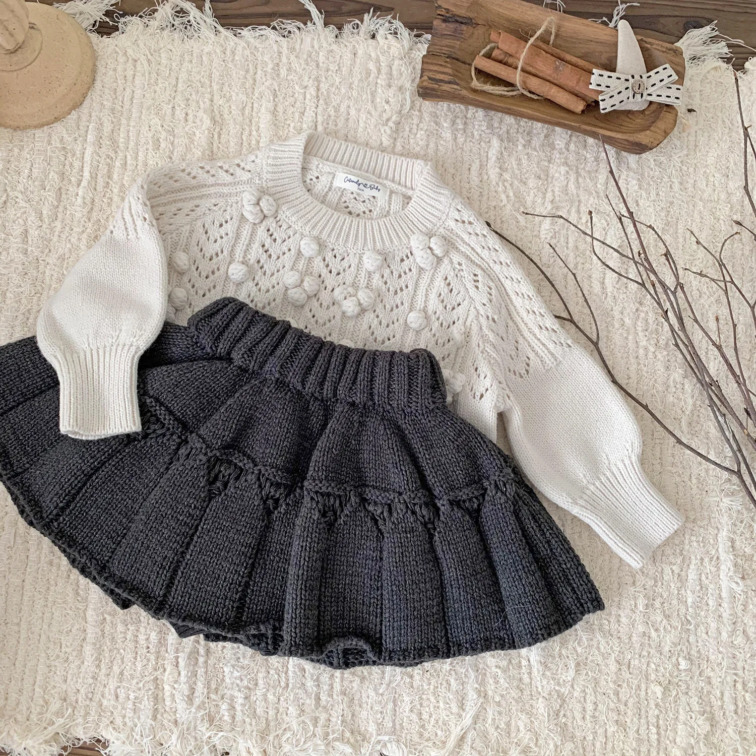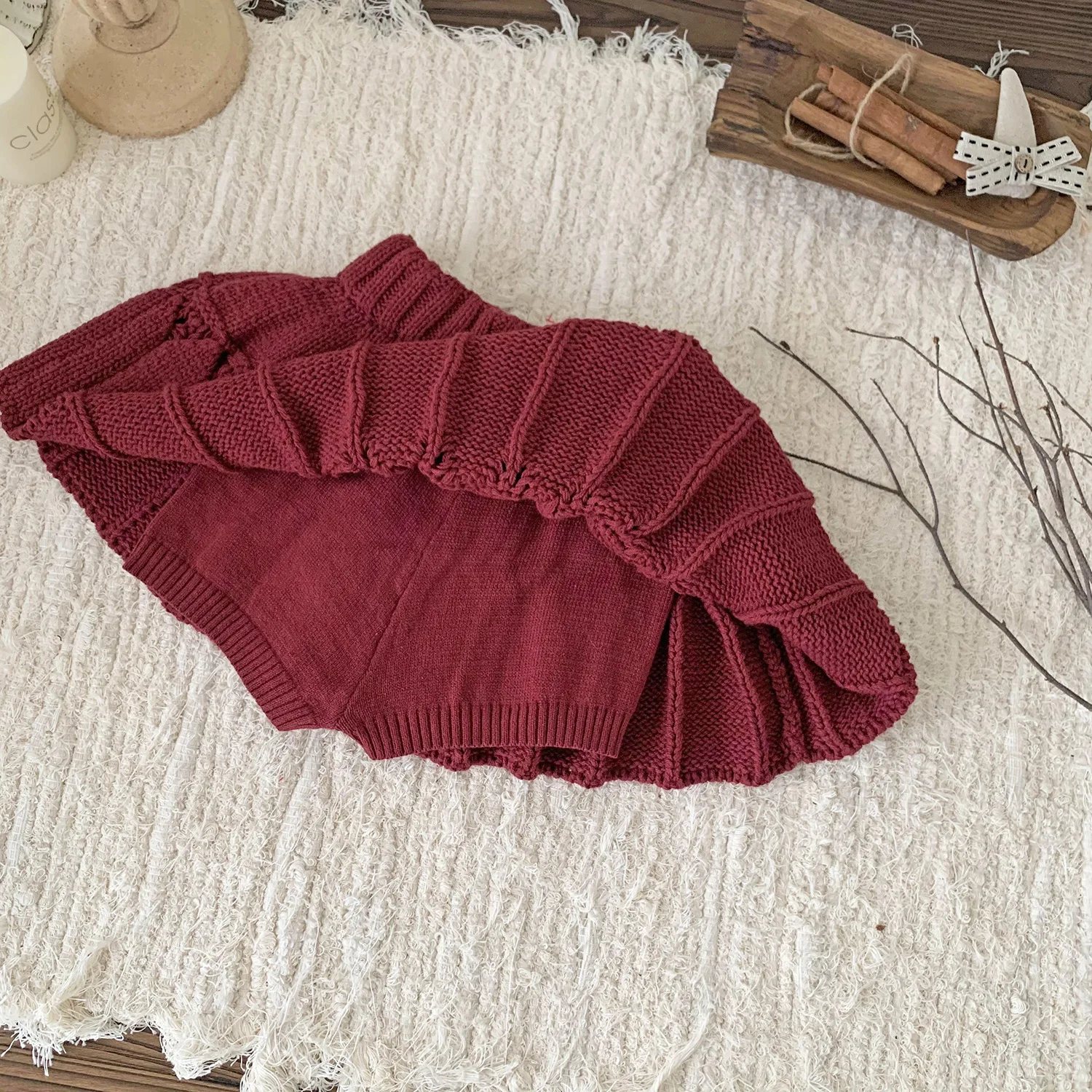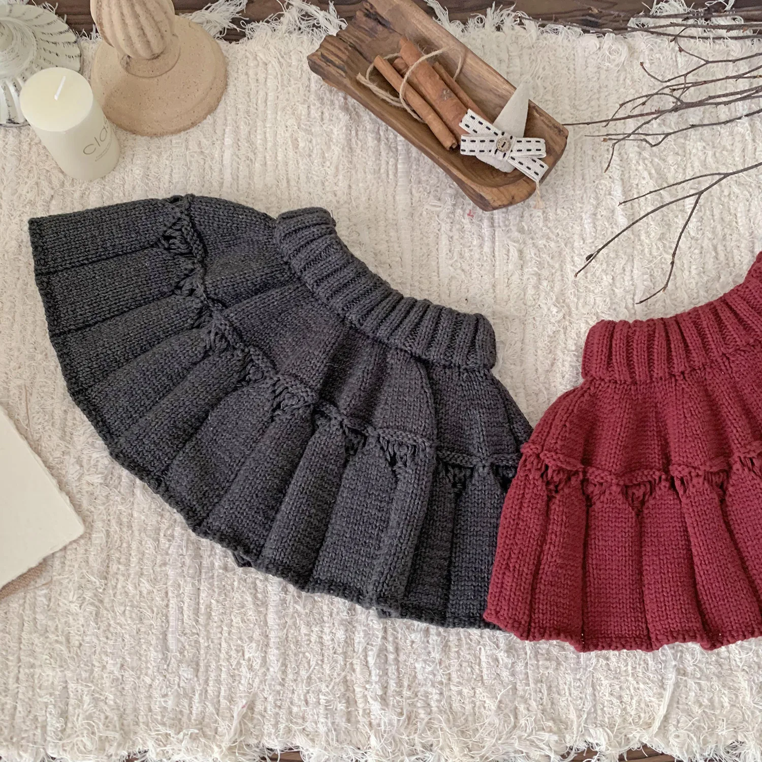 ニット素材で仕立てたプリーツデザインのミニスカートは、冬のコーディネートにぴったりなアイテムです。柔らかなニット生地が肌に優しく、寒い季節でも暖かさをしっかりと保ちます。プリーツのデザインが動きに合わせて広がり、可愛らしさを引き立てます。クリスマススタイルにもぴったりな、このスカートは、おしゃれでありながらもリラックス感があり、普段使いにもお出かけにも最適です。キッズやベビーにぴったりな温かさとデザインが魅力的な一枚です。