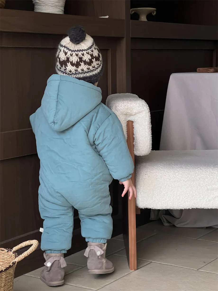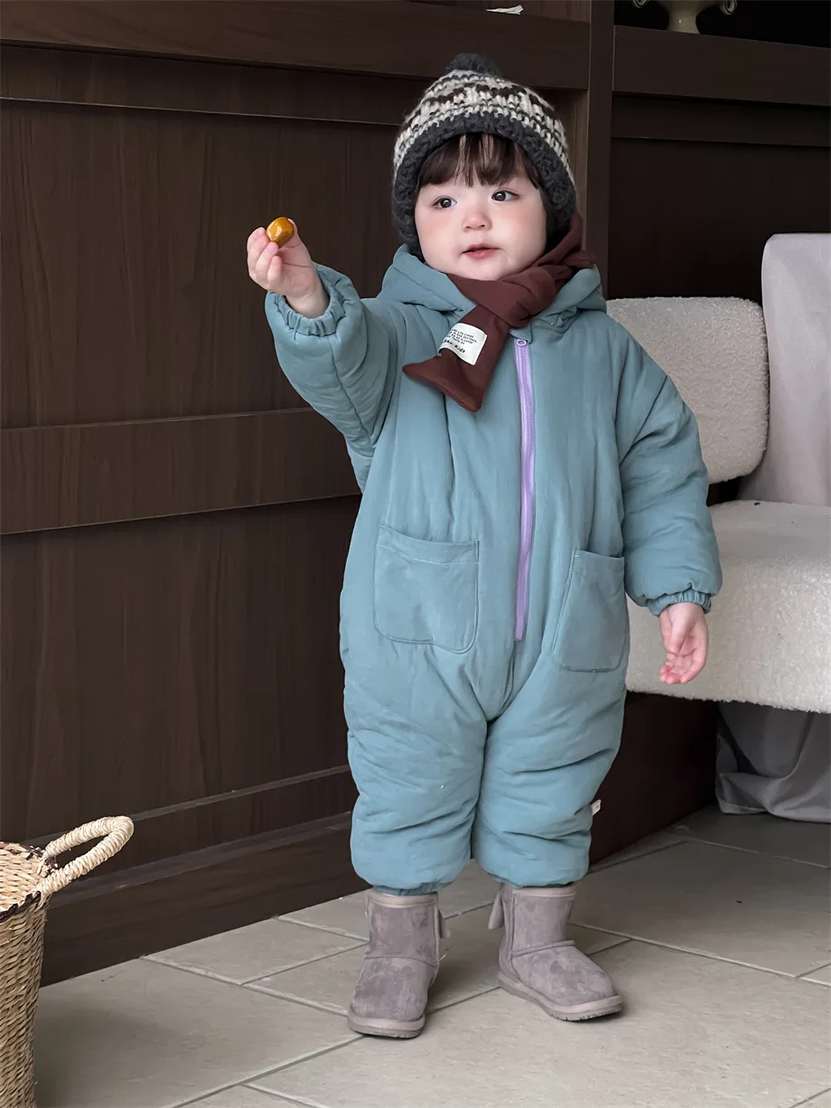 シンプルでスタイリッシュなキルティングフーディジップアップロンパースは、冬の寒い季節にぴったりのベビーアウタージャンプスーツです。フリース素材とプラスヴェルヴェットの厚手のパッドがしっかりと暖かさを保ち、赤ちゃんを寒さから守ります。フード付きのデザインは頭までしっかり包み込み、動きやすさも兼ね備えています。ジップアップ仕様で着脱も簡単、日常のお出かけやお昼寝にも大活躍の一枚です。