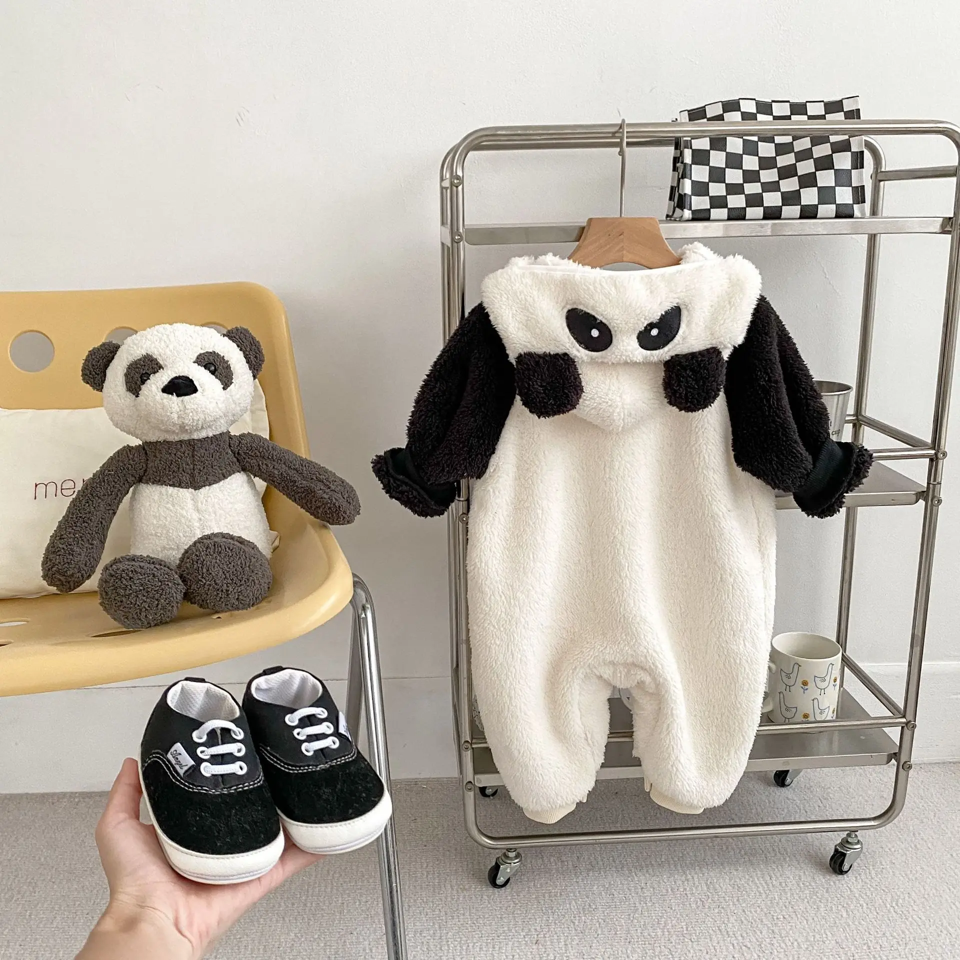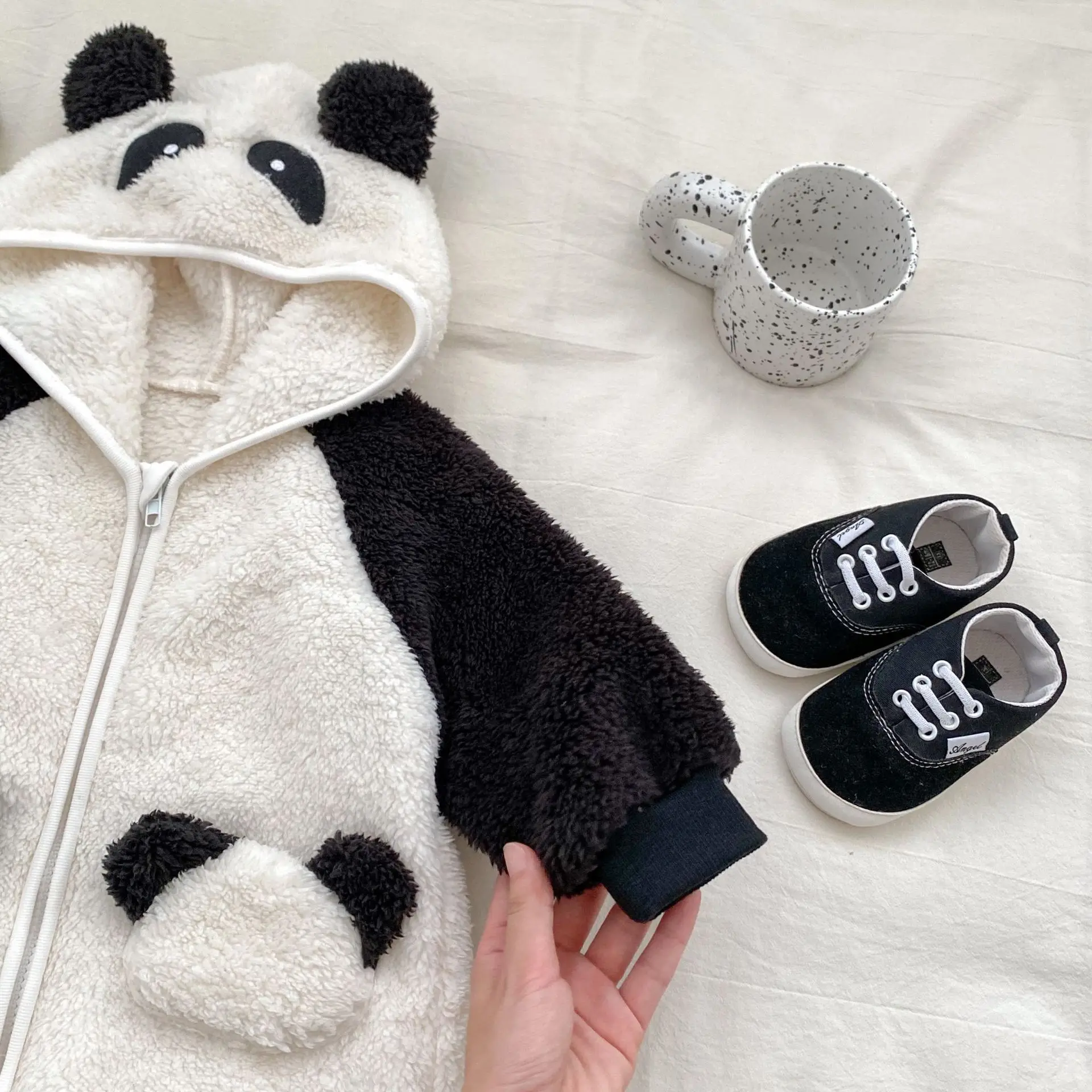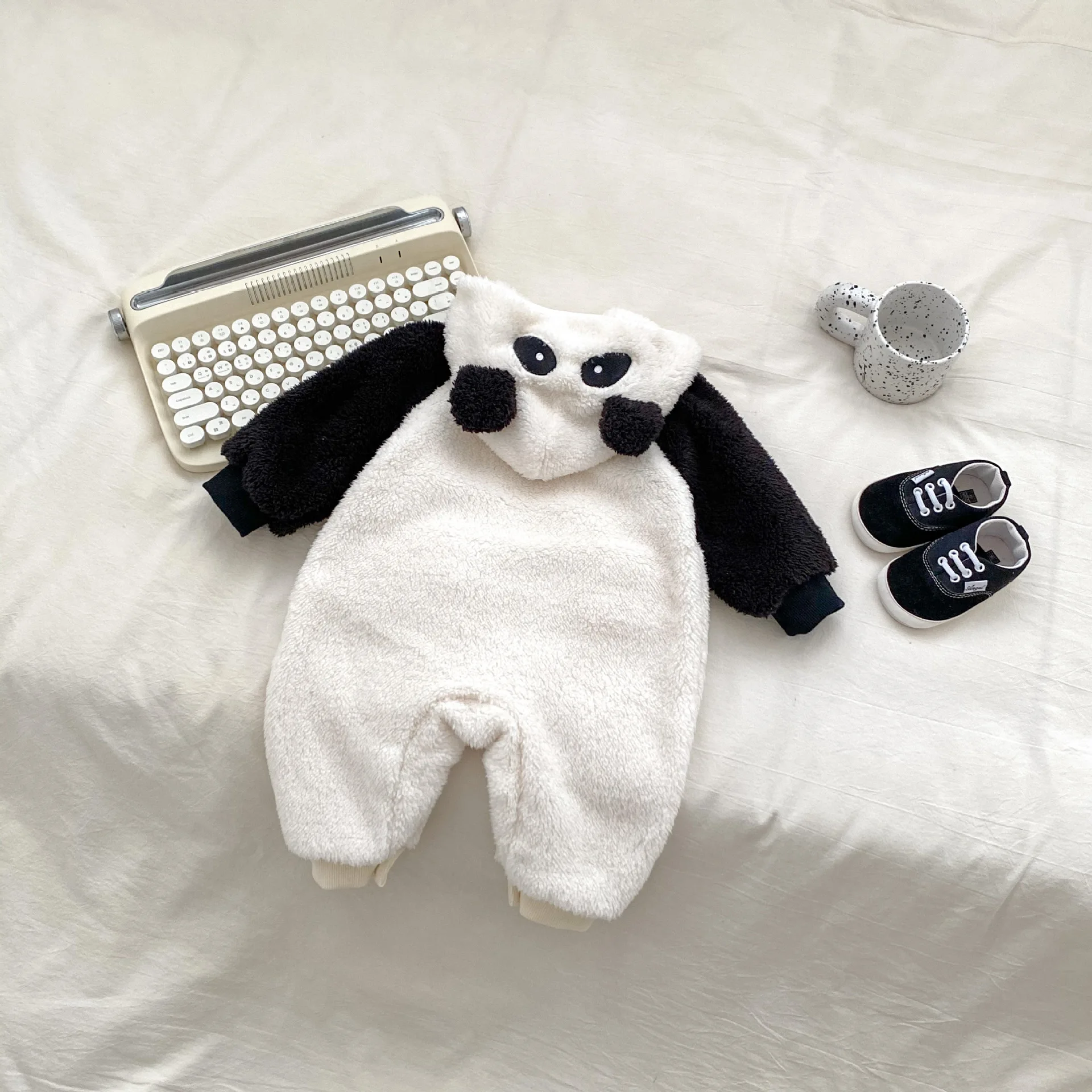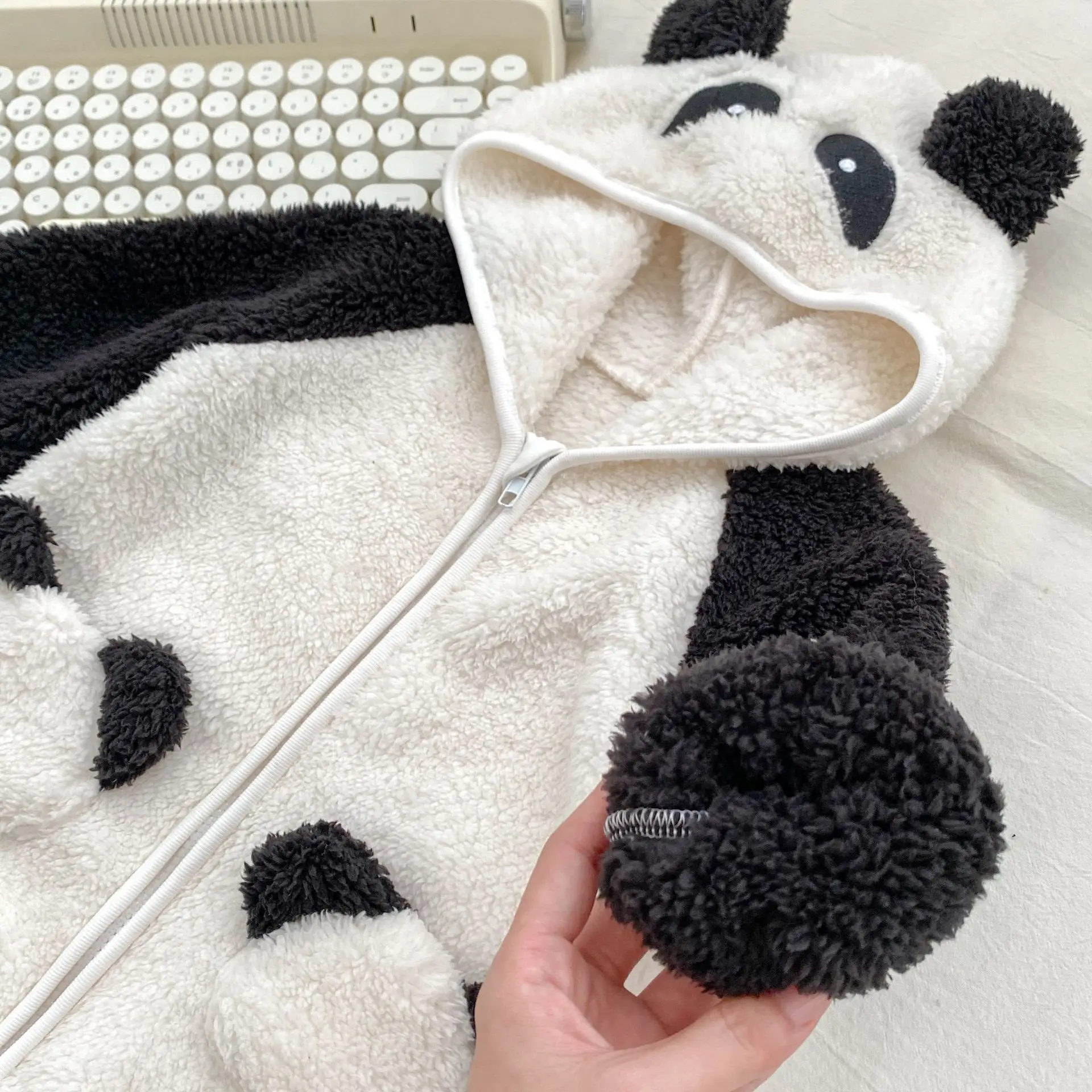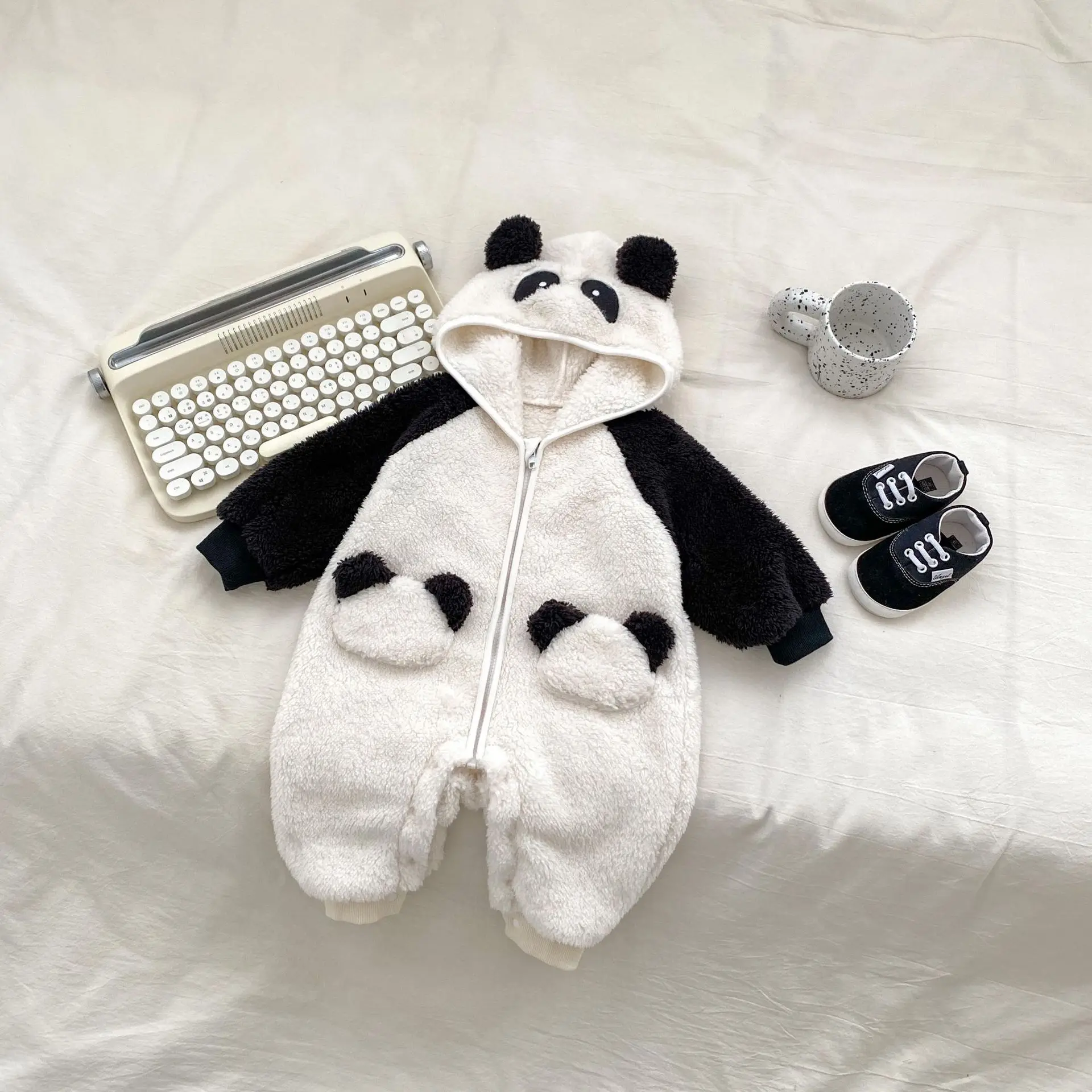 #ベビーファッション #パンダデザイン #フード付きロンパース #ジップアップ #長袖ジャンプスーツ #冬用アウター #赤ちゃん服