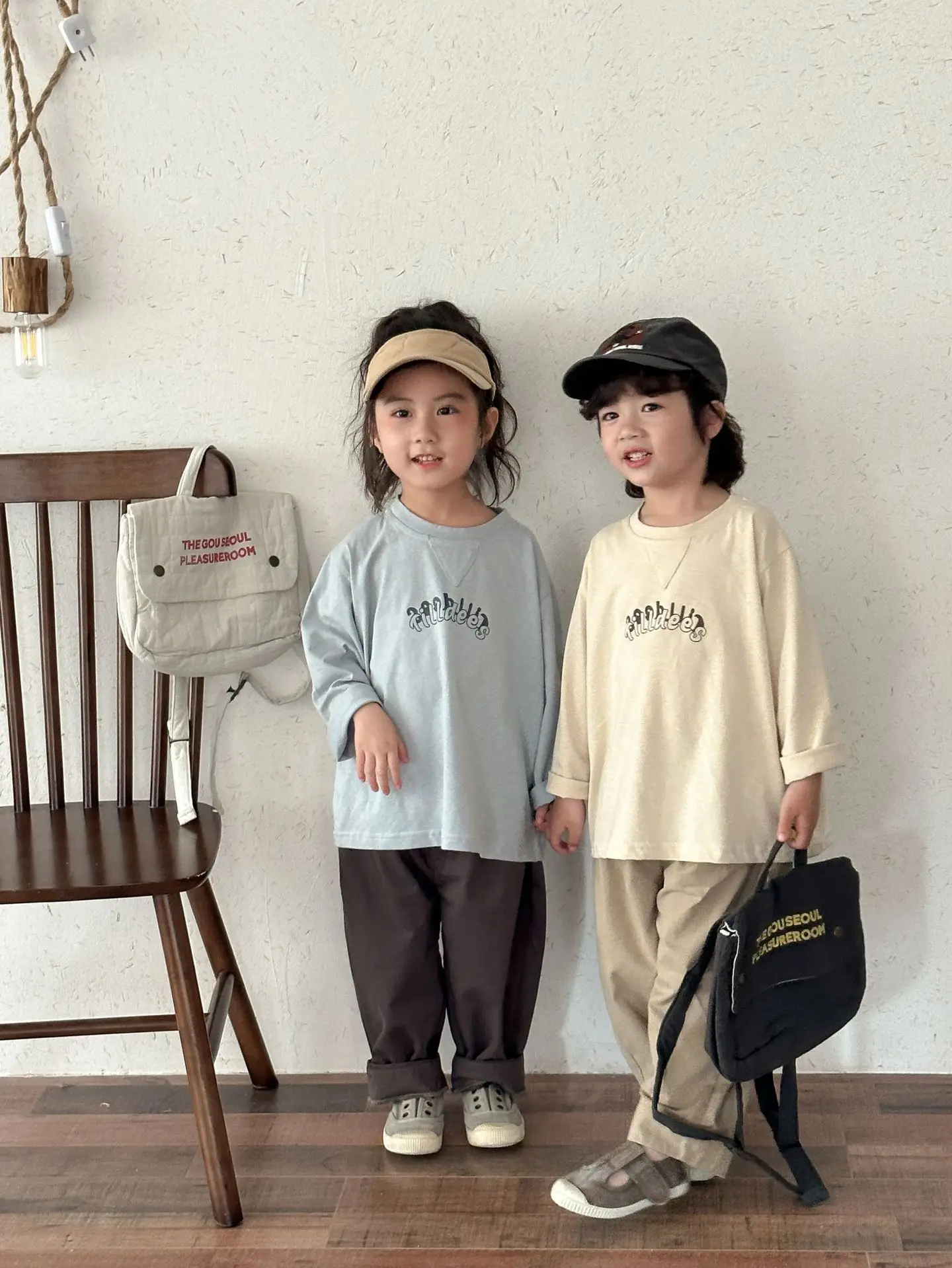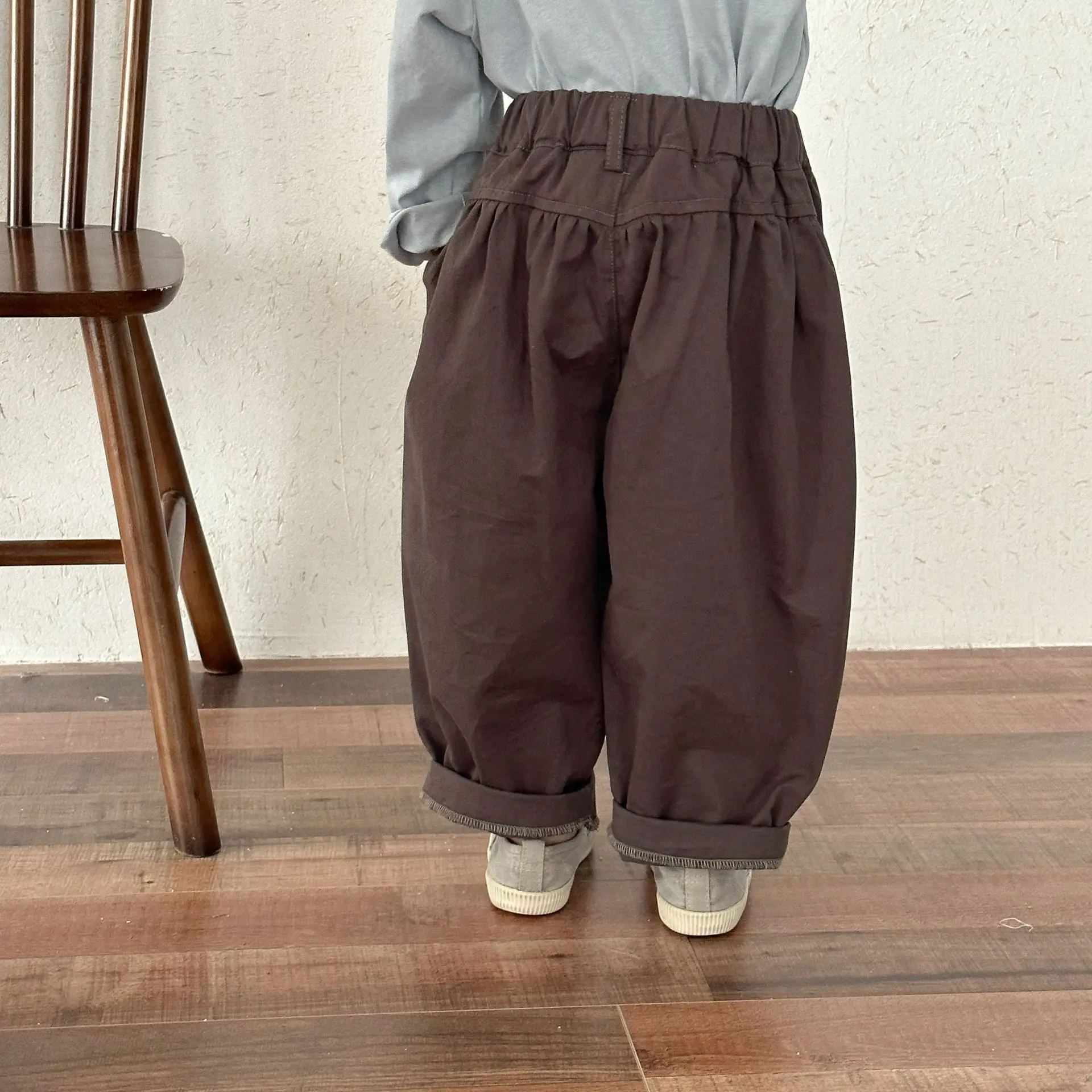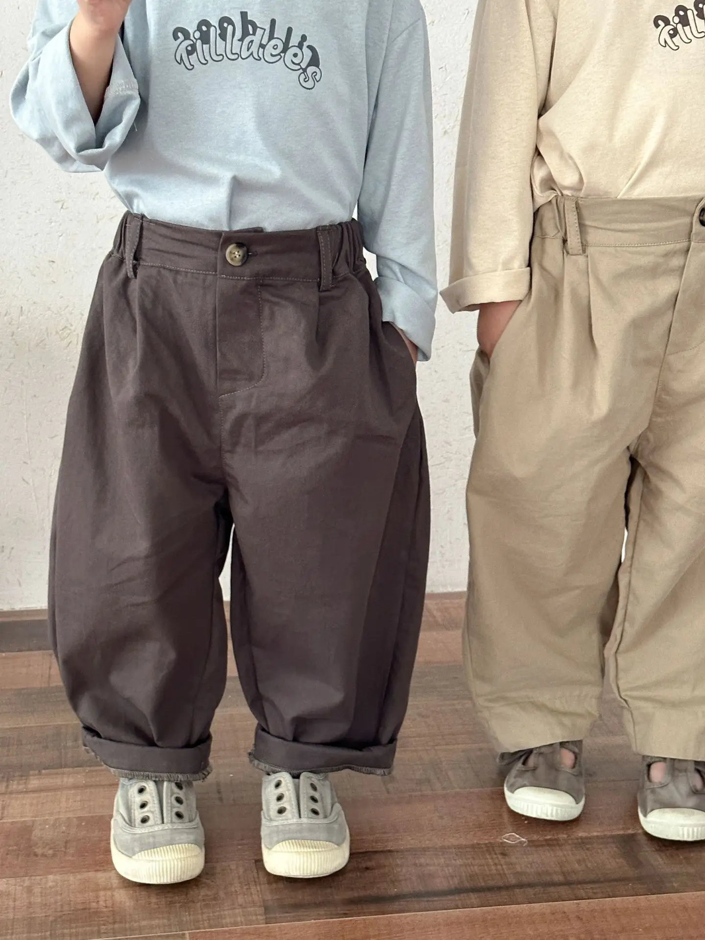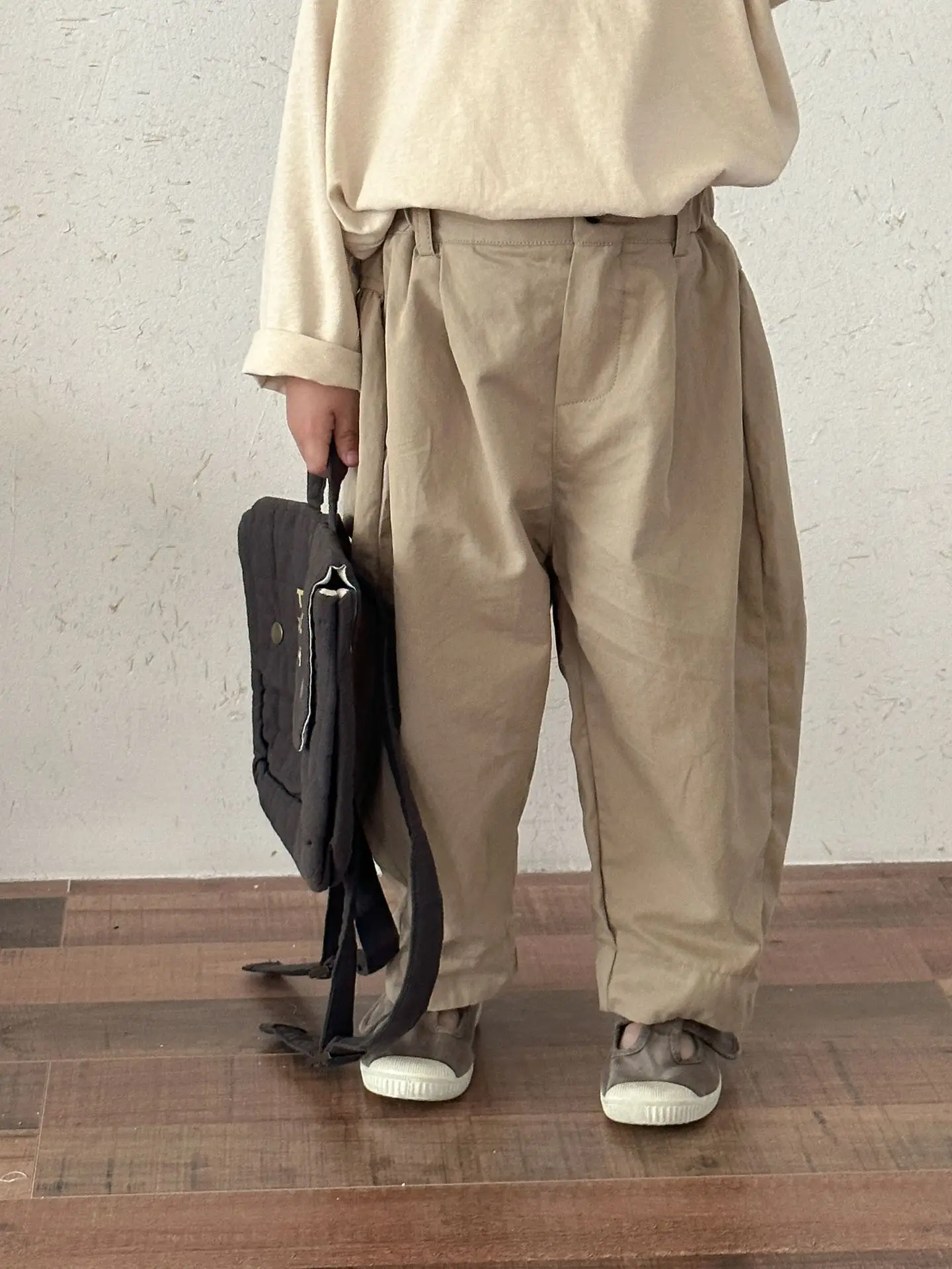 キッズパンツ シンプルベーシックルーズワイドロングバレルパンツ【mh0008779】