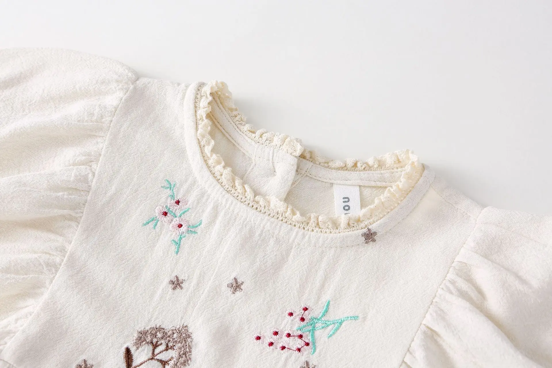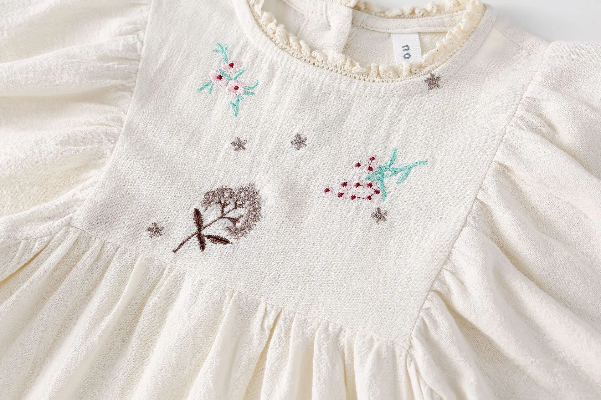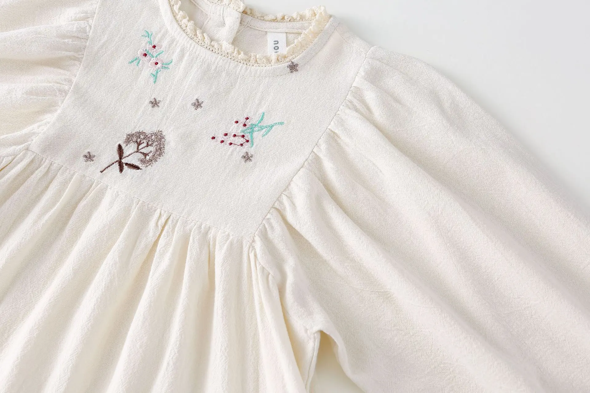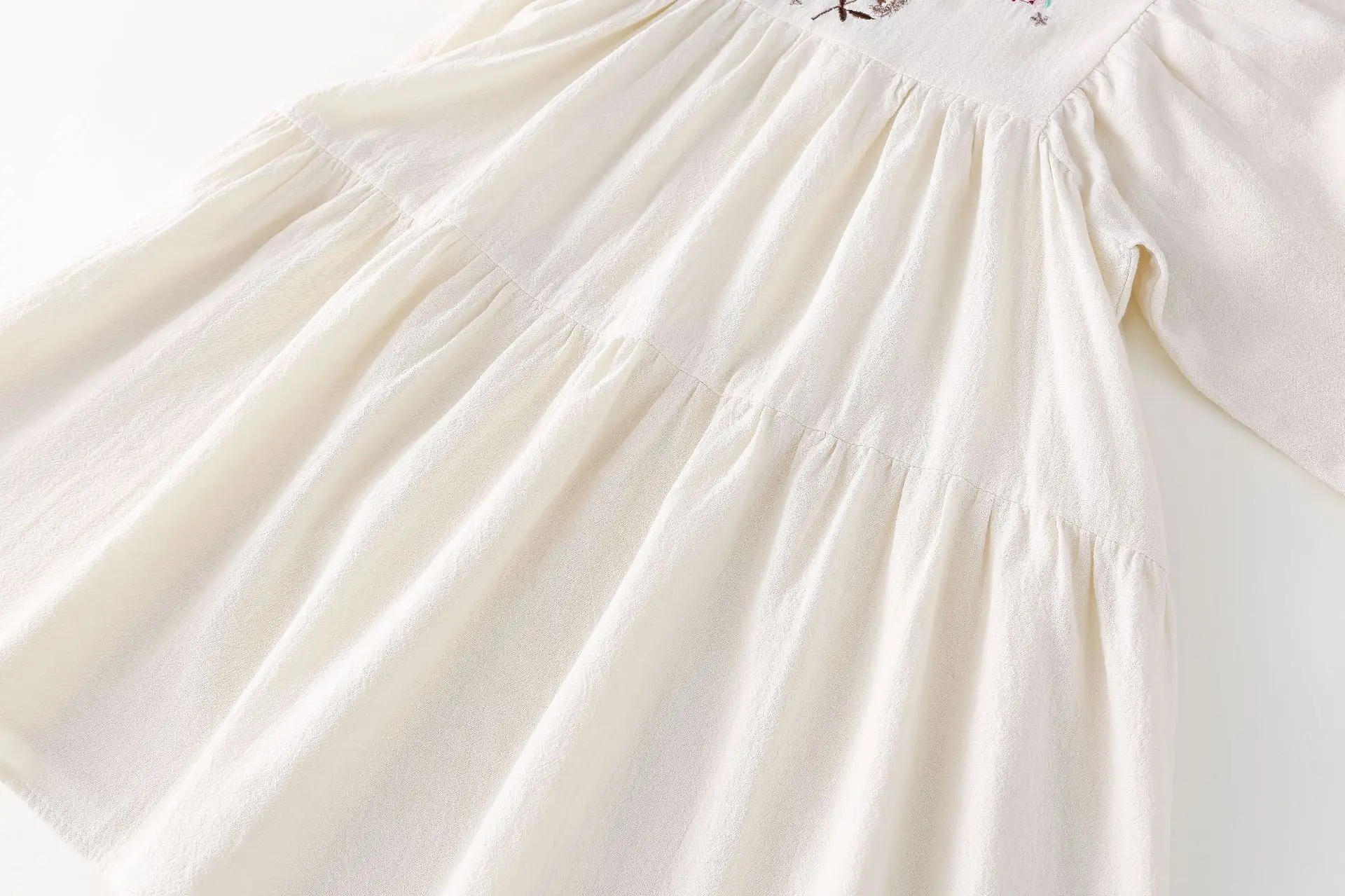 キッズワンピース 刺繍長袖パフスリーブワンピース【mh0008794】