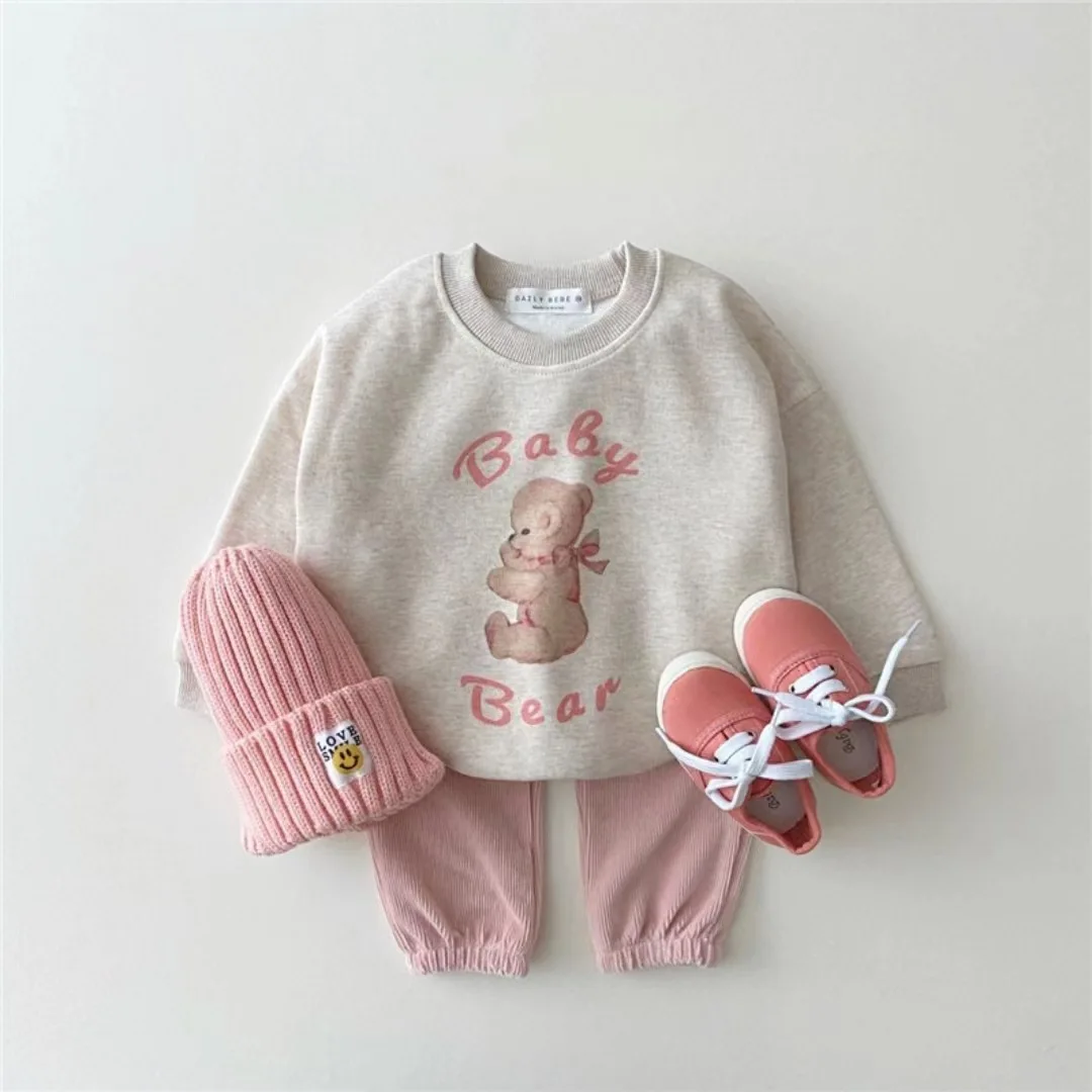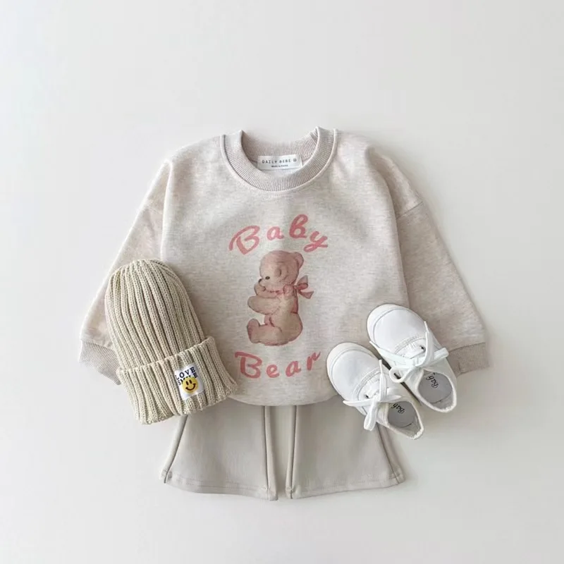 ベビーキッズトップス ベビーベアプリント長袖スウェットシャツ【mh0008817】