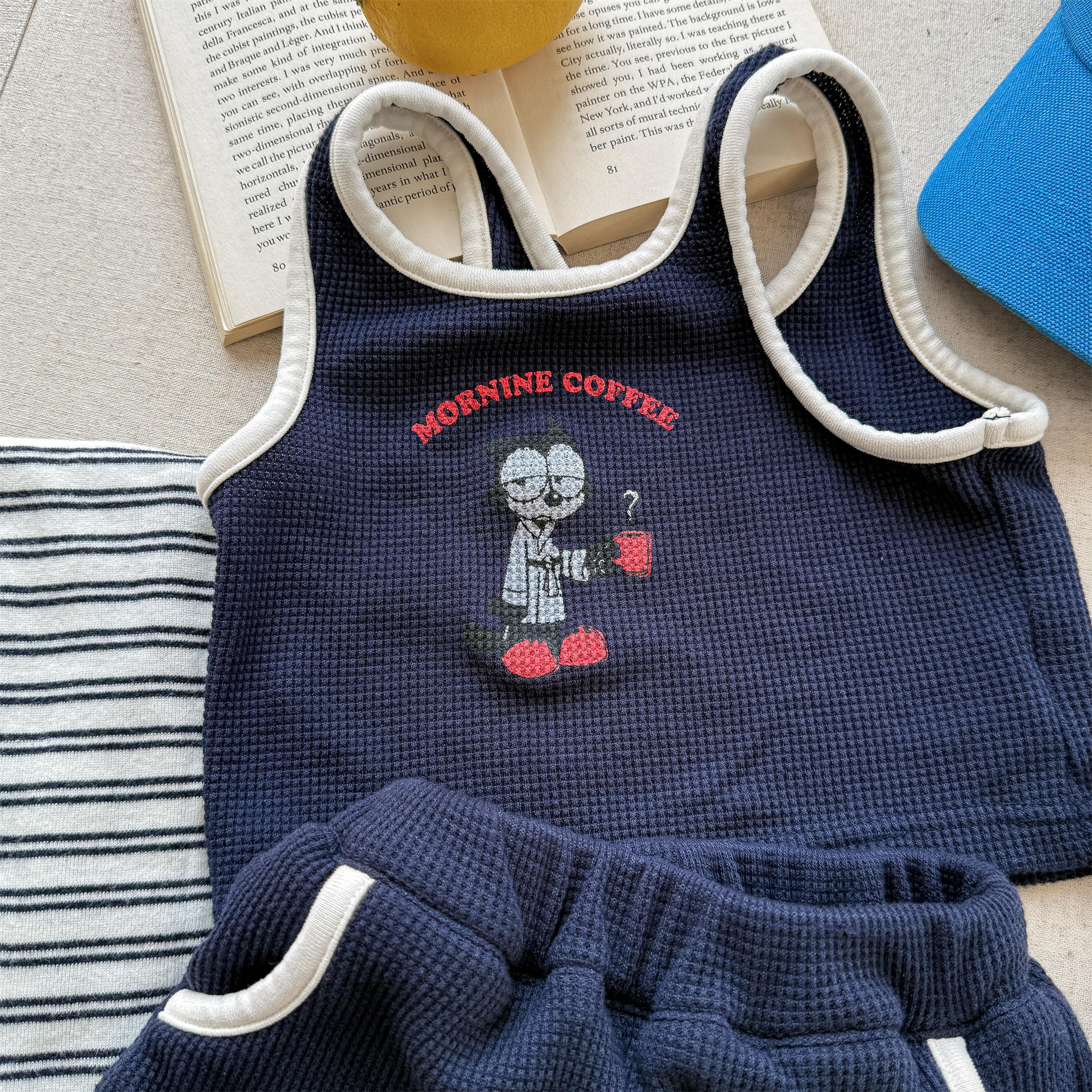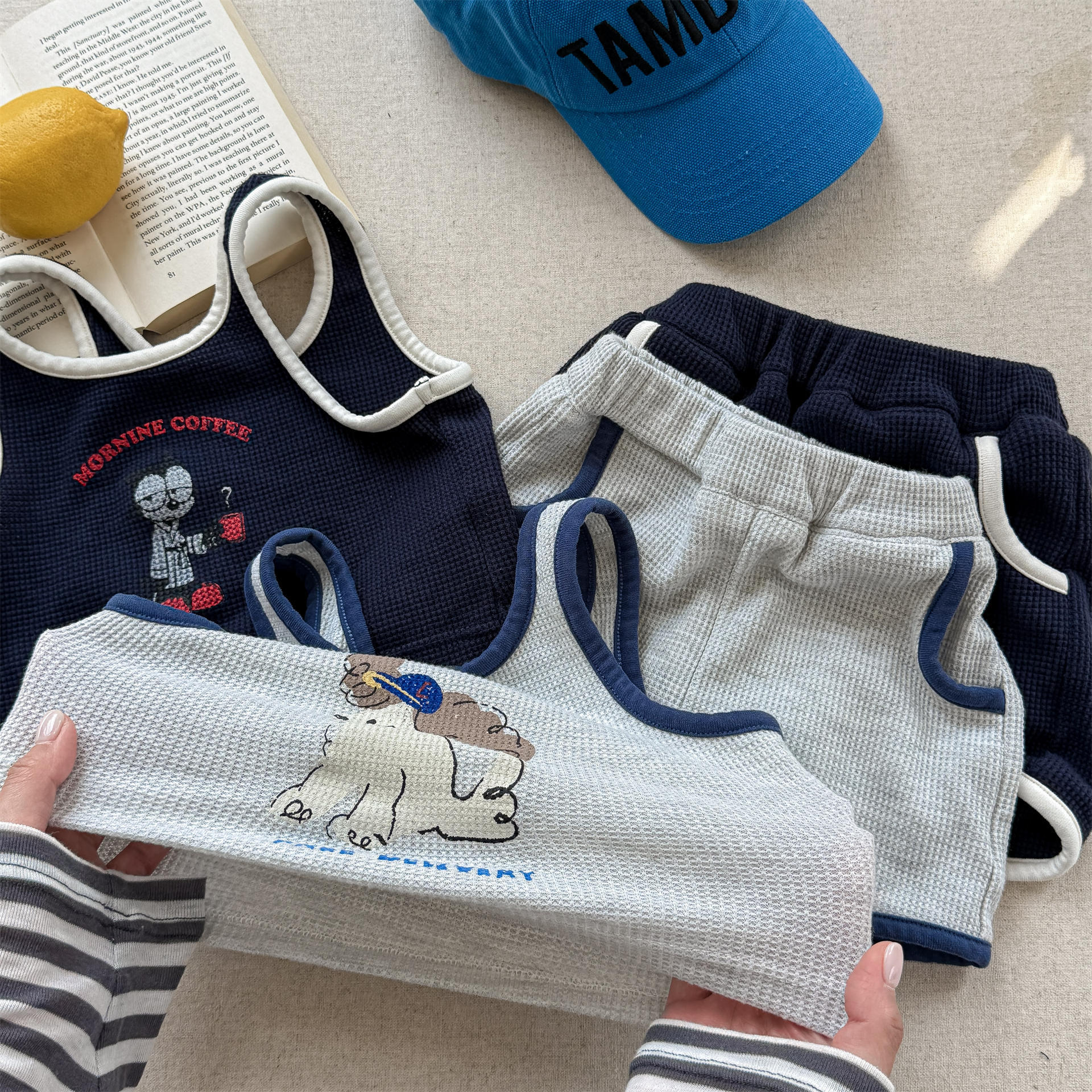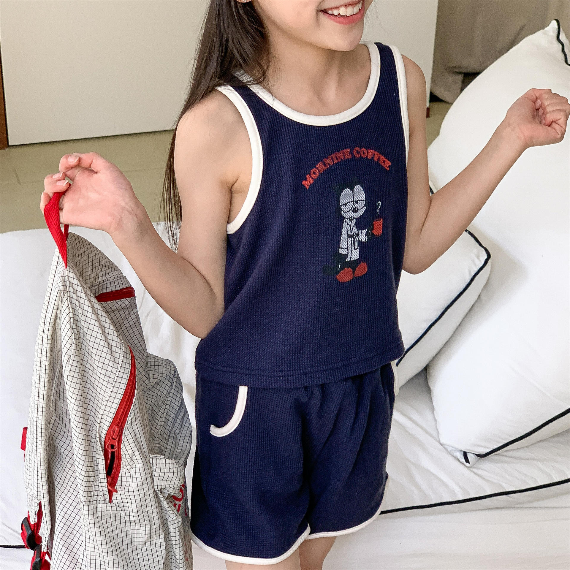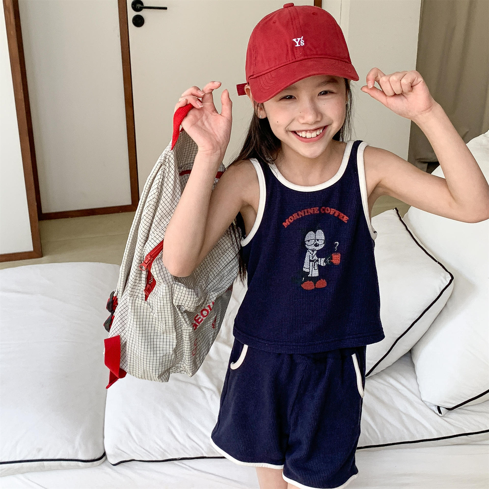 #キッズセットアップ #子供服 #タンクトップ #ショートパンツ #プリントロゴ #夏物子供服 #ユニセックス #カジュアルスタイル #2点セット
