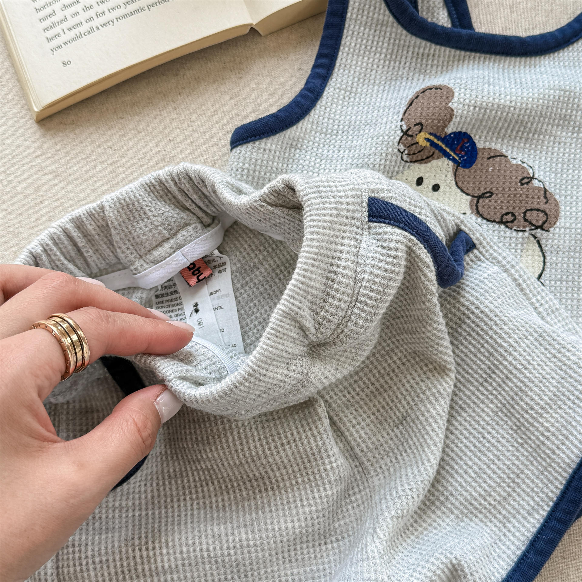 夏の装いにぴったりの、プリントロゴとパイピングがアクセントになったキッズ用タンクトップとショートパンツの2点セットです。男の子にも女の子にも似合うユニセックスデザインで、普段使いからアクティブシーンまで幅広く活躍します。涼しげな素材を使用しており、暑い季節も快適に過ごせます。それぞれ単品でも着回しがきくので、コーディネートの幅が広がります。このセット一つで、おしゃれな夏のお出かけスタイルが完成します。