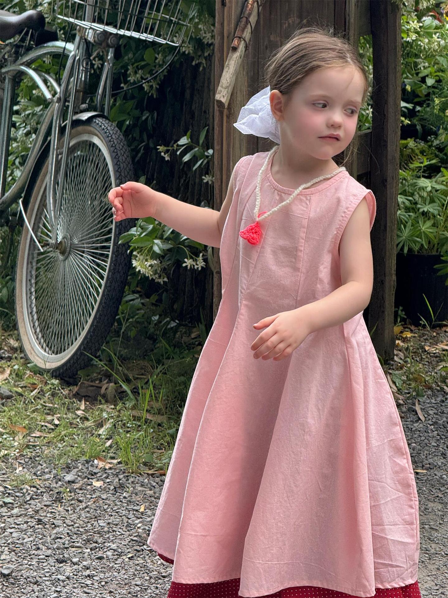 #キッズワンピース #子供服 #ノースリーブワンピース #タックスカート #ロングワンピース #ピンクワンピース #女の子服