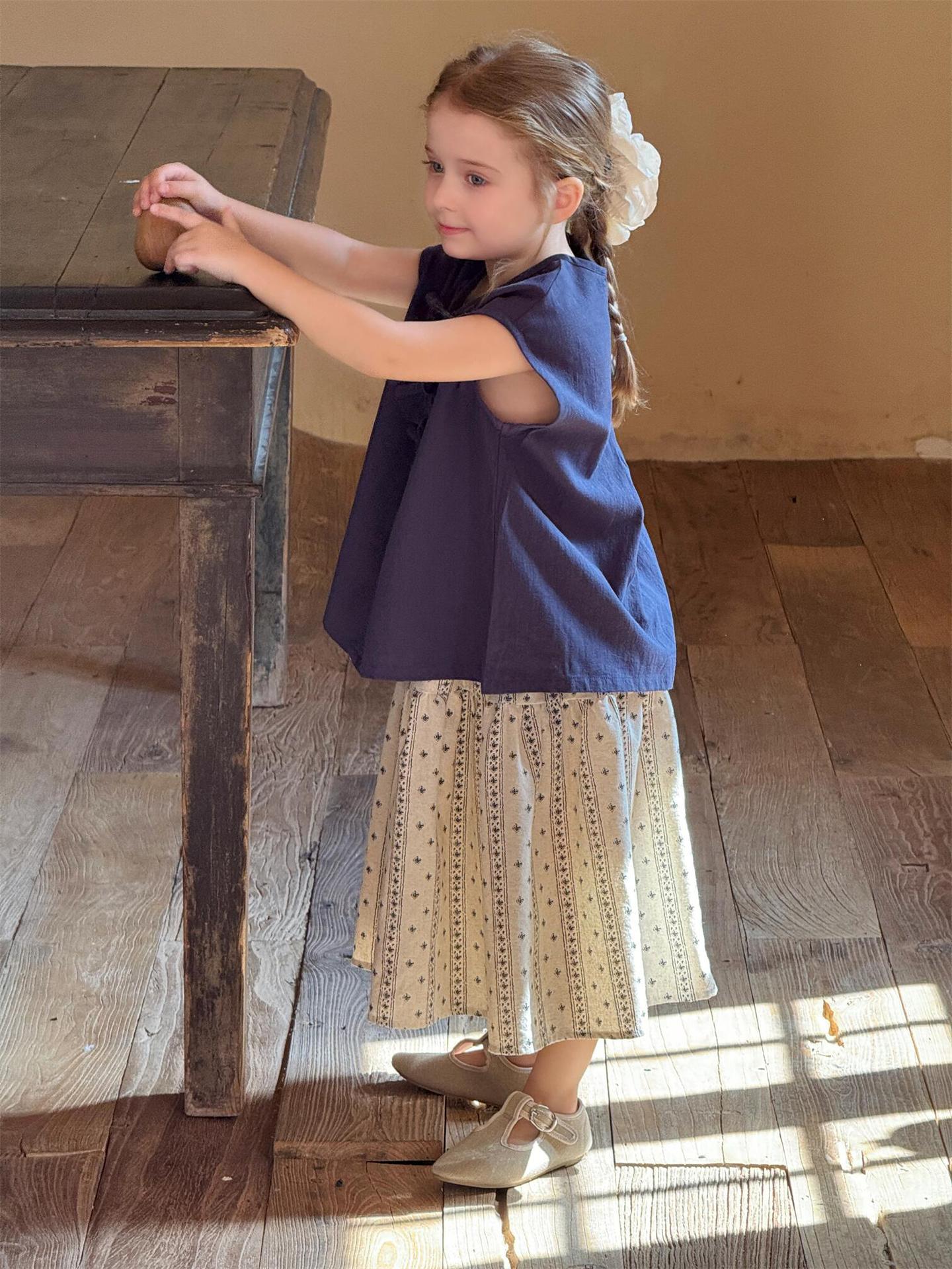 ナチュラルな風合いのコットン素材は、肌触りが良く通気性も抜群なので、暑い夏でもお子さんが快適に過ごせます。爽やかなストライプ柄は、プロヴァンス地方を思わせるような、明るく優しい色合いが特徴。ふんわりとしたシルエットが女の子らしさを一層引き立て、普段使いはもちろん、お出かけ着としても大活躍するでしょう。シンプルなTシャツと合わせるだけで、可愛らしいサマースタイルが完成します。
