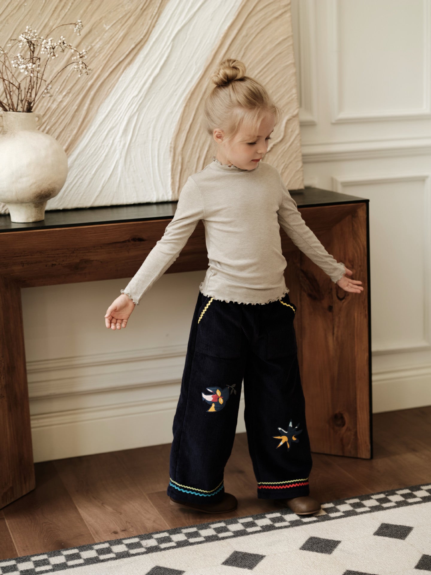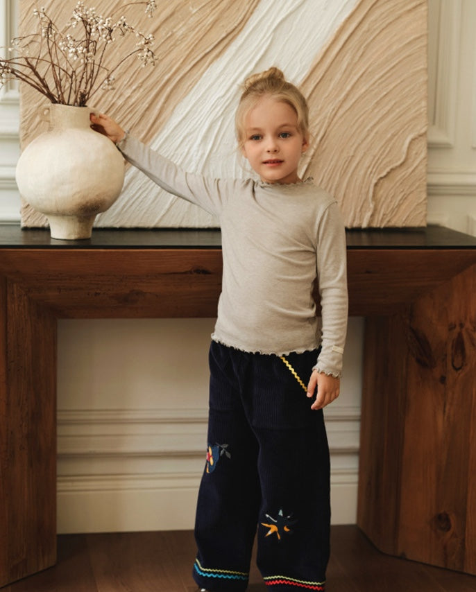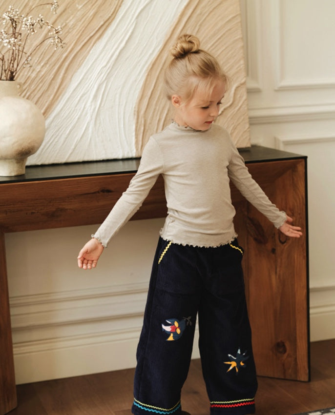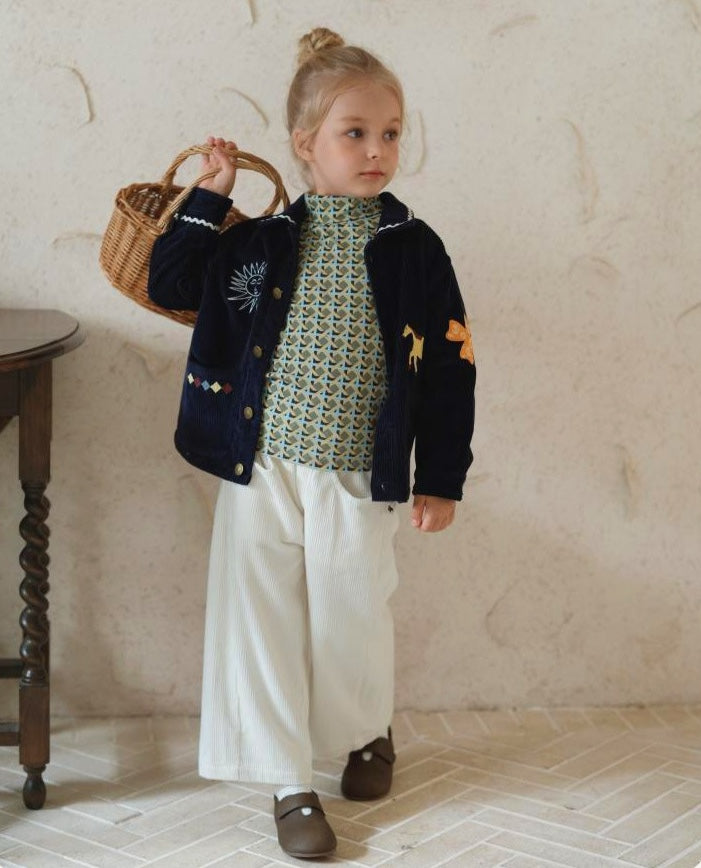 コーデュロイ キッズ ジャケット/パンツ 刺繍 カジュアル ワイドシルエット【mh0011573】