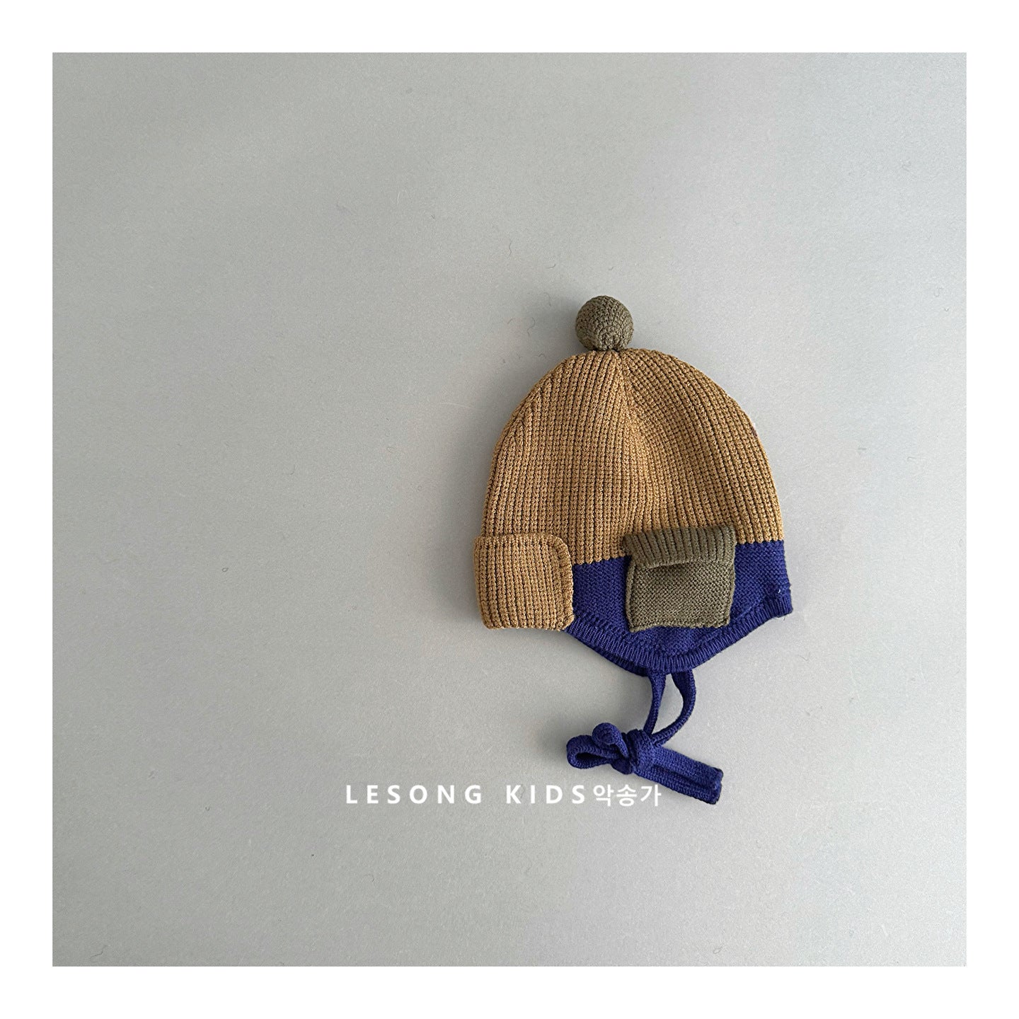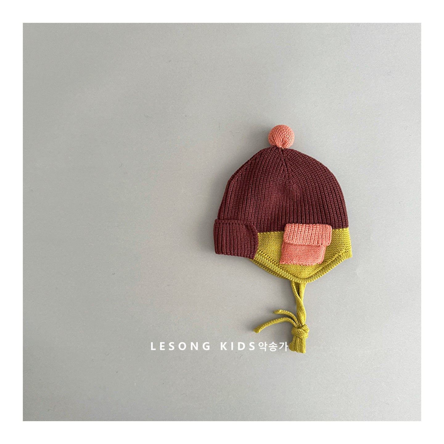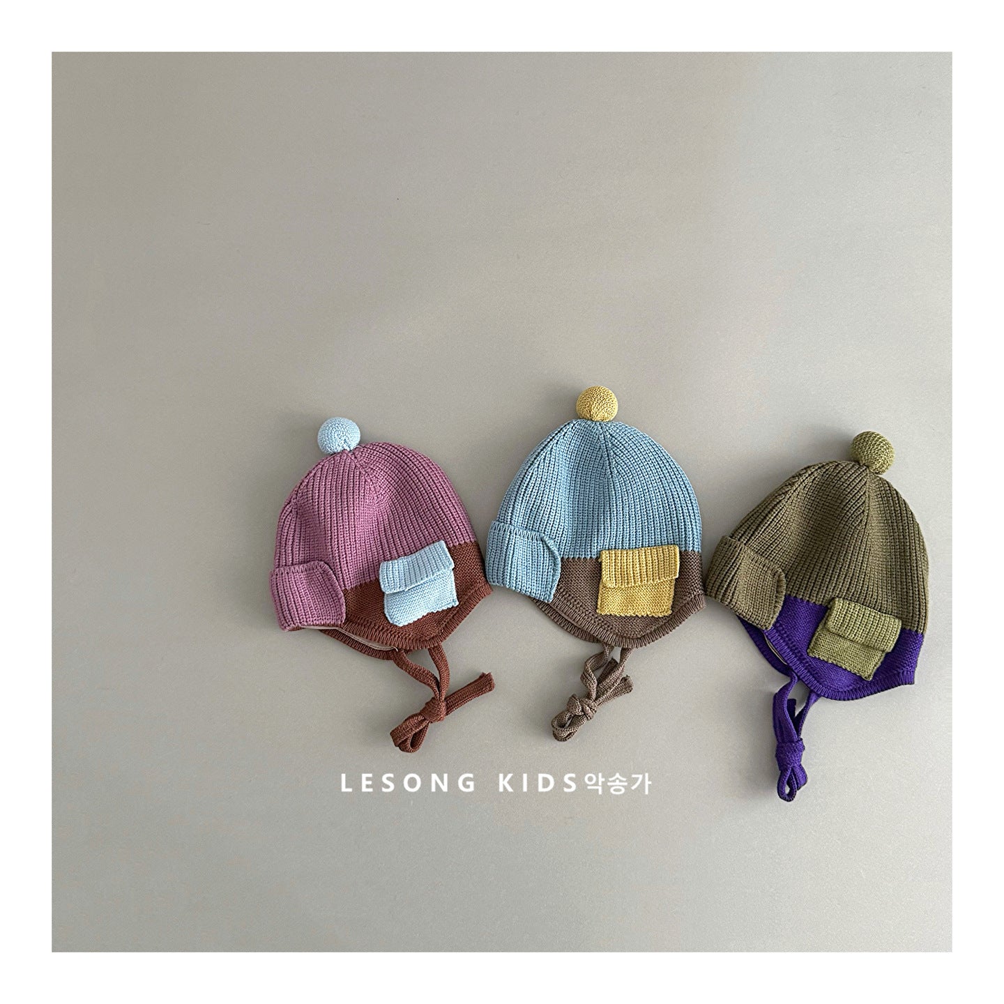 キッズ ニット帽 パッチワーク カラーブロック ポケット付き 耳当て 防寒【mh0011602】