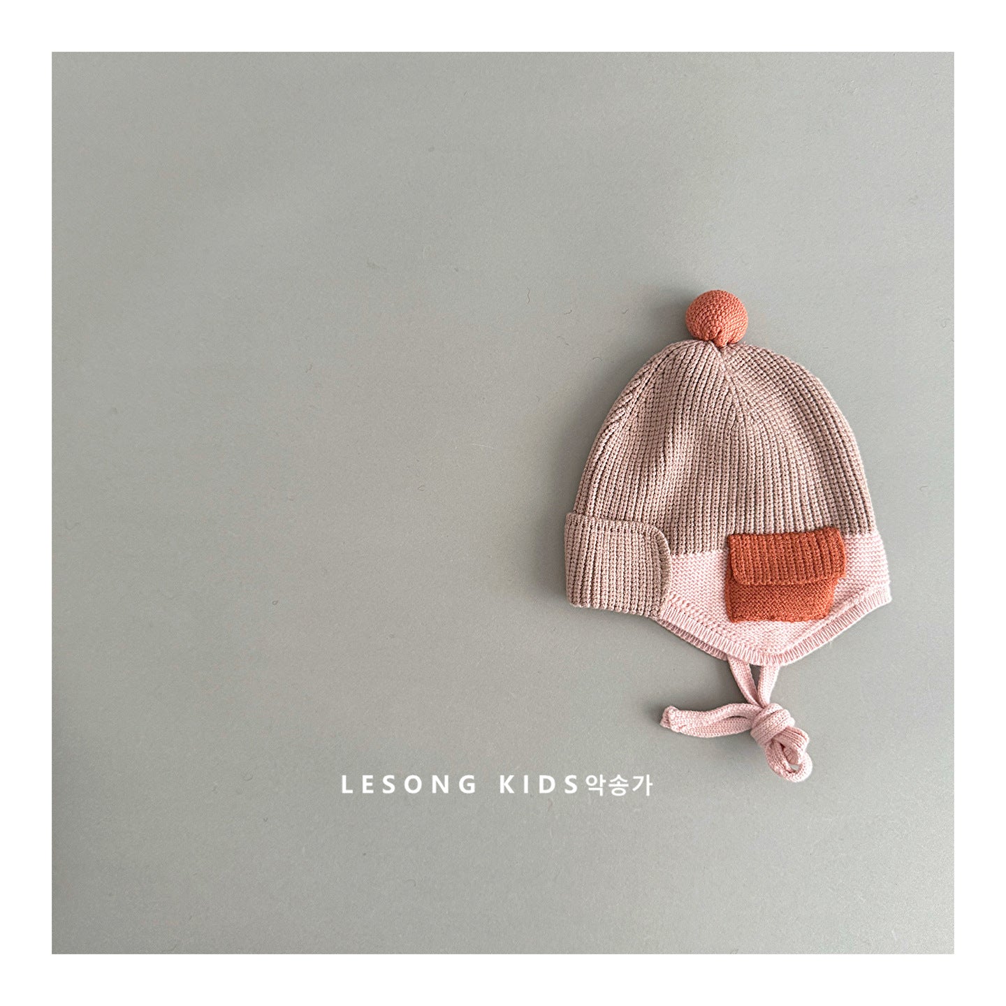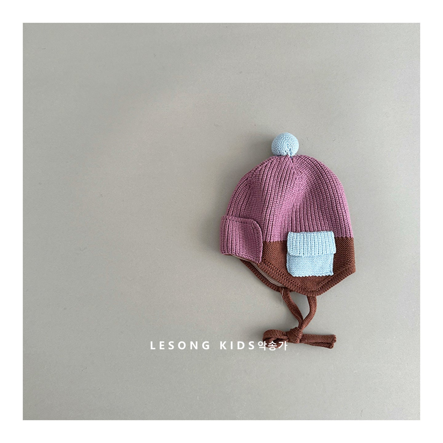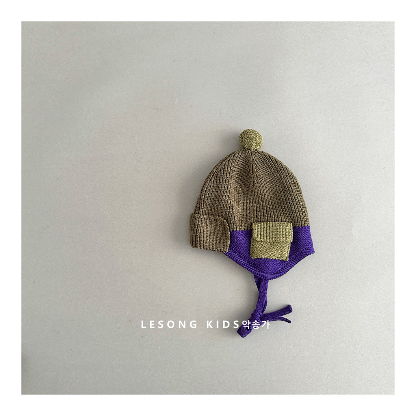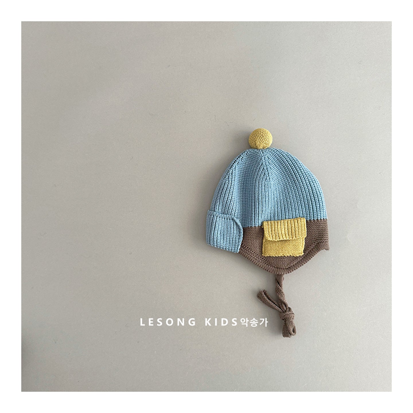 キッズ ニット帽 パッチワーク カラーブロック ポケット付き 耳当て 防寒【mh0011602】