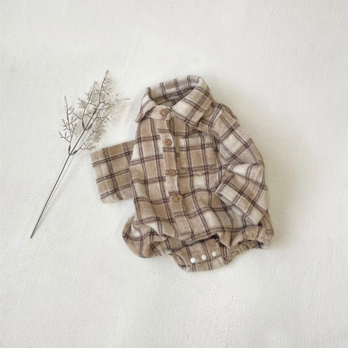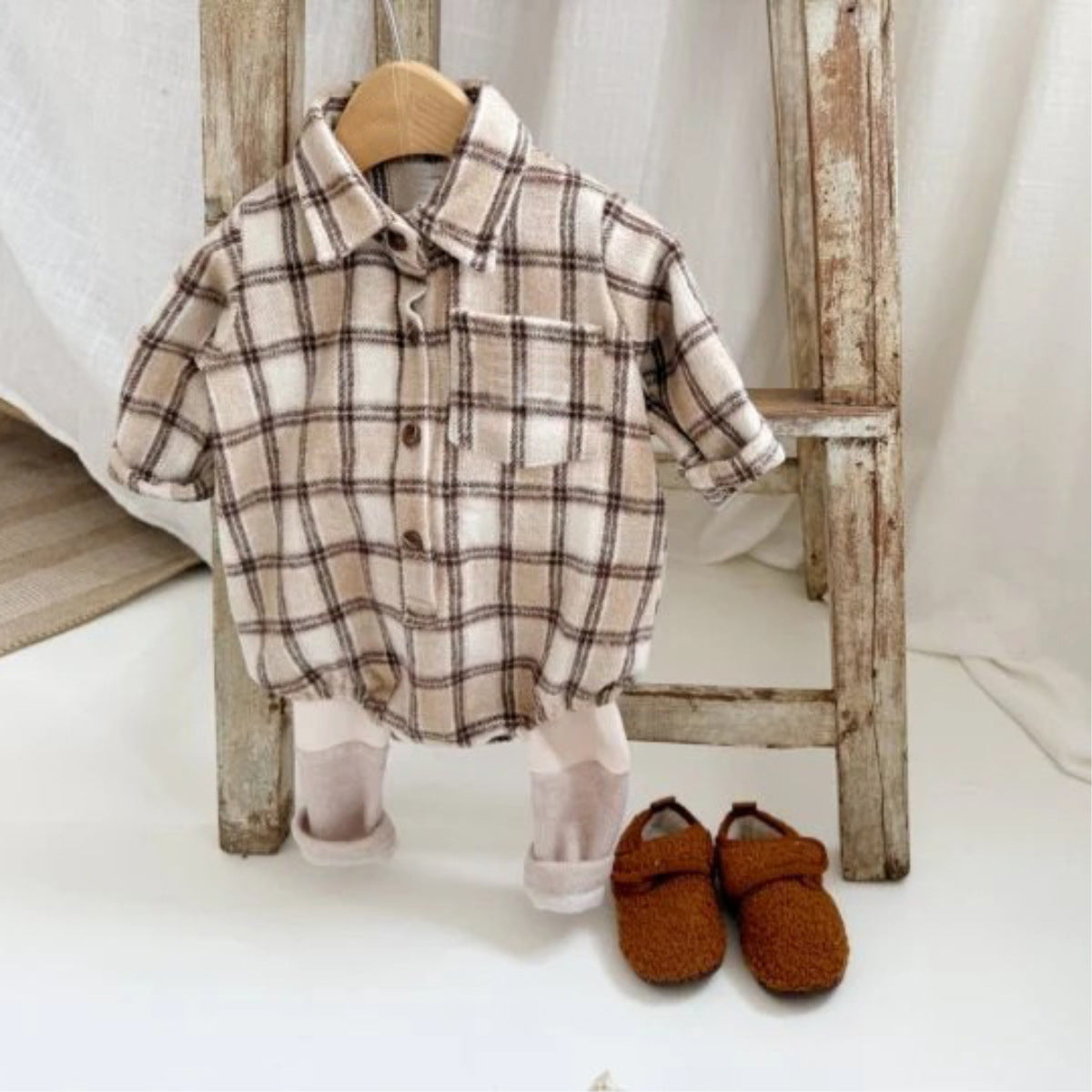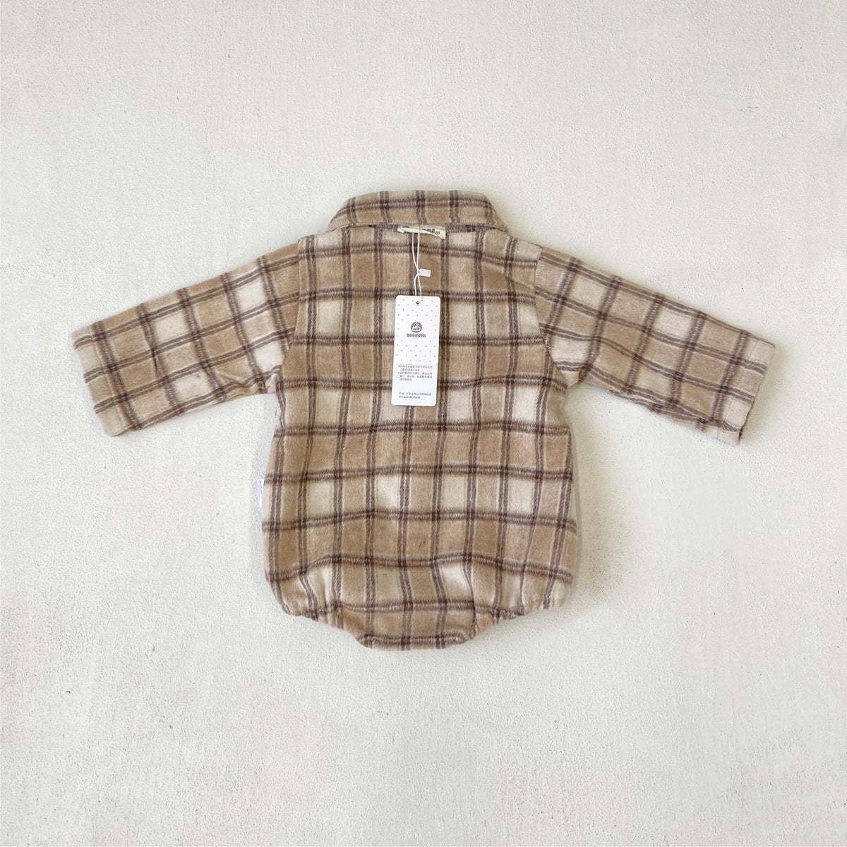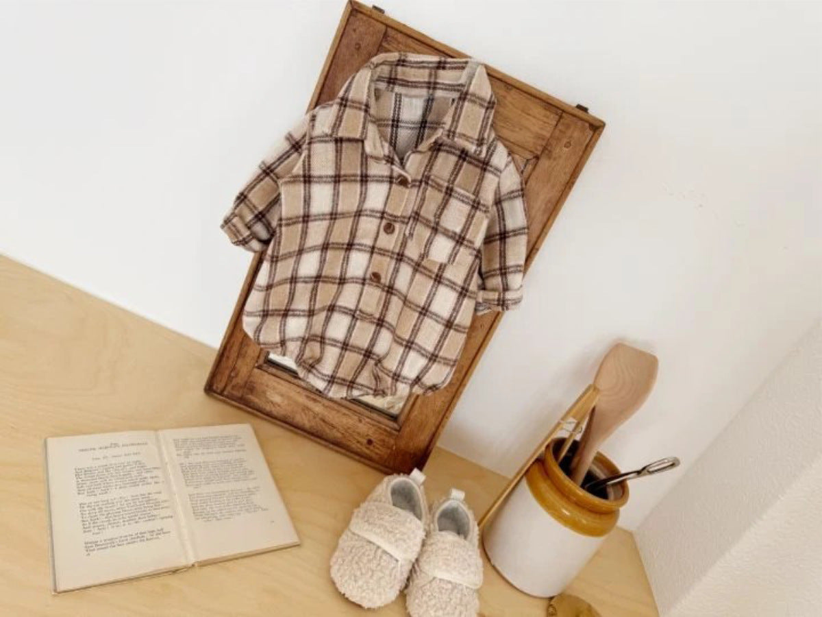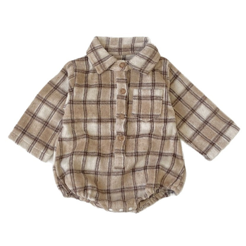 長袖ロンパース チェック シャツ襟 ボディスーツ【mh0011633】