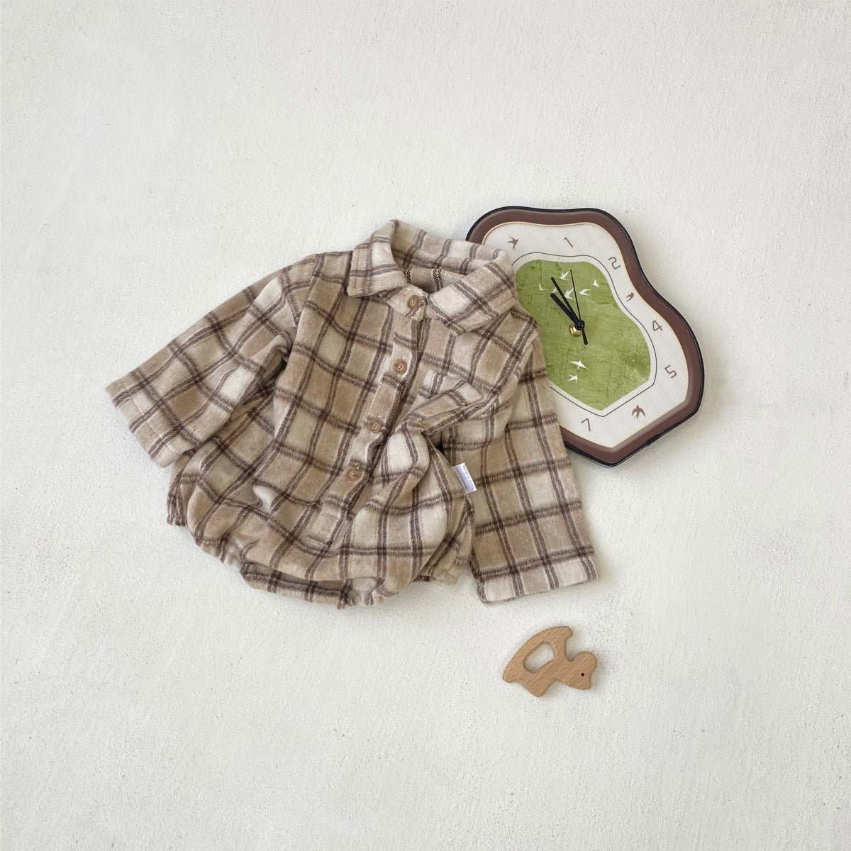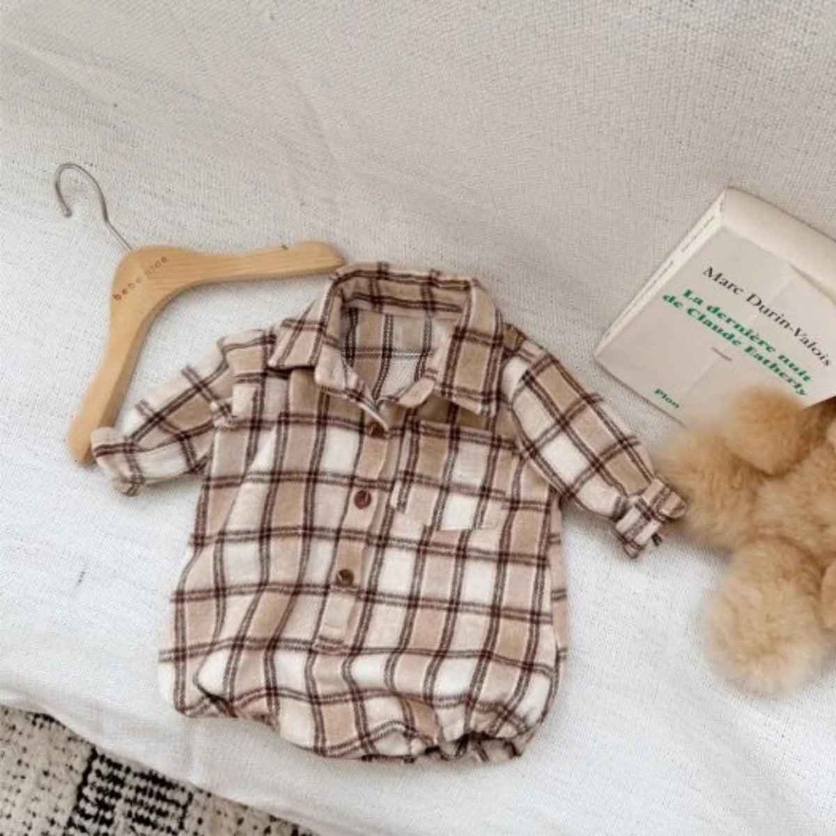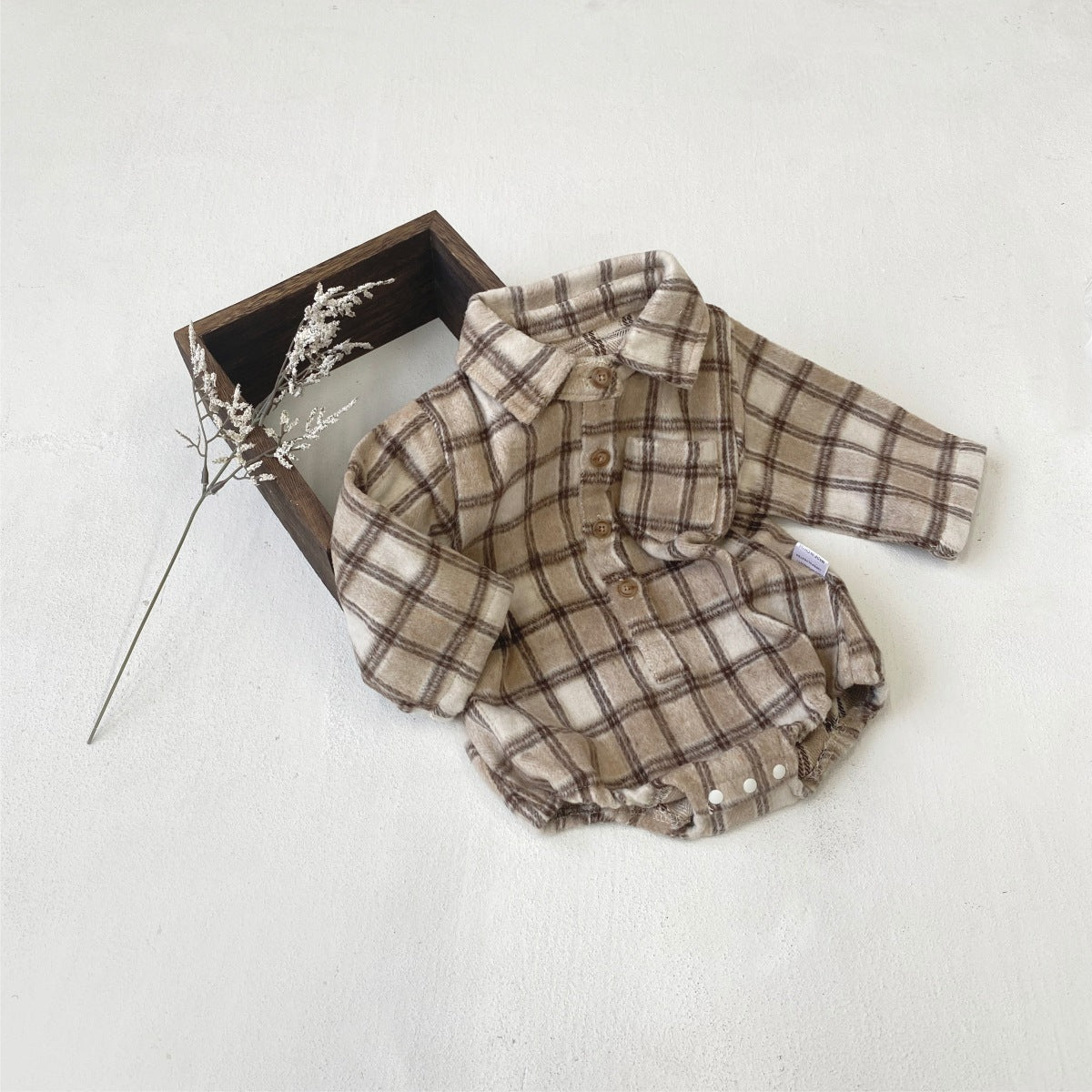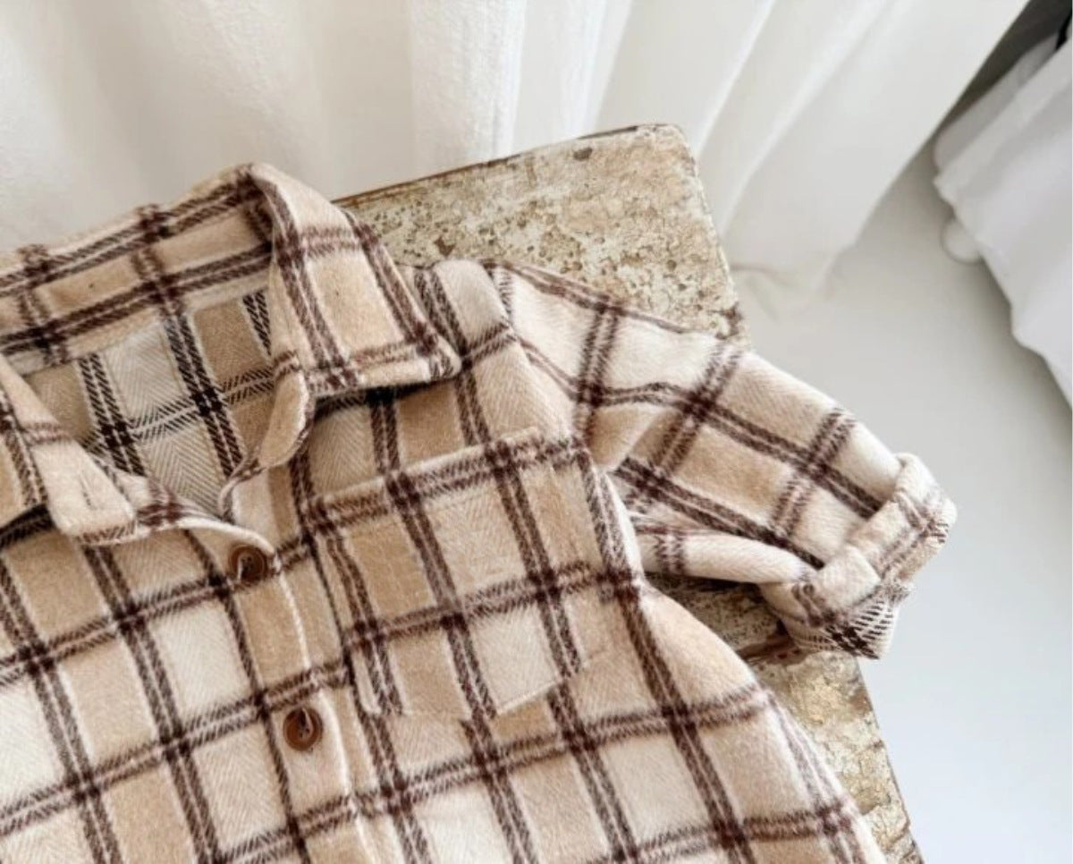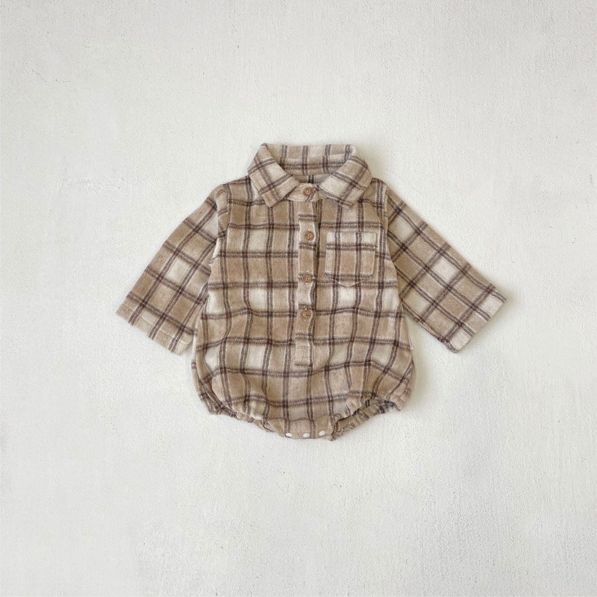長袖ロンパース チェック シャツ襟 ボディスーツ【mh0011633】